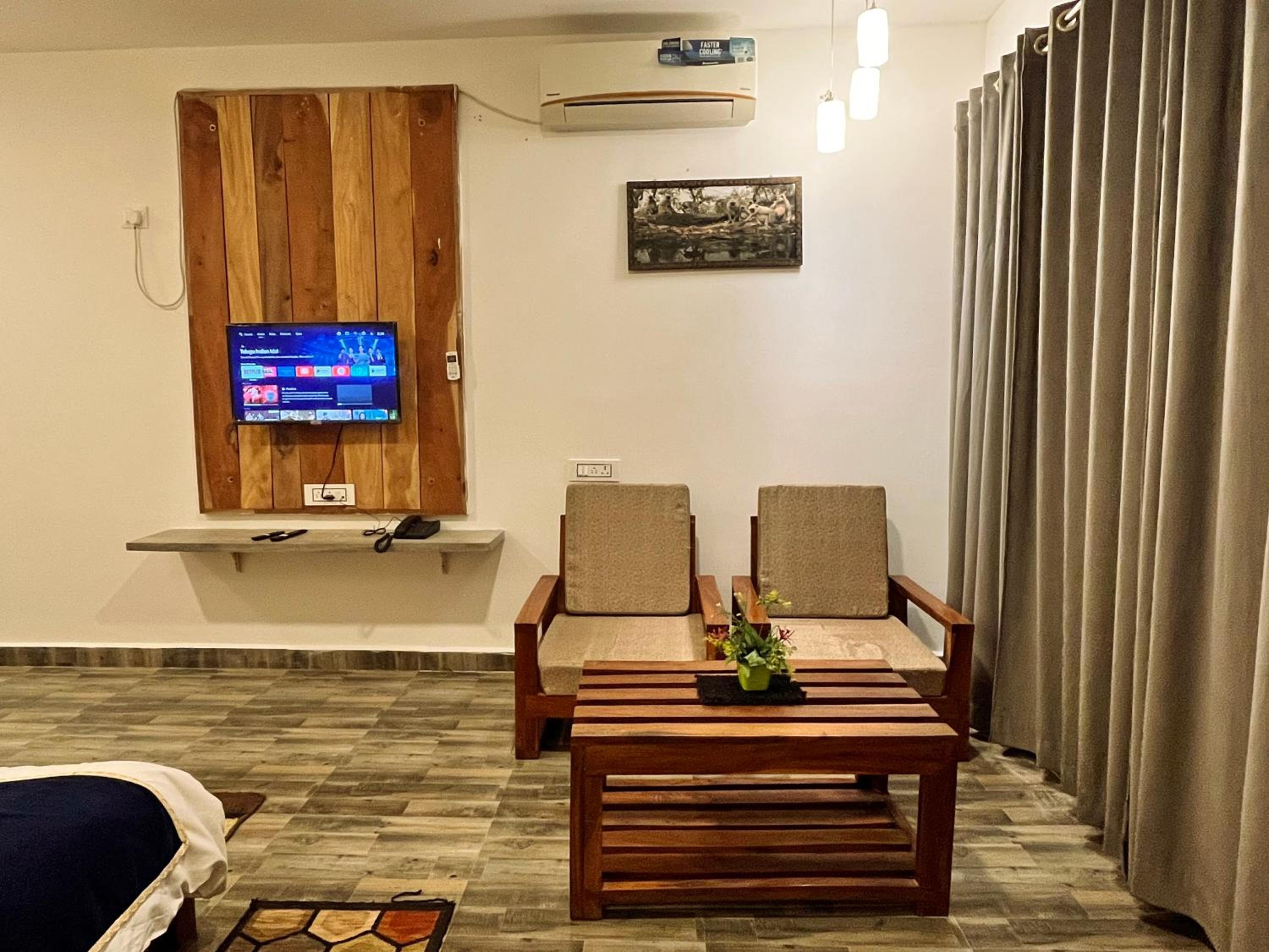 Property is located in very natural surroundings which is the usp of this place,rooms are clean and comparatively big, staff is super friendly ,they have a restaurant where you can order food of your choice(taste was very good n fresh just like home) recommended for family stay.We saw 3 tigers which made our trip successful.