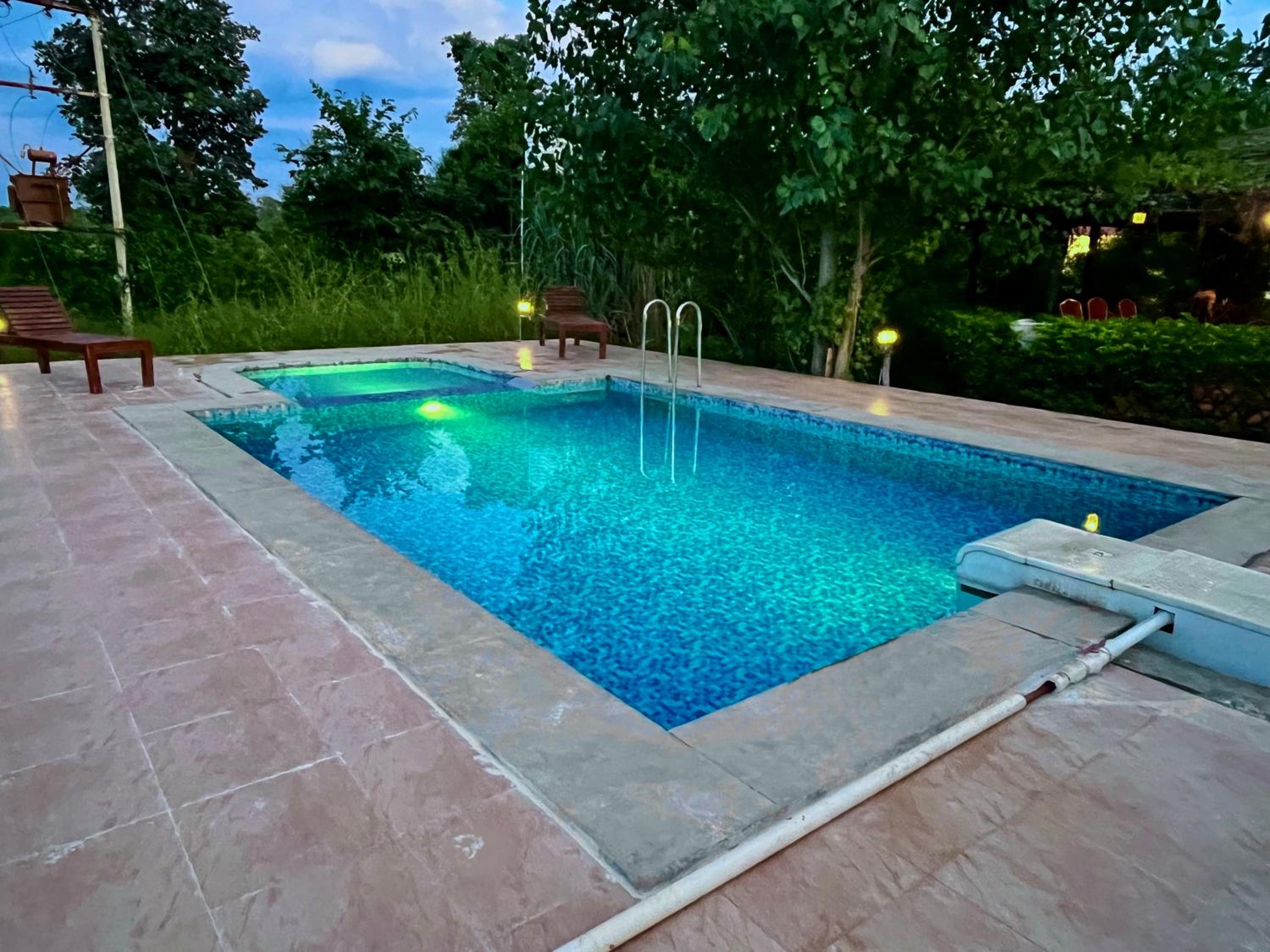 Indulge in the outdoor swimming pool and take in the lush garden surroundings at Grand Narmada Jungle Homestay Resort-Bandhavgarh. Stay connected with complimentary WiFi and savor delicious Chinese cuisine at the on-site restaurant.