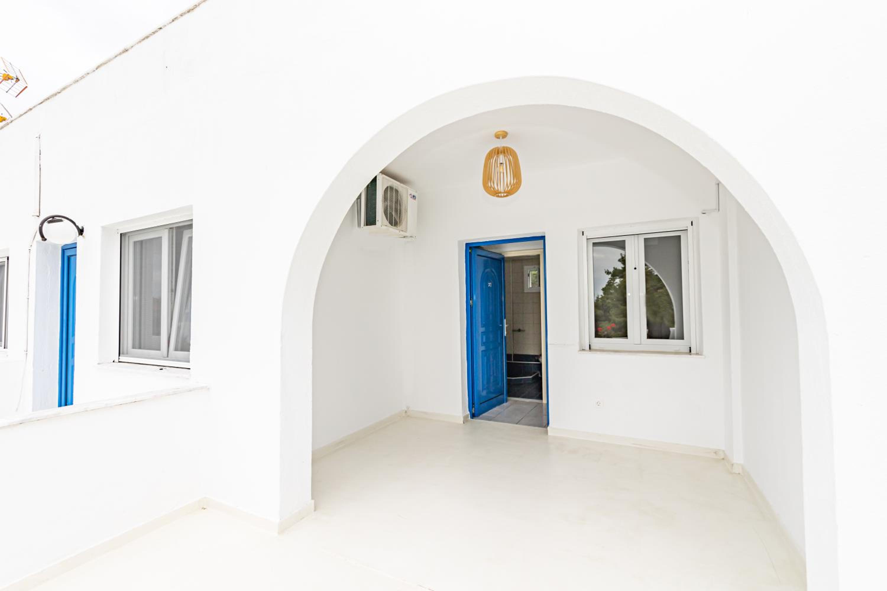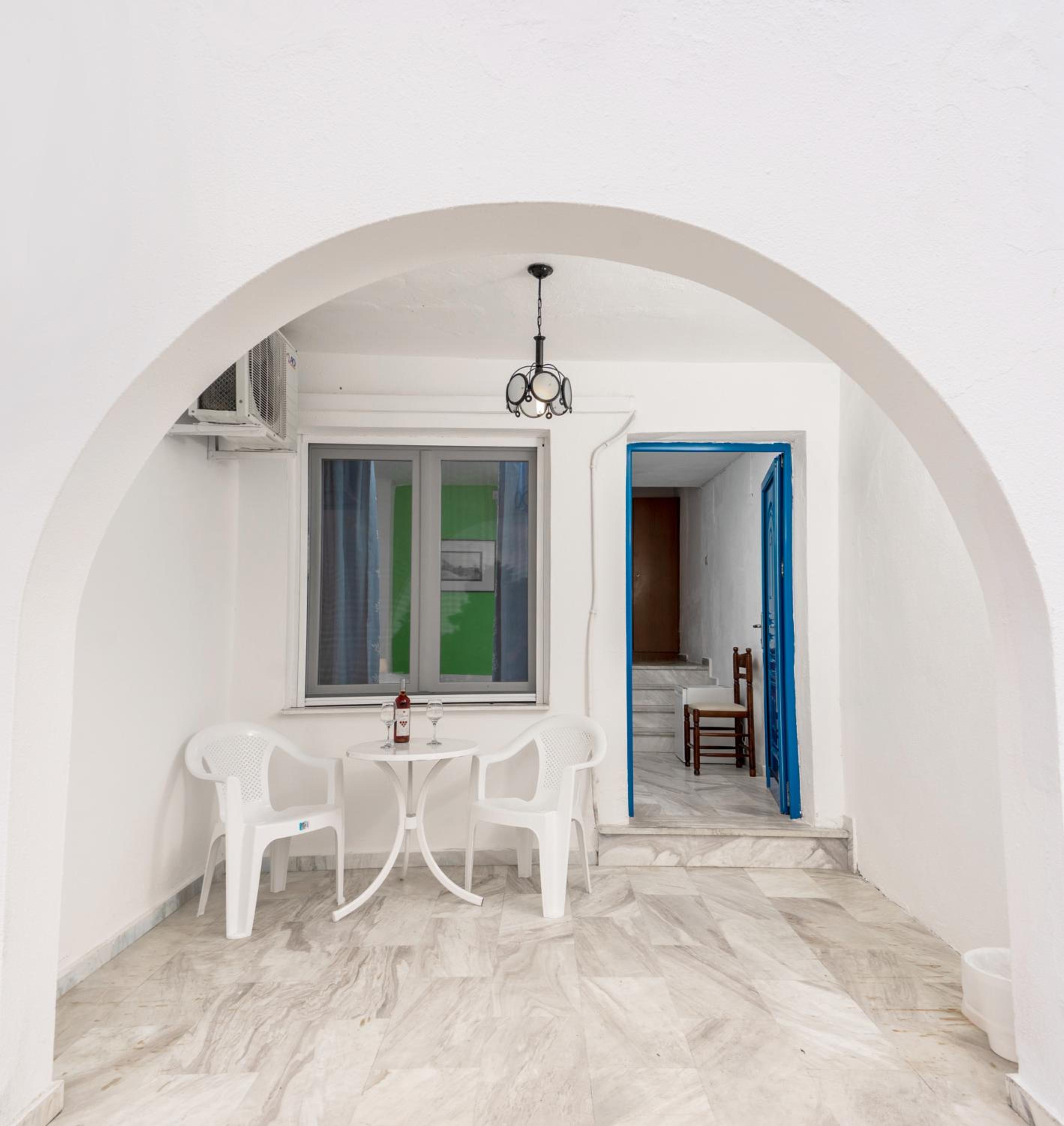 The outdoor place of the property gives Santorini vibes. So beautiful