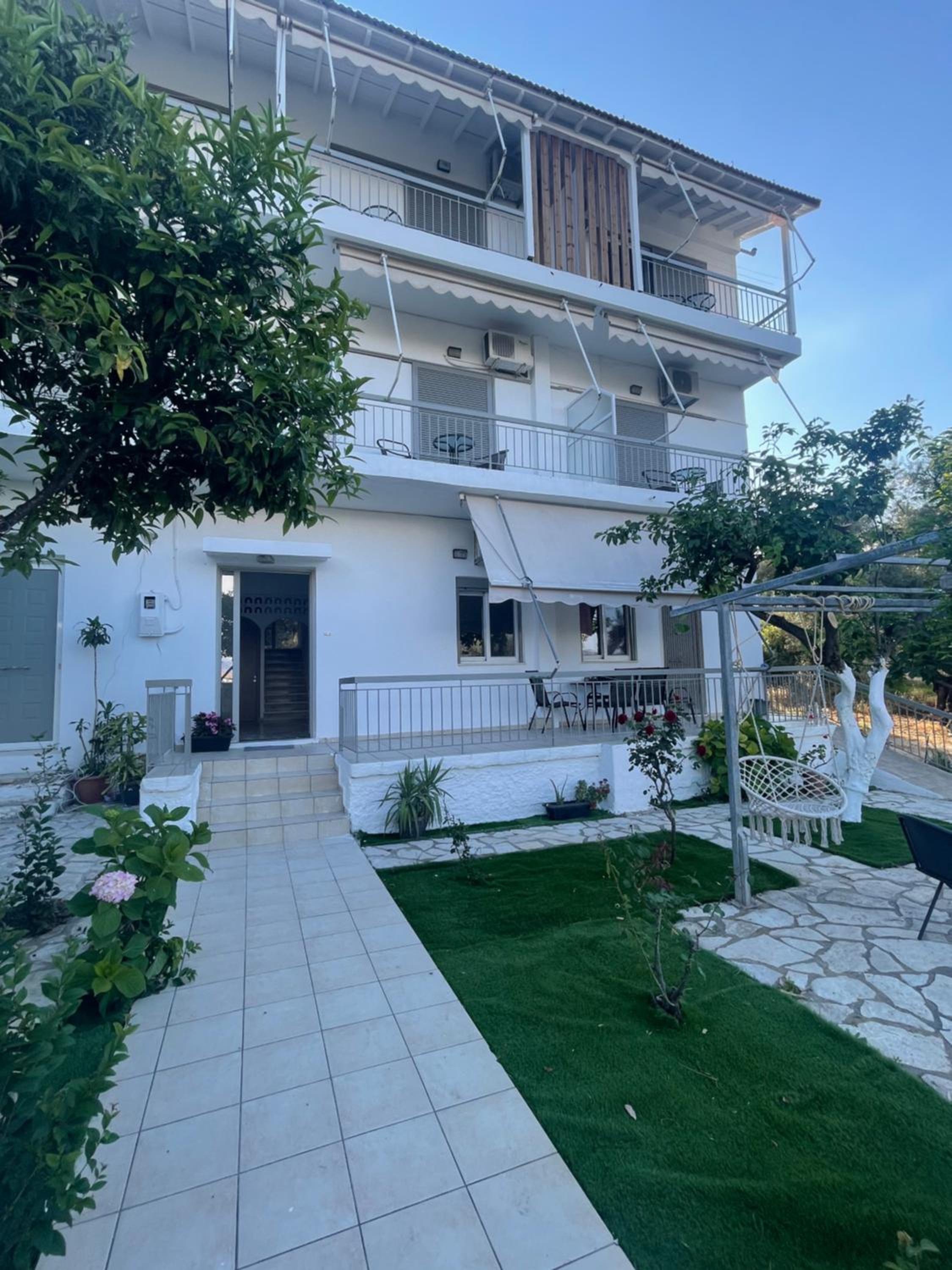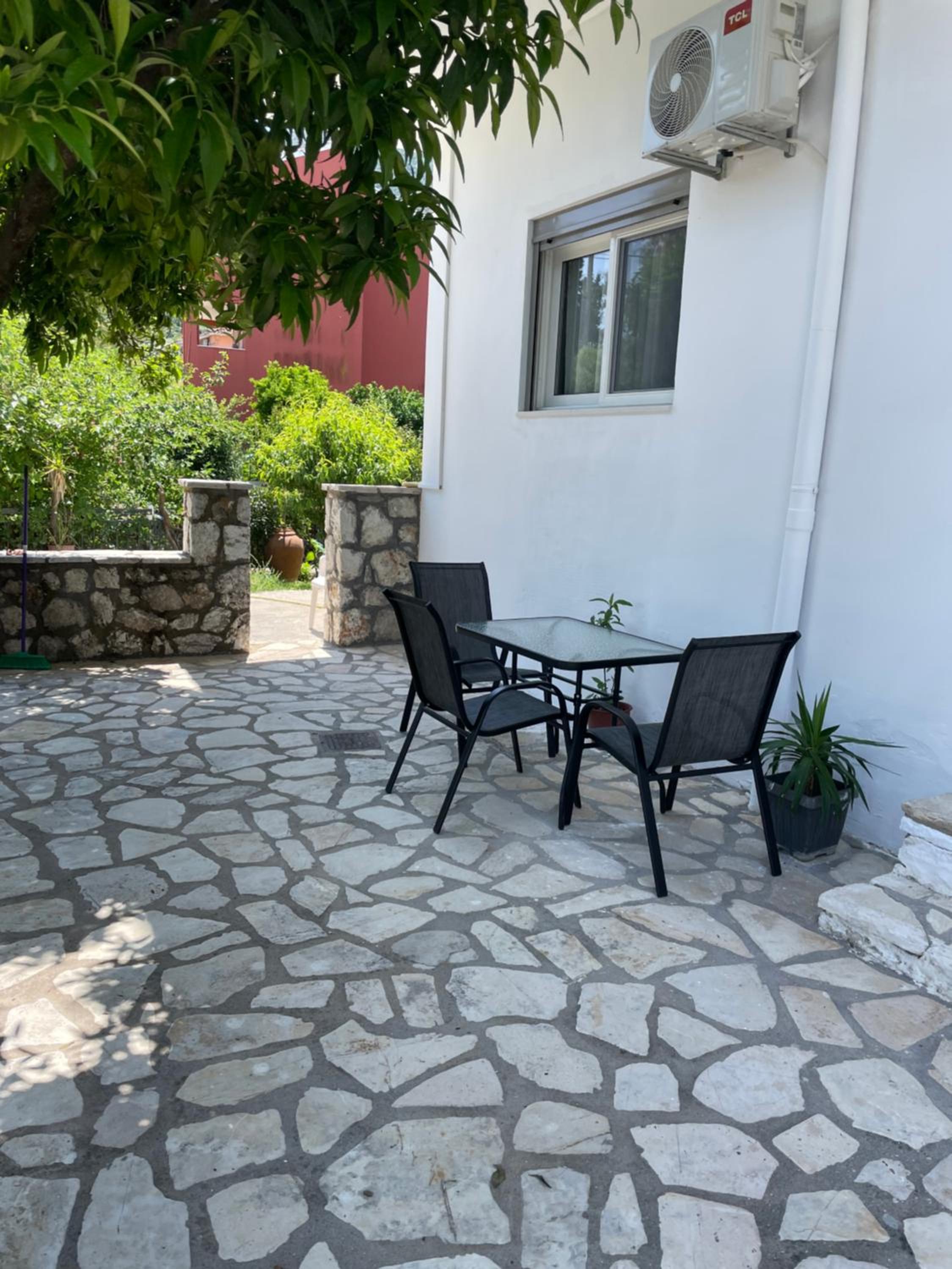 It was clean and spacious. There was a parking spot in front of the building. It is near Lefkada and Nidri.