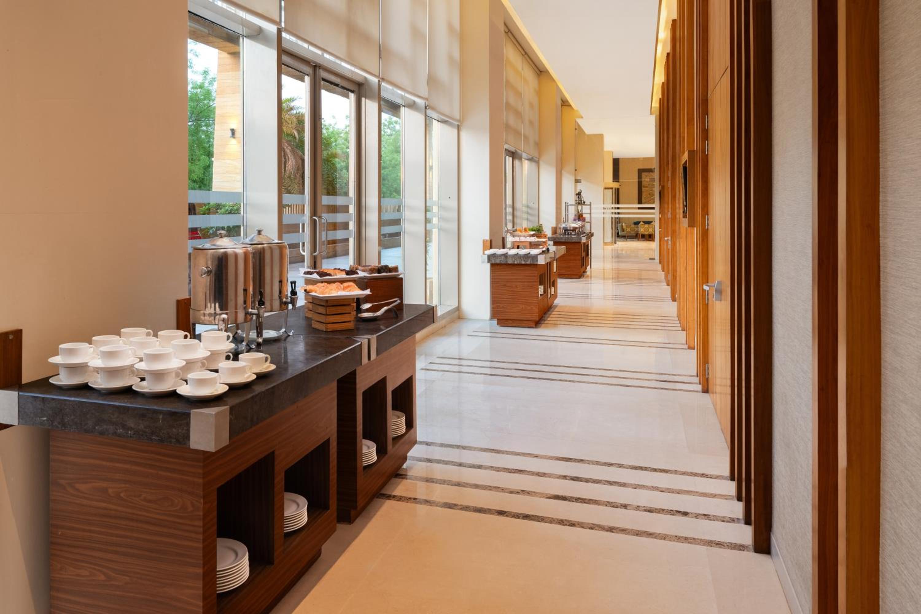 Guests can indulge in a culinary journey at Kava, the hotel’s all-day diner, serving a variety of global cuisines and featuring interactive live cooking stations for a delightful dining experience.