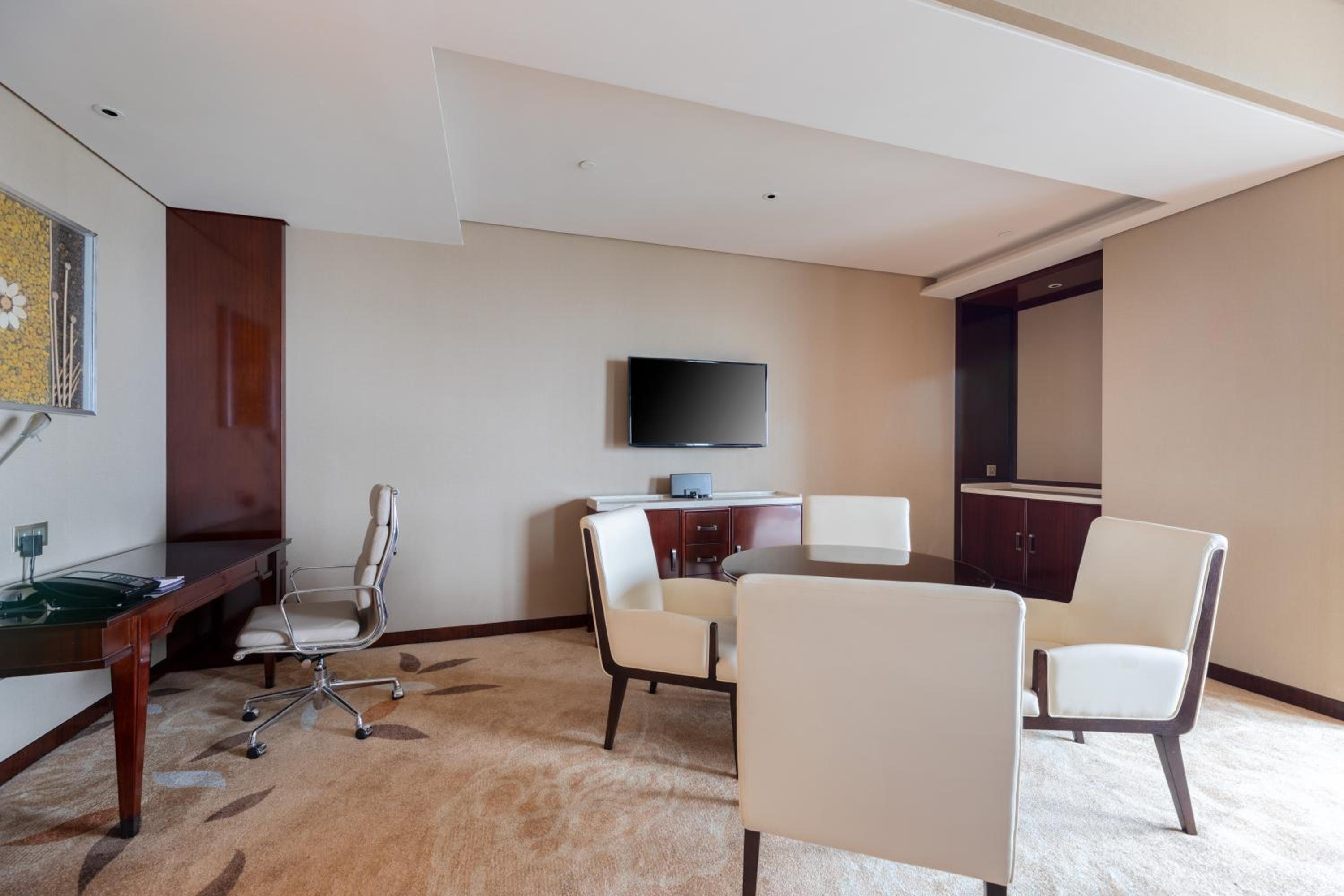 Sheraton Changde Wuling Hotel offers modern-style rooms with nice decoration, some providing beautiful lake views. Each room is equipped with essential amenities such as a flat-screen TV, safety deposit box, and minibar, ensuring a comfortable stay.