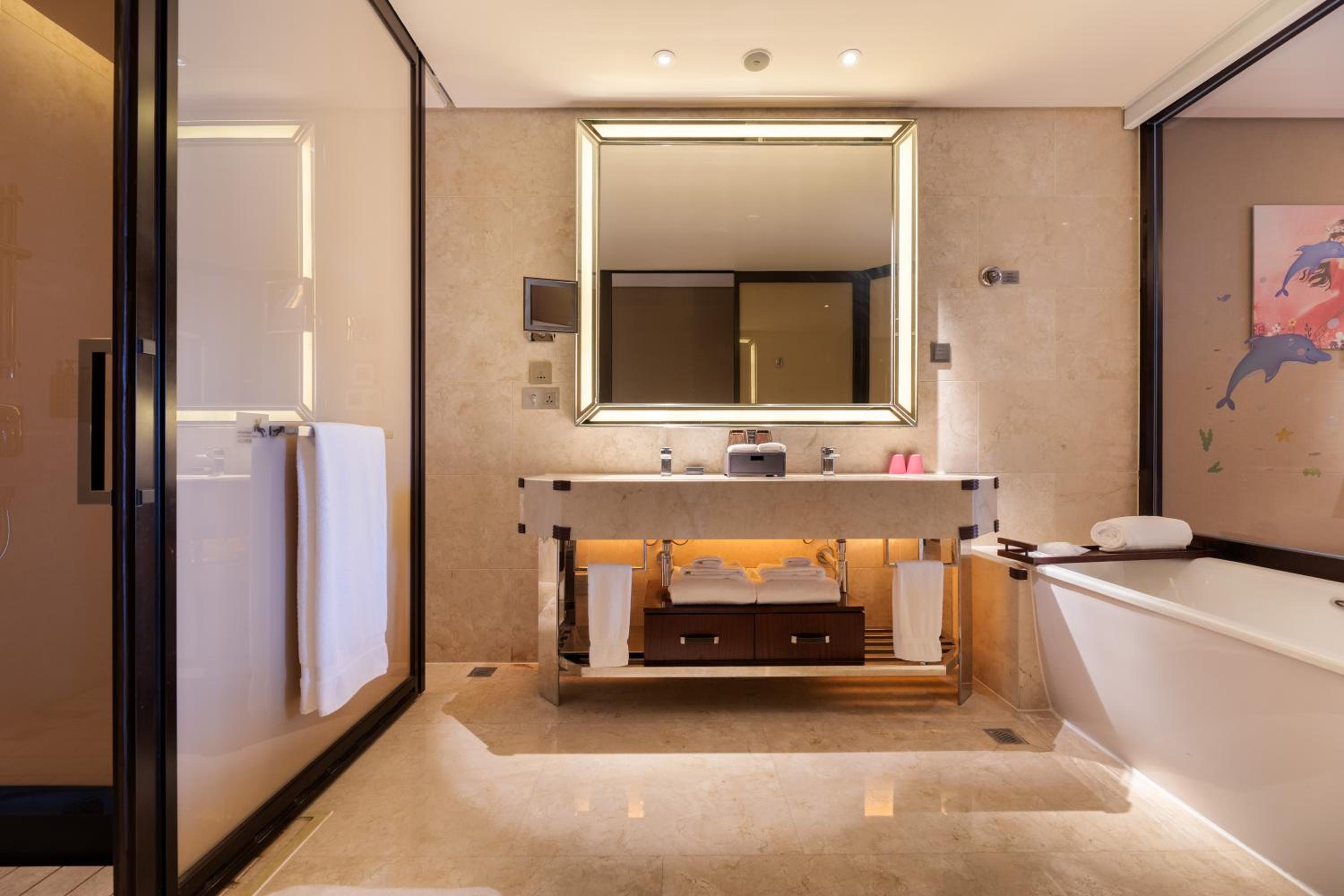 Bathroom is spacious, quiet bar in the lobby was a great add-on in otherwise crowded China