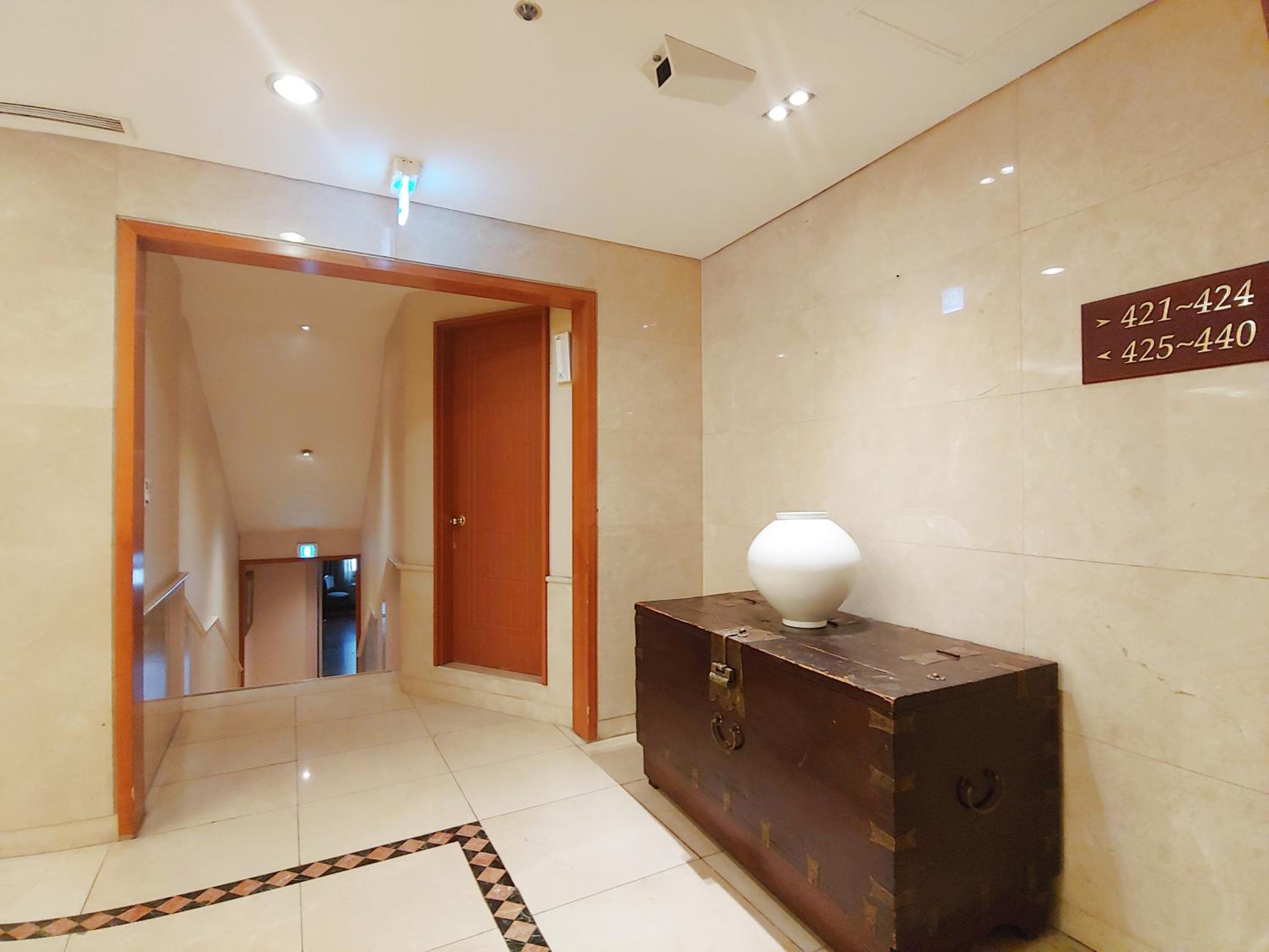 明洞の駅出口から上がってすぐなので旅行中の移動がとても楽でした お部屋もゆったりで老舗の重厚感もあり素敵でした