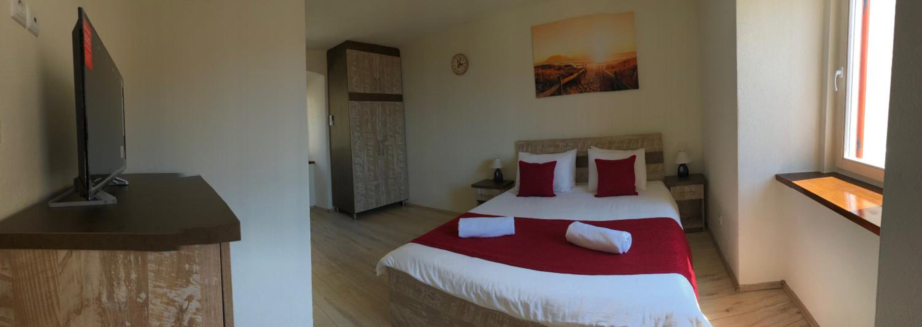 Parking nije osiguran, treba ga traziti, izgubis puno vremena da ga nades, mada se vlasnik ljubazno ponudio da ce ga on placati za vrijeme boravka...takoder domacica ili kaj vec je govori madarski i engleski, no ne i hrvatski...