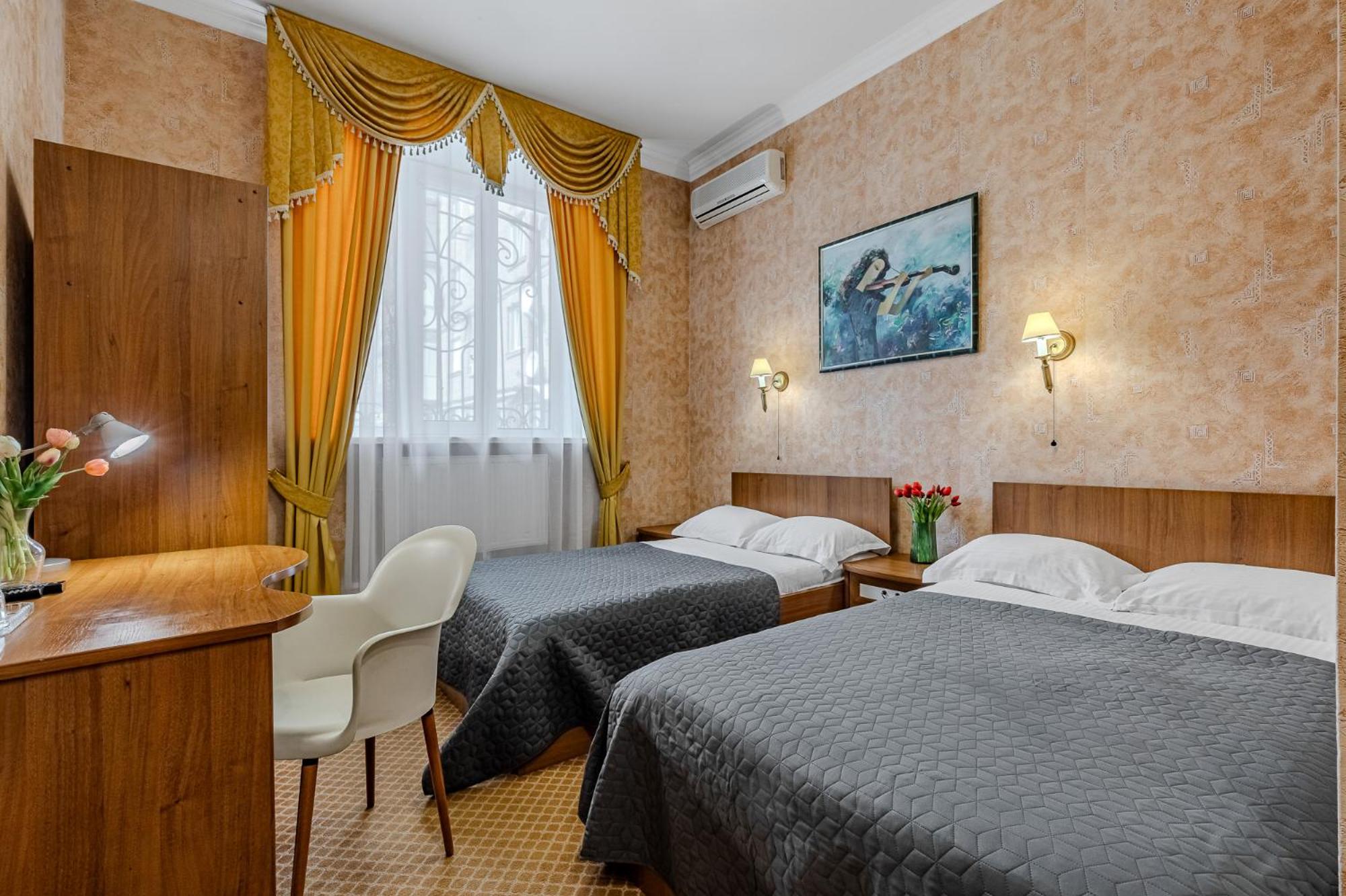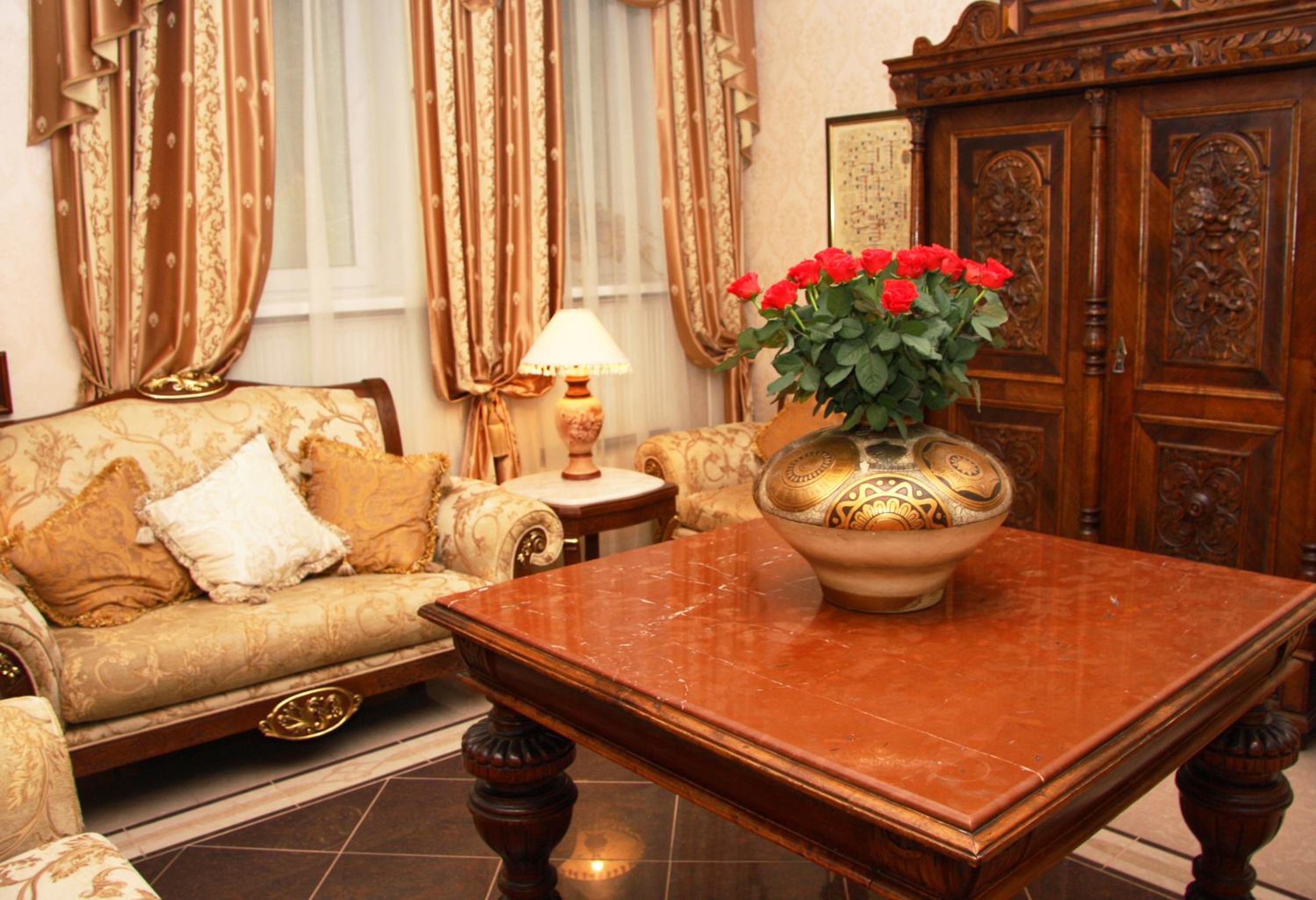 Step into the opulent world of Gallery Hotel Gintama, nestled in the heart of Kiev. Adorned with rich decorations, our hotel offers a seamless blend of elegance and contemporary comforts. The air-conditioned rooms and suites feature plush seating areas, satellite TV, and free Wi-Fi, ensuring a luxurious stay for every guest.