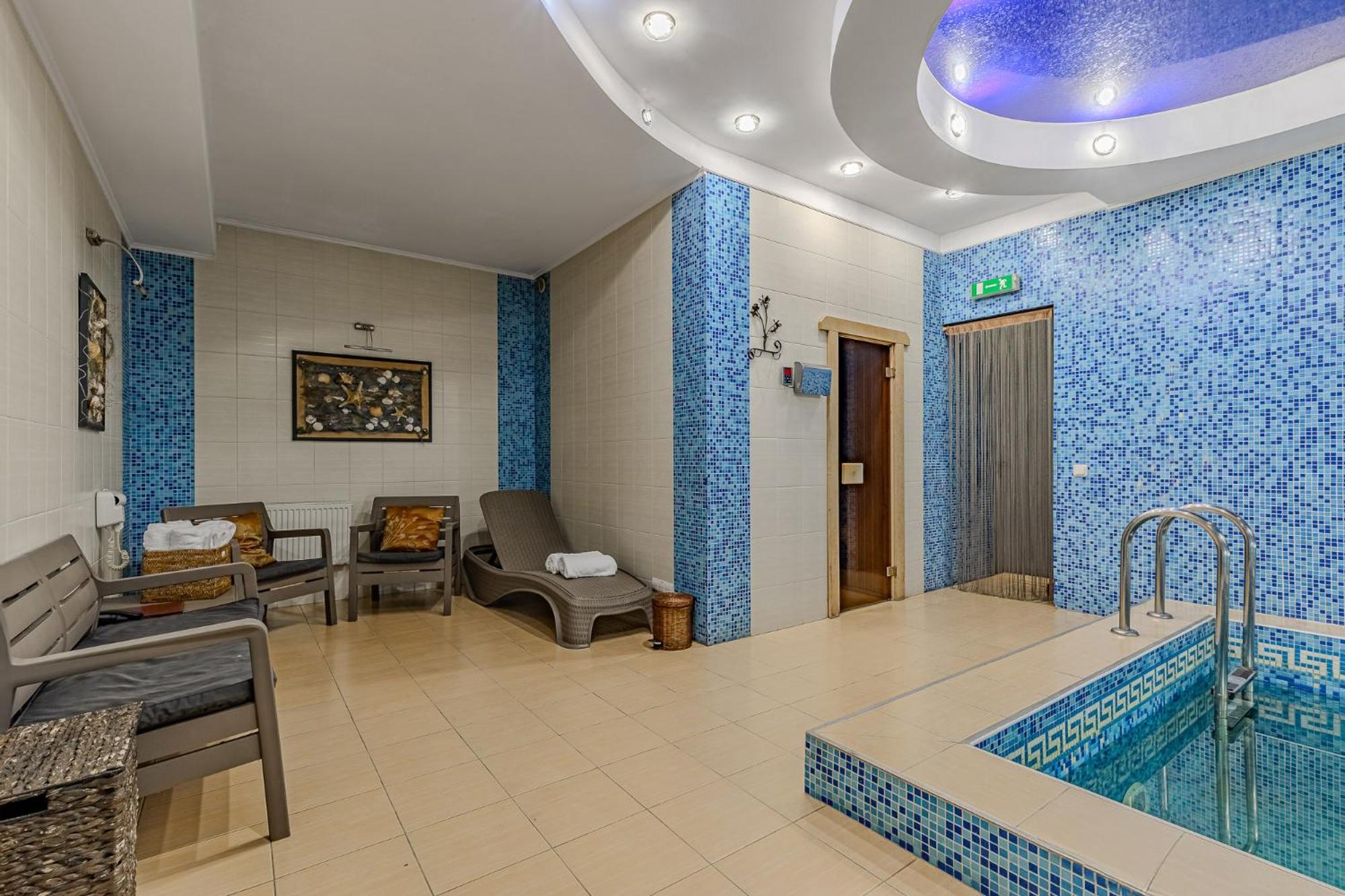 Indulge your taste buds at Gintama restaurant, where Ukrainian and Mediterranean cuisines take center stage. Unwind at the hotel bar with a selection of wines and cocktails. For ultimate relaxation, our spa beckons with a plunge pool, sauna, and rejuvenating Thai massages.