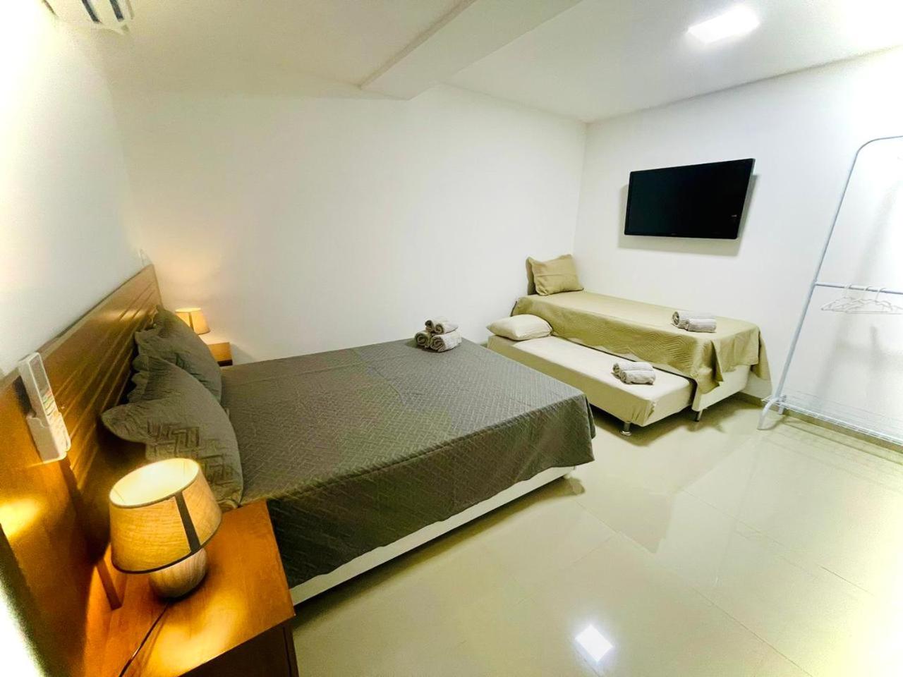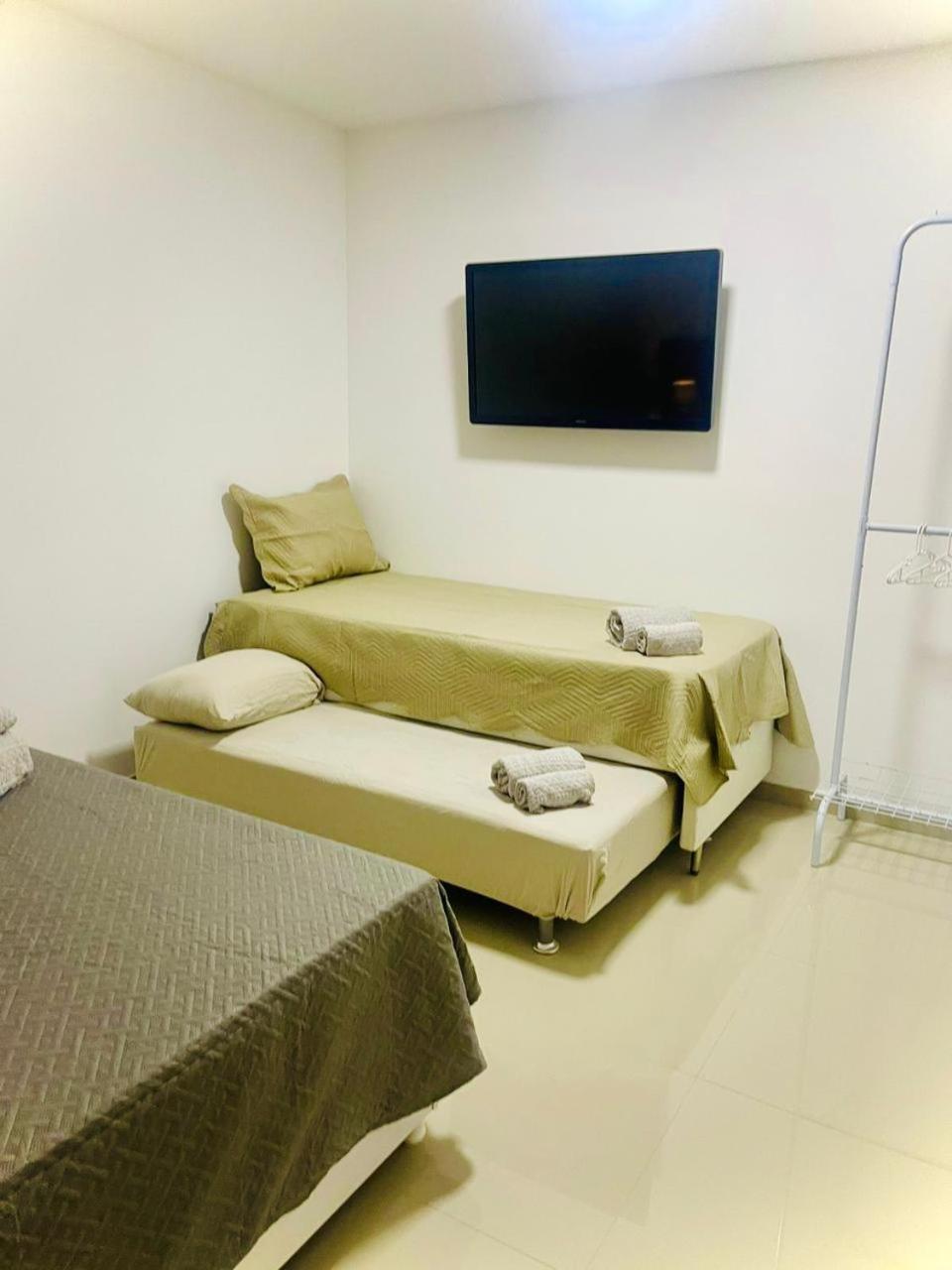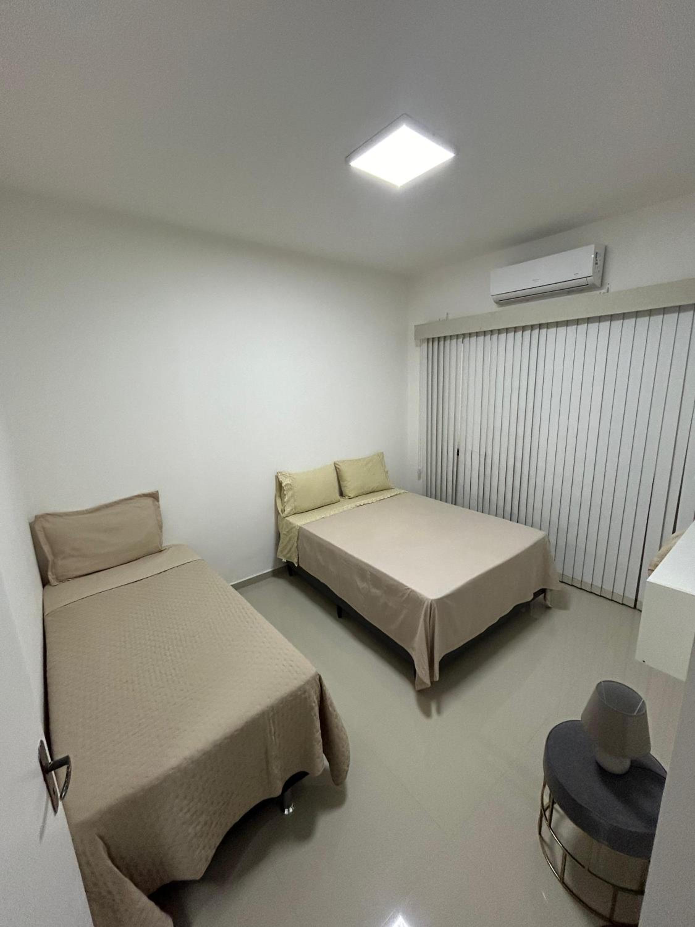 Tem 1 quarto que possui 4 cama e o espaço muito pequeno.