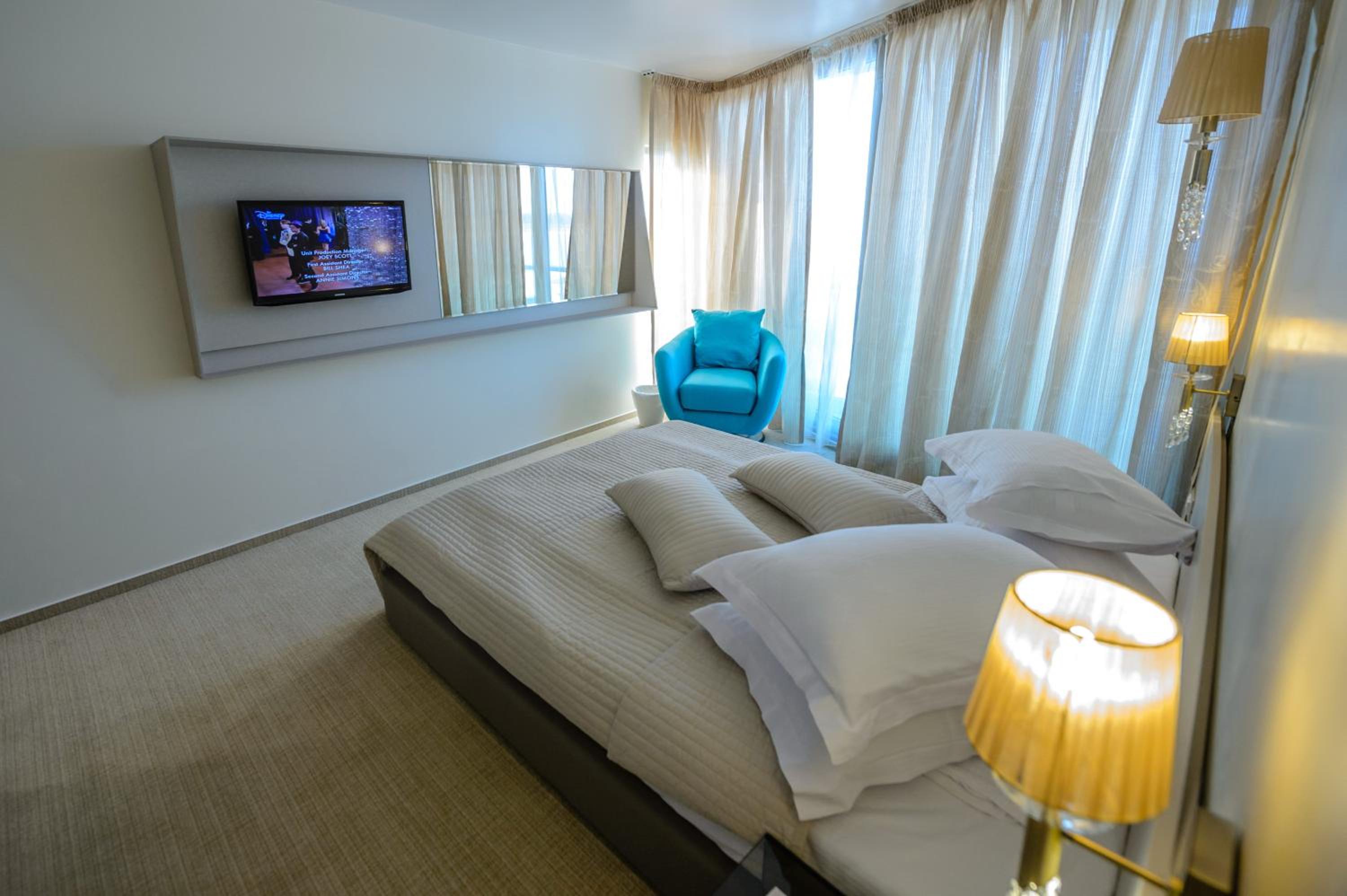 În primul rand nu se poate dormi pana la ora 2.00 (muzica "bubuia" de la terasa de vis a vis).. a doua seara a trebuit sa plec din hotel noaptea la 00.00 pt ca nu reușeam sa adorm copilul si recepția mi.a explicat ca nu pot face nimic .. (deci din 2 nopti una a fost cu reclamație la politie care au mai domolit un pic muzica)