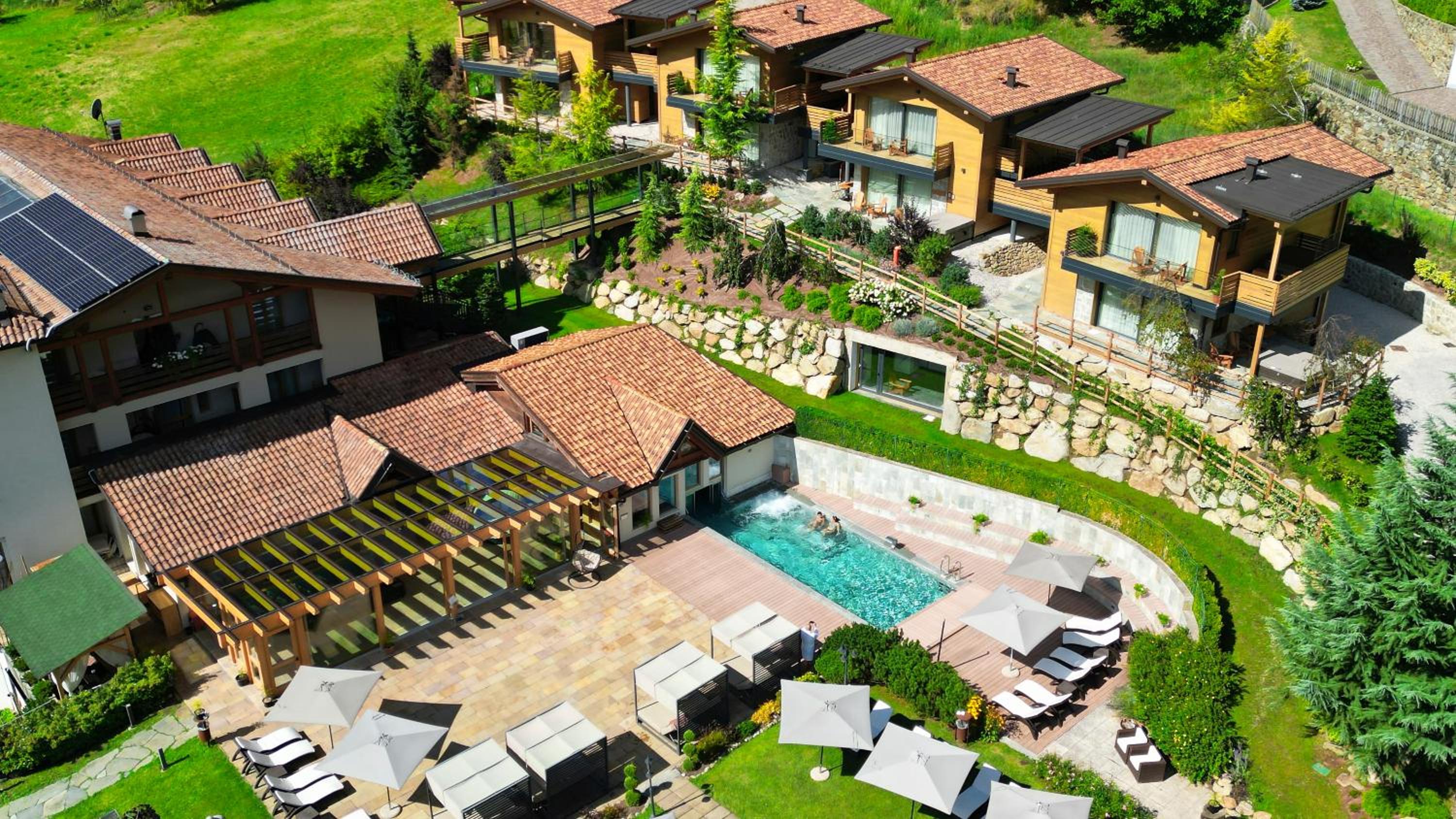 Unwind in the outdoor swimming pool, sauna, or with a glass of wine on the balcony.