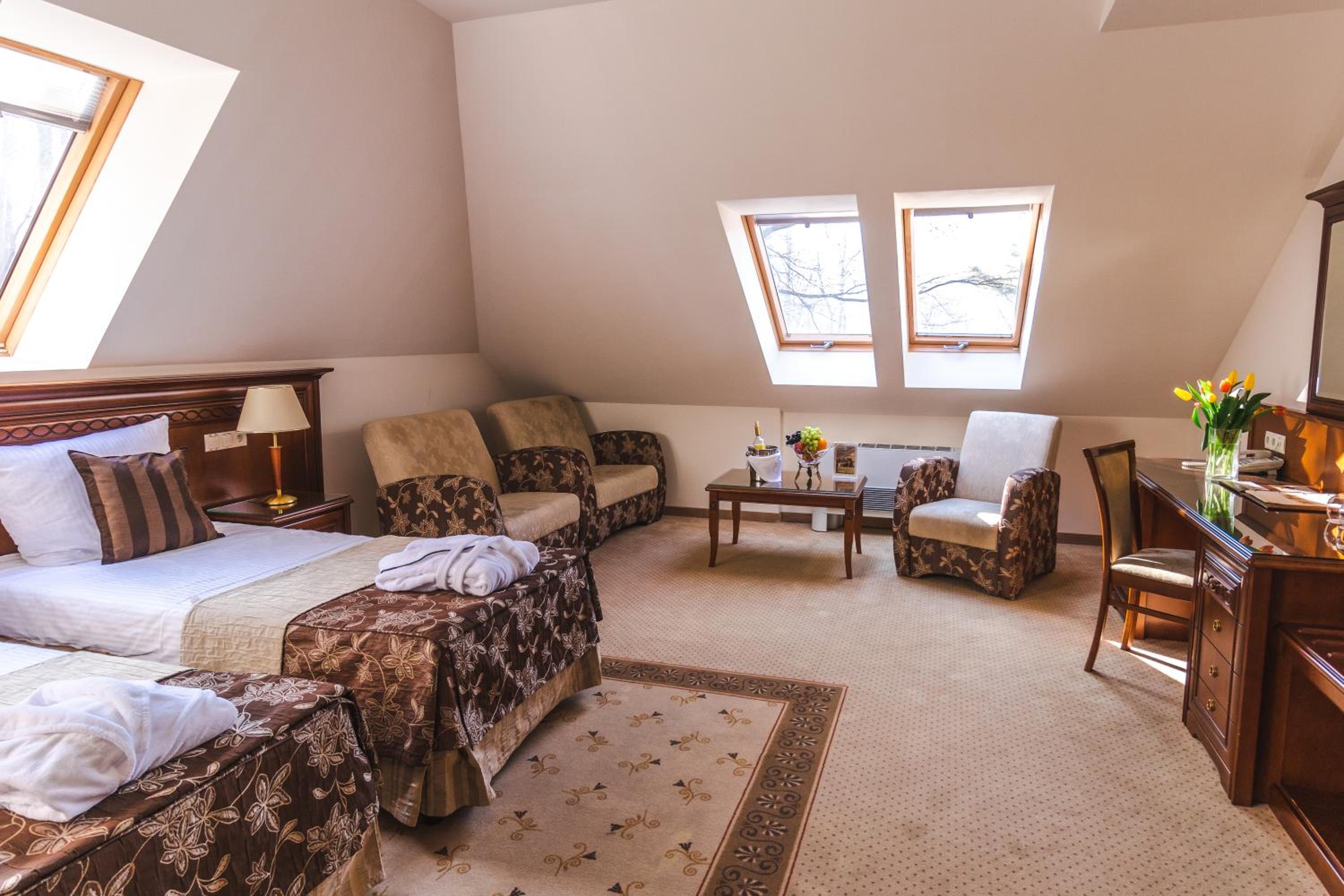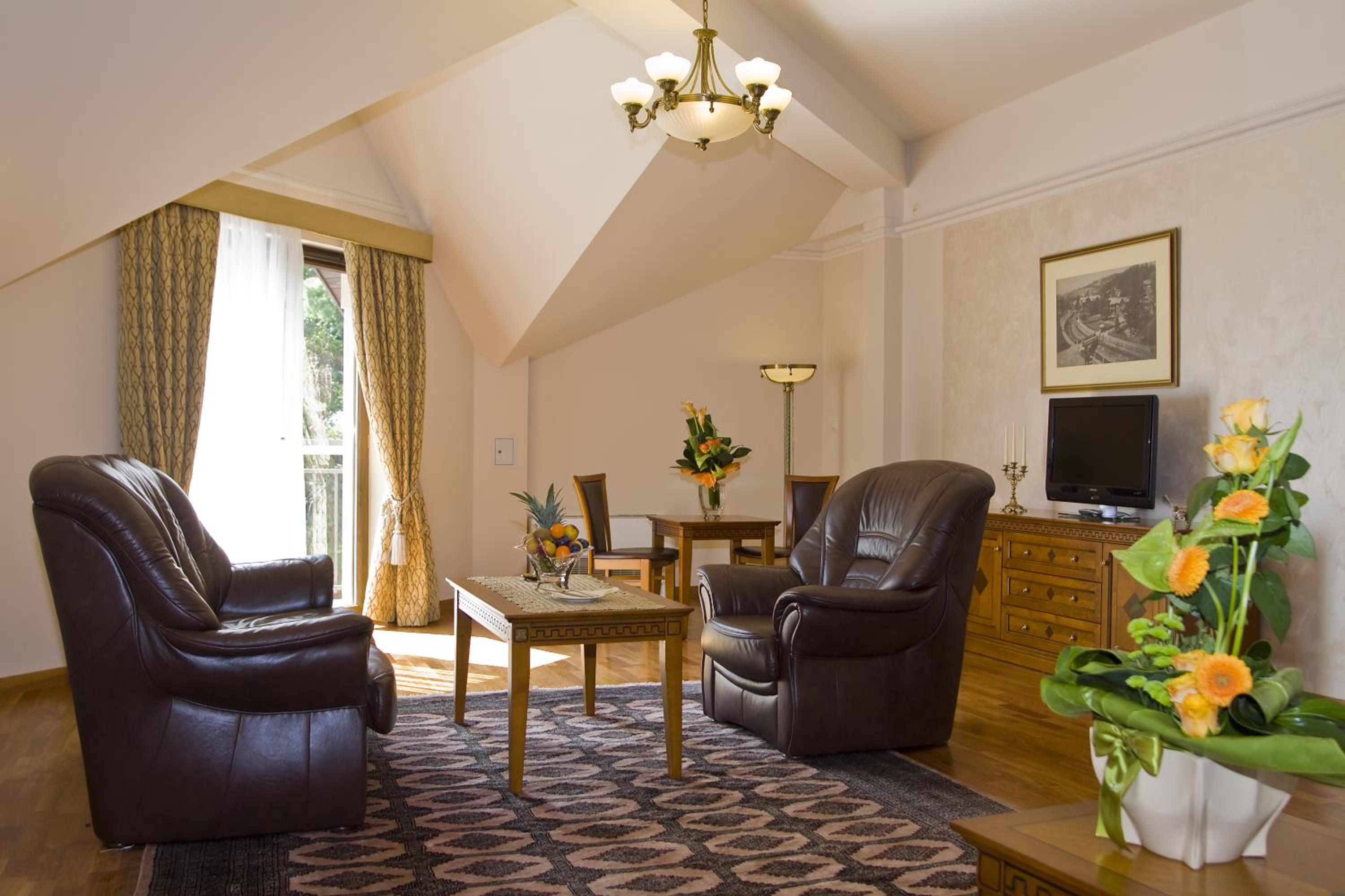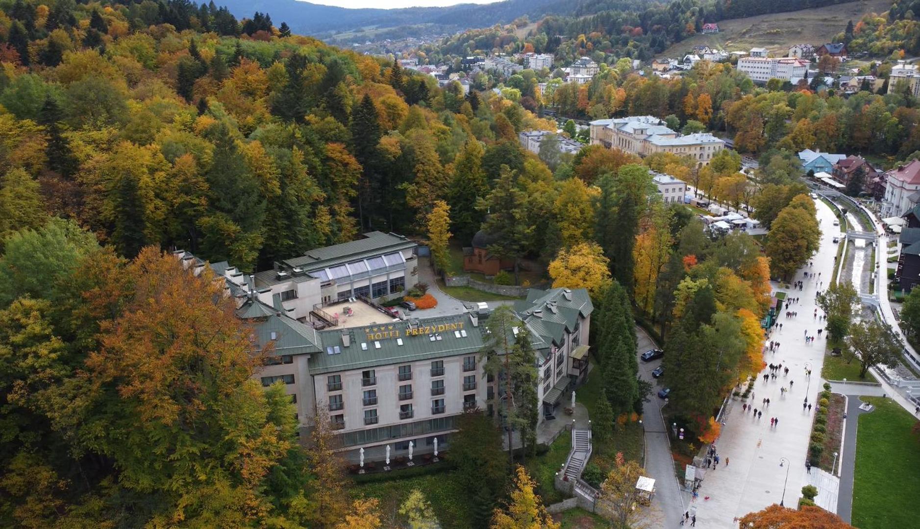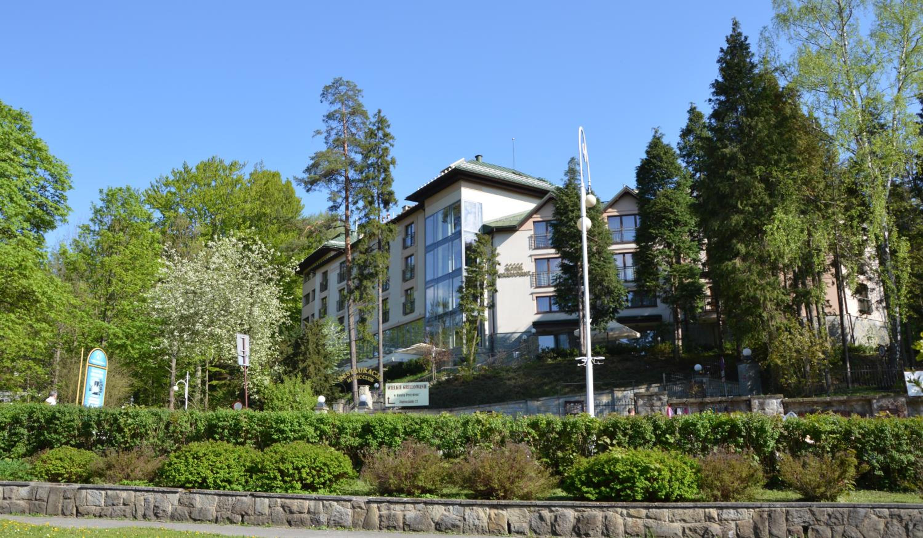 Hotel Prezydent Krynica Zdrój, located near Nikifor Museum, offers a serene retreat with a garden, private parking, and a bar. The rooms are elegantly furnished with modern amenities, including a flat-screen TV, air conditioning, and a private balcony in selected rooms.