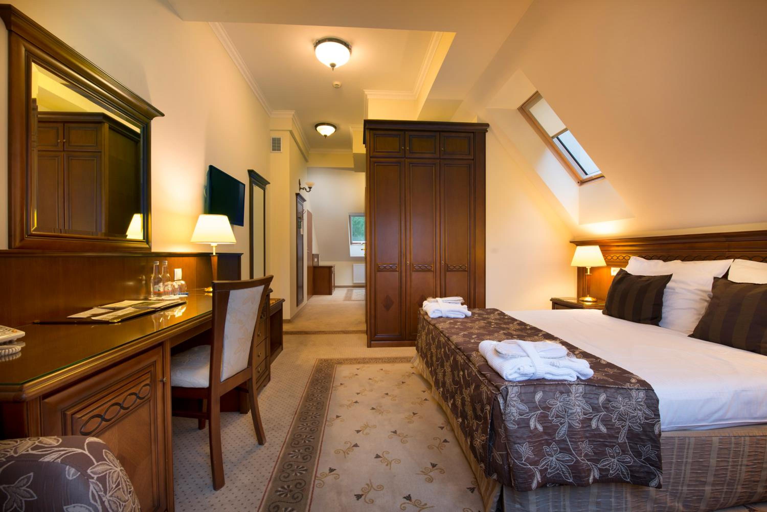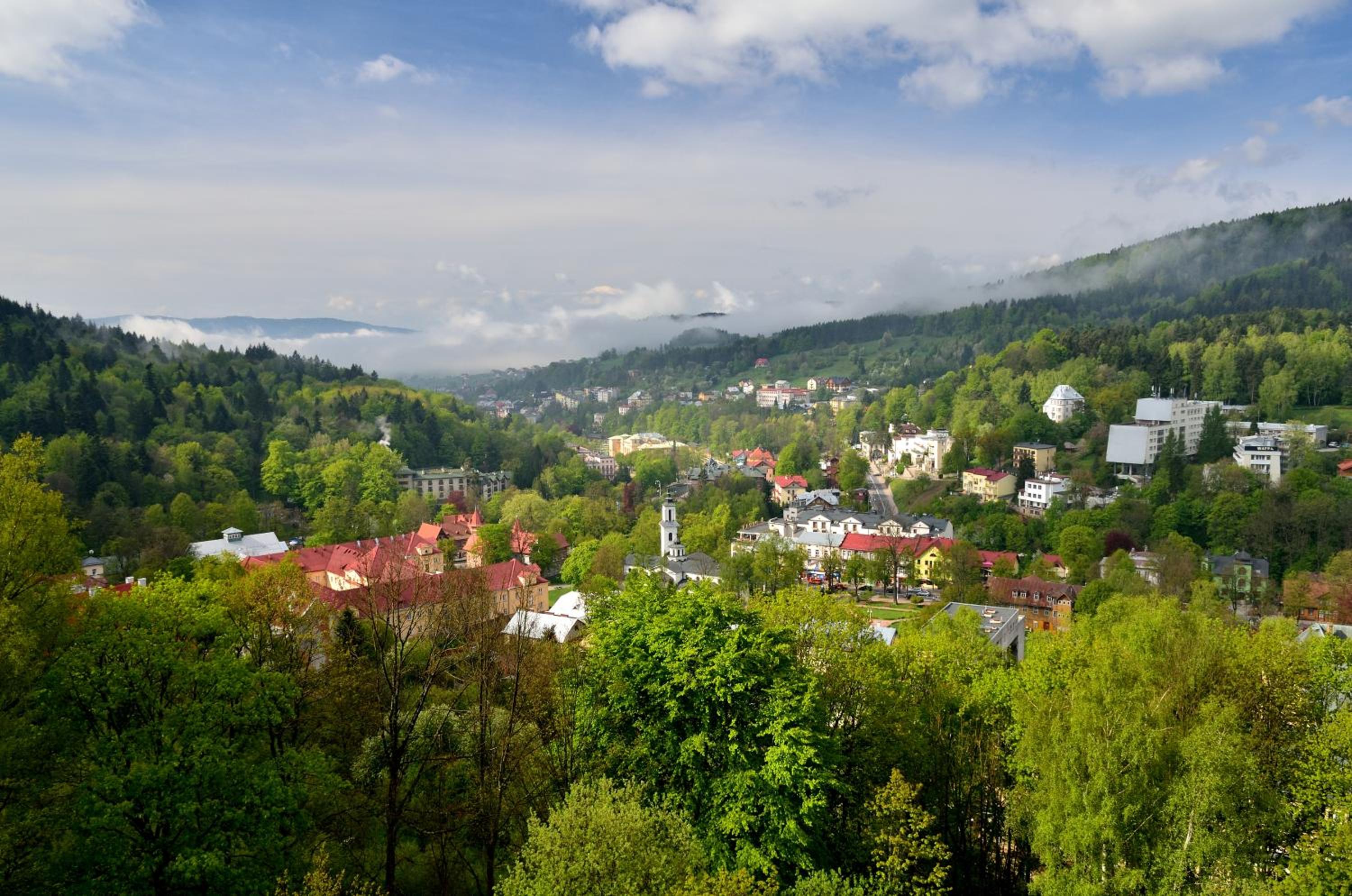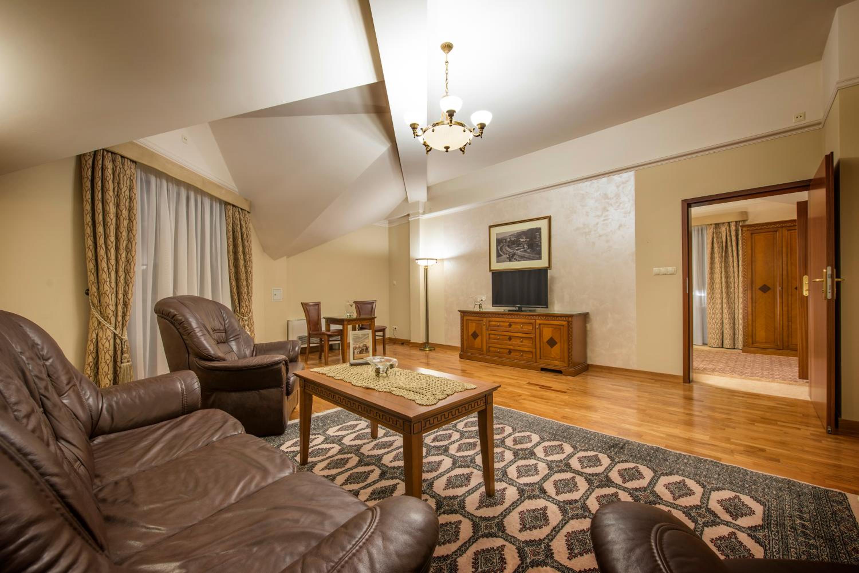 Hotel Prezydent Krynica Zdrój, located near Nikifor Museum, offers a serene retreat with a garden, private parking, and a bar. The rooms are elegantly furnished with modern amenities, including a flat-screen TV, air conditioning, and a private balcony in selected rooms.