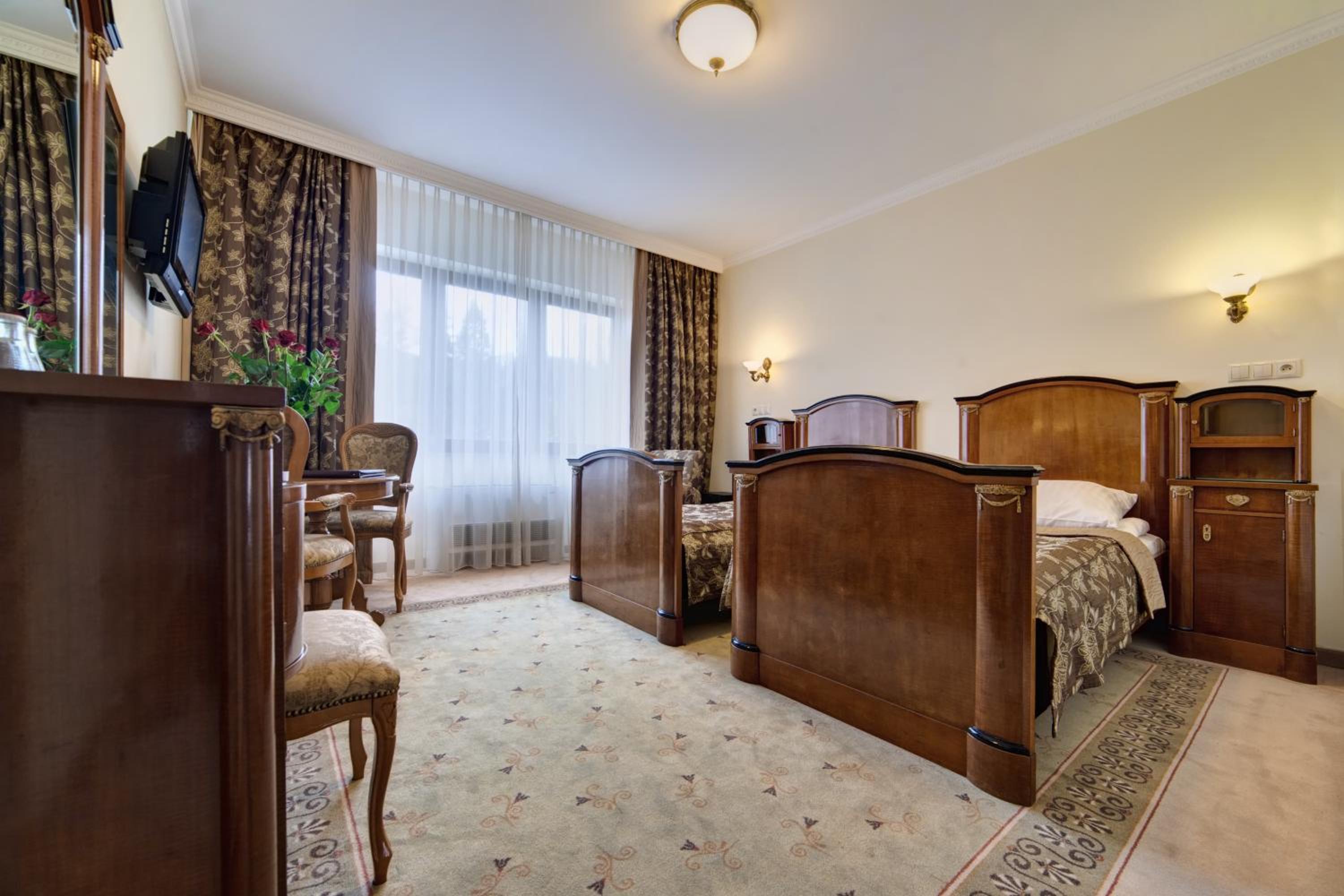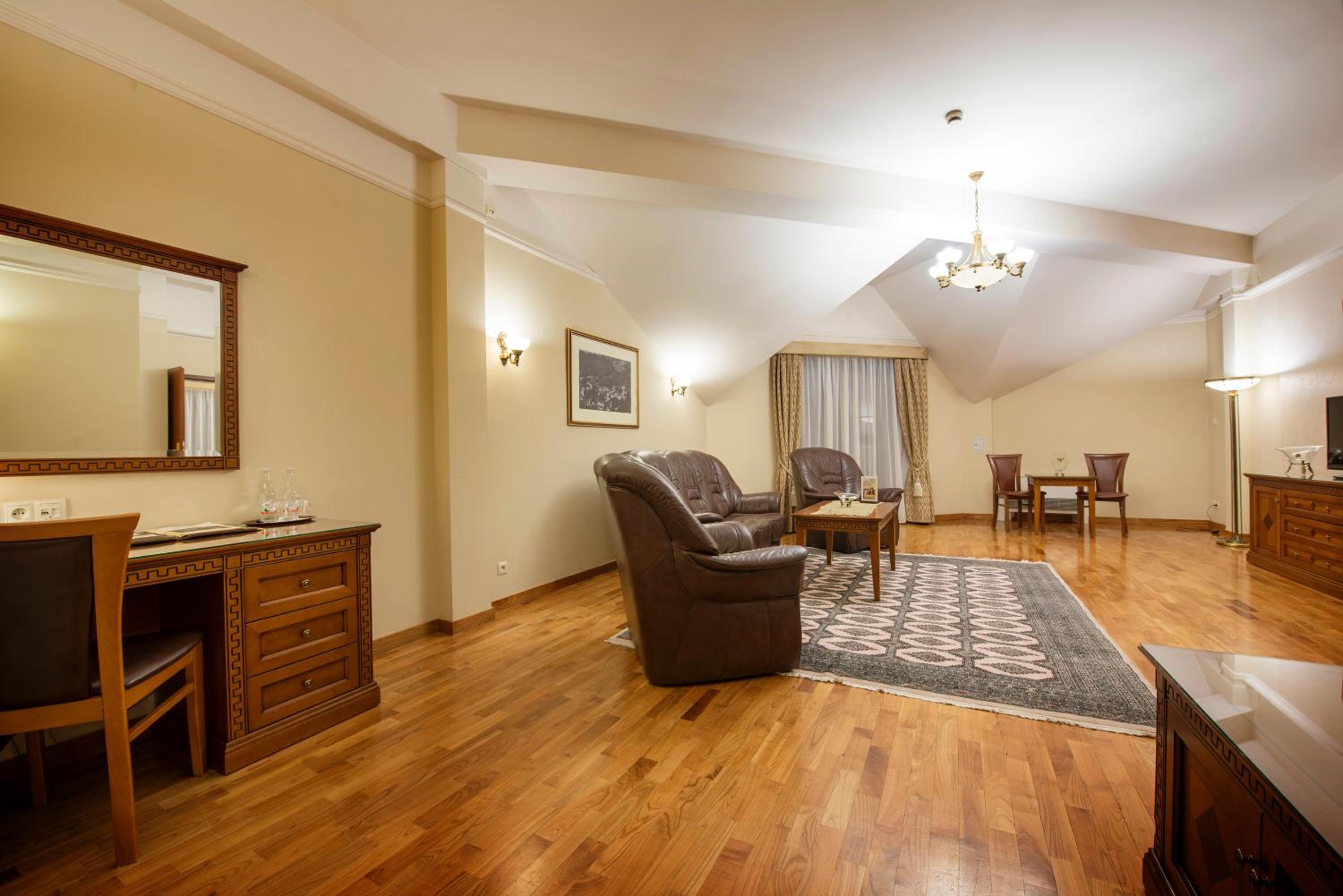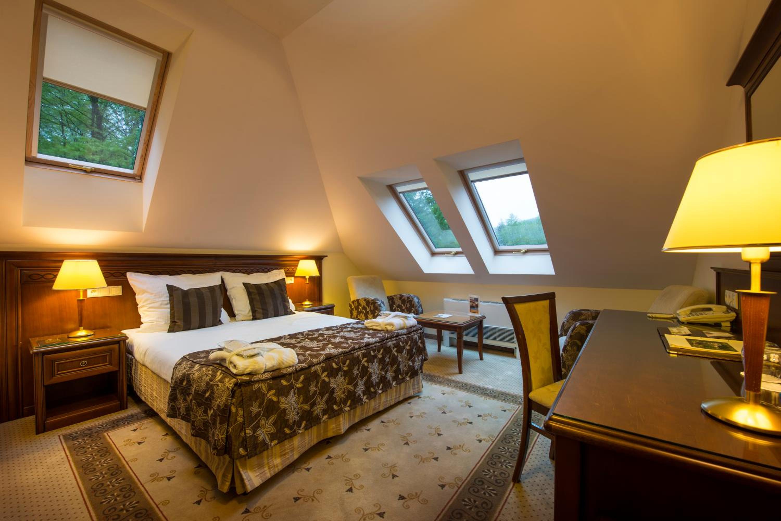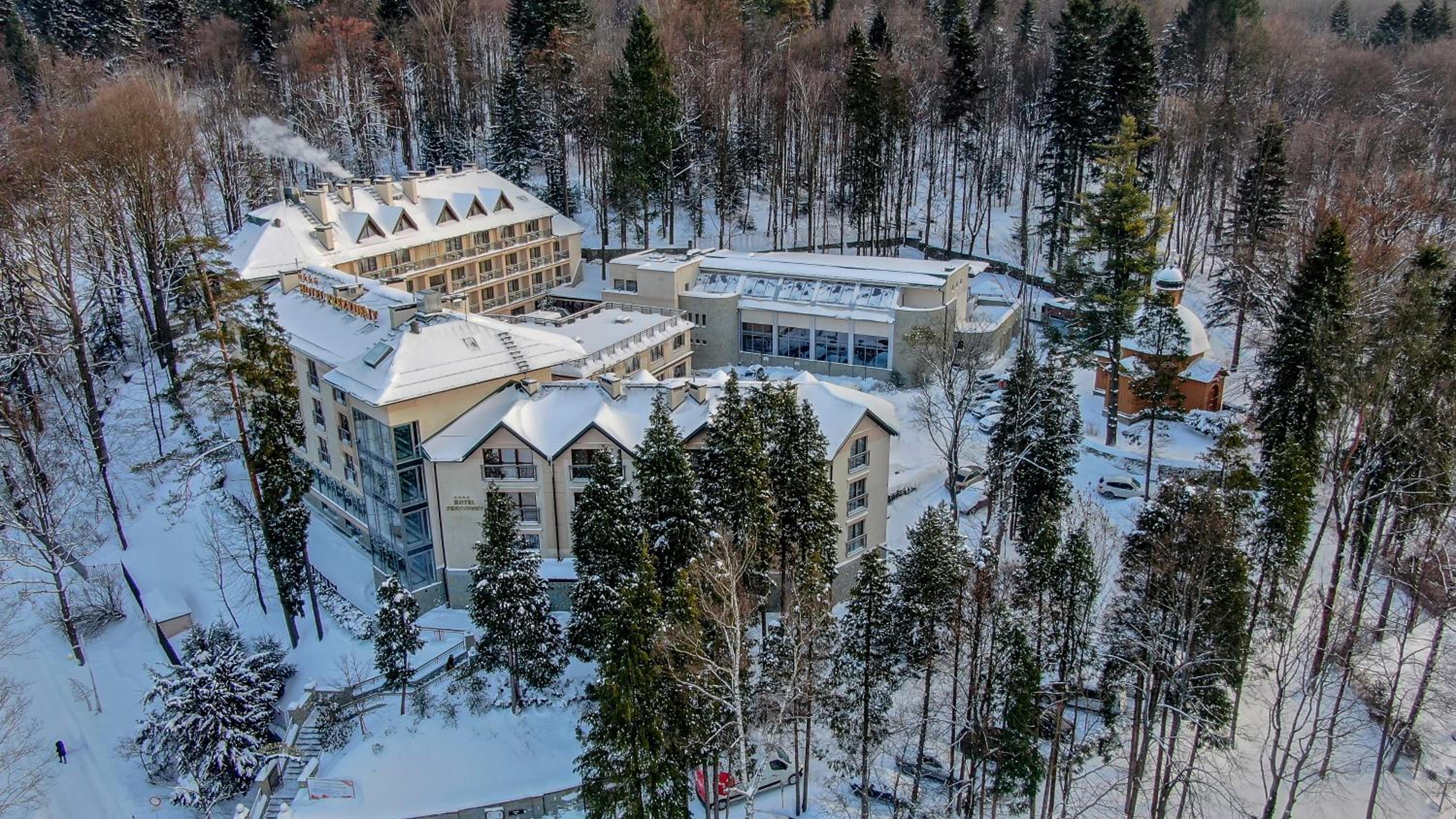 Hotel Prezydent Krynica Zdrój, located near Nikifor Museum, offers a serene retreat with a garden, private parking, and a bar. The rooms are elegantly furnished with modern amenities, including a flat-screen TV, air conditioning, and a private balcony in selected rooms.