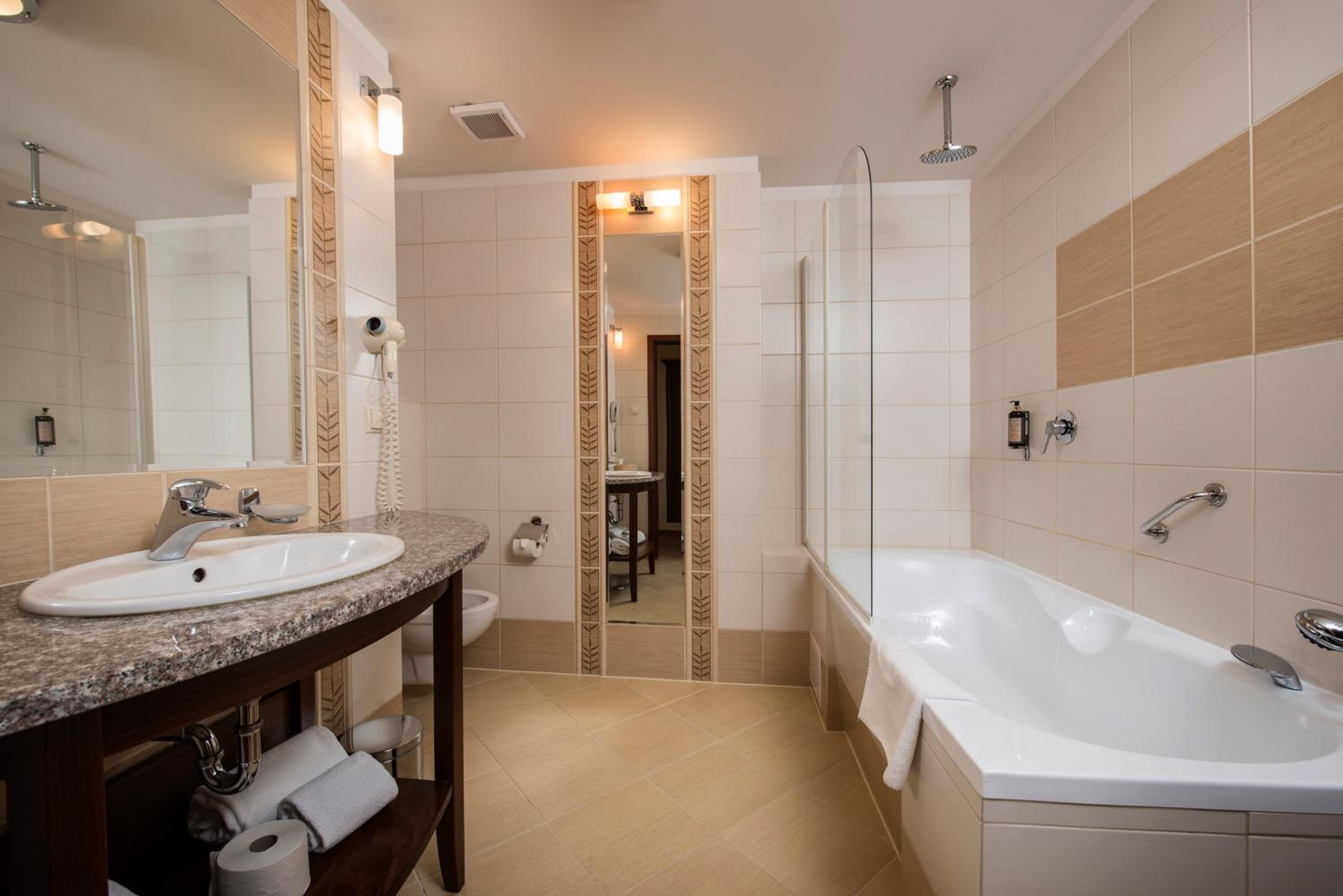 Przyjemne zaplecze tj SPA basen. Miła obsługa i przyjemna kawiarenka hotelowa z dancingiem. Lokalizacja świetna w samym centrum miasteczka.