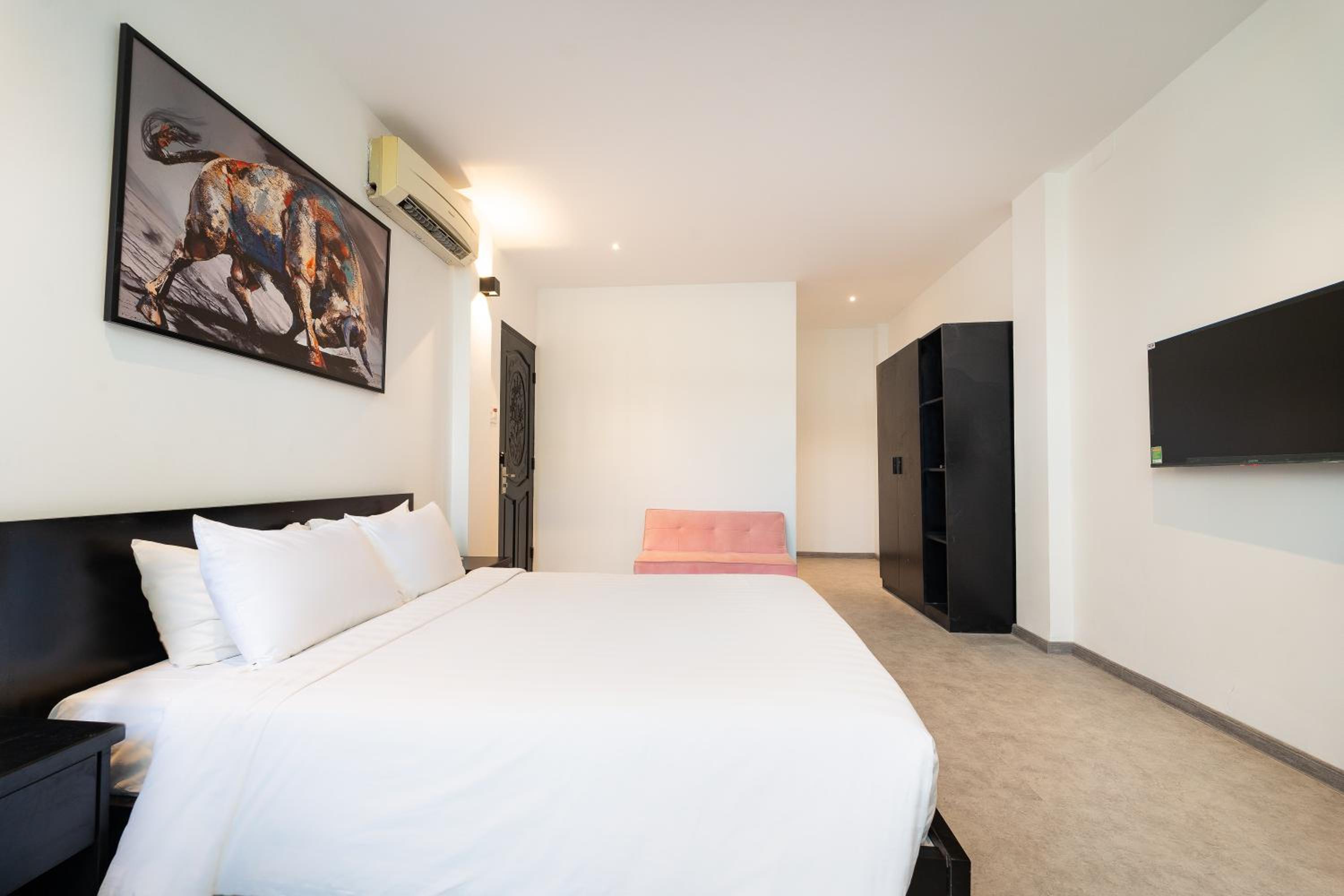 Each room at Nicecy Condotel Yersin Street is thoughtfully equipped with a desk, flat-screen TV, and cozy bedding to ensure a comfortable stay for guests.