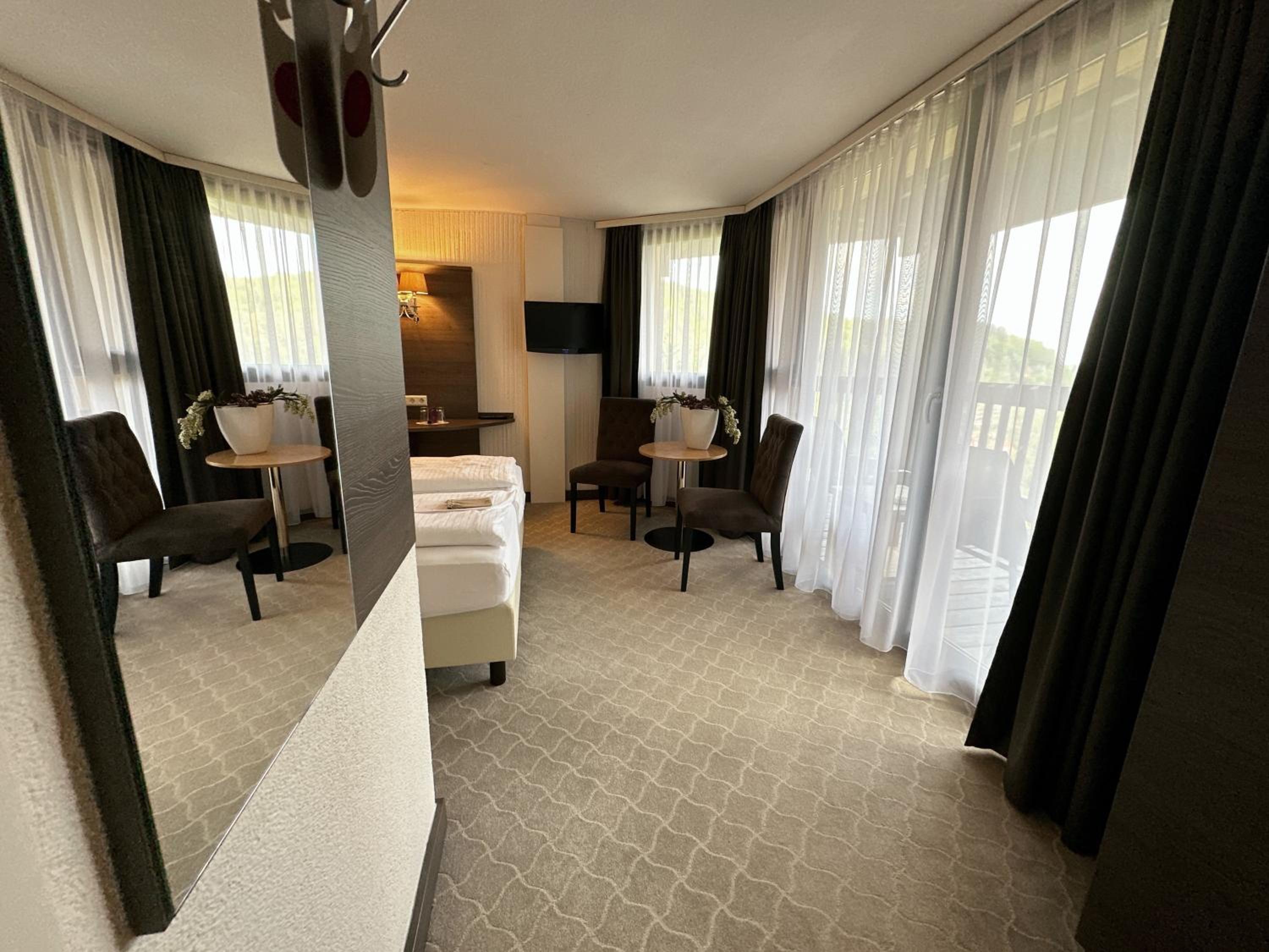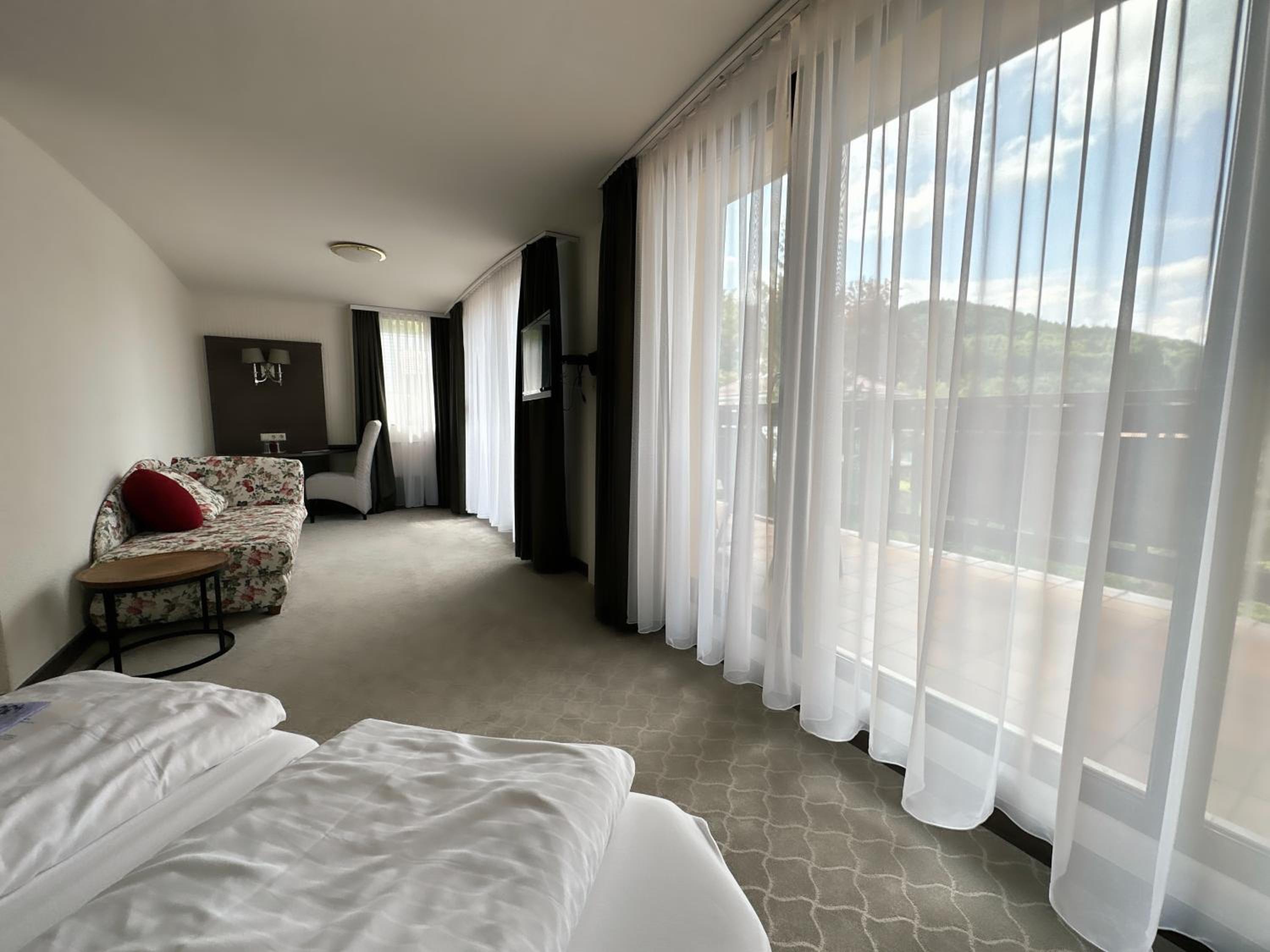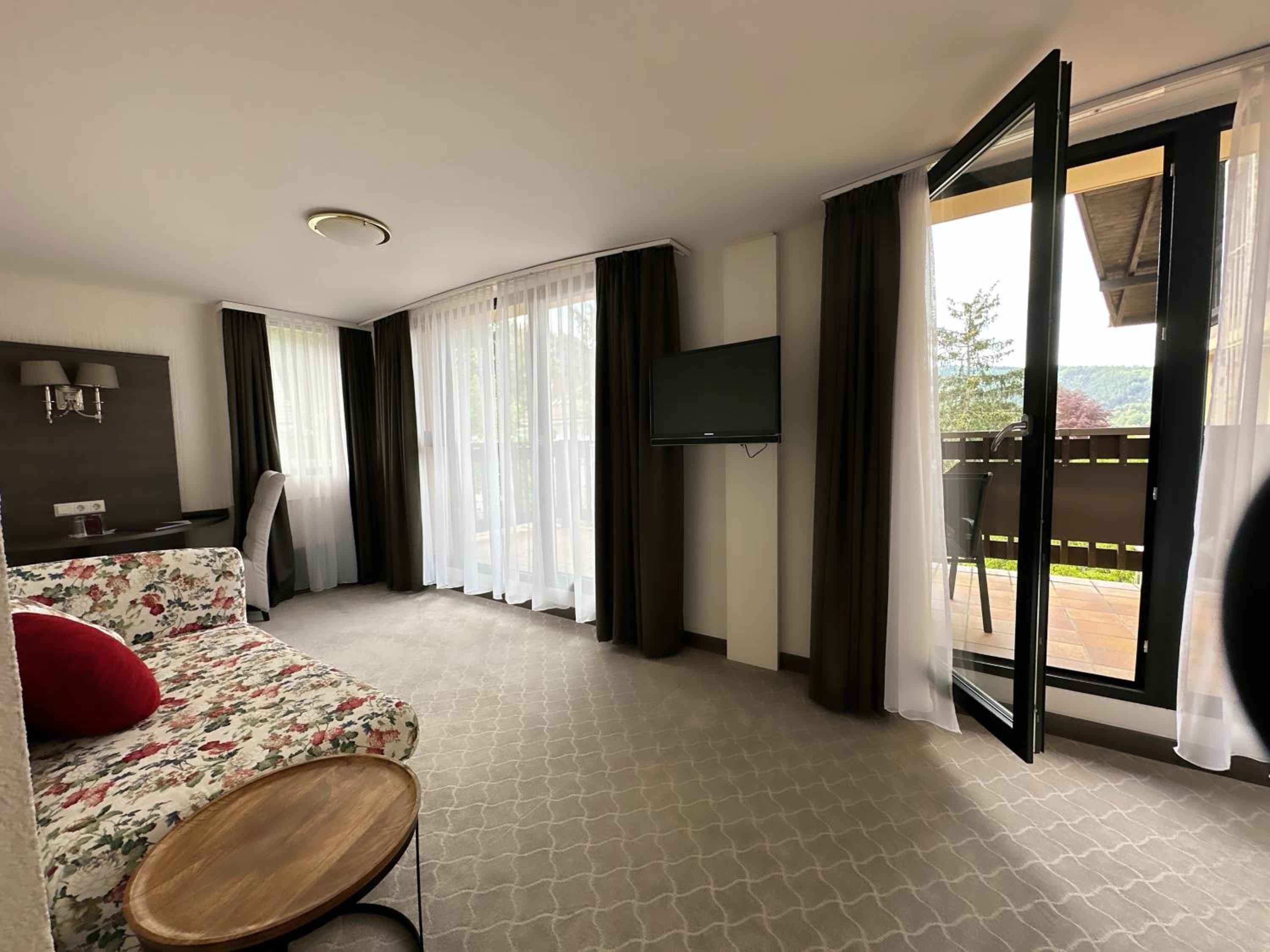 Experience the charm of spacious rooms with private balconies at Parkhotel Luise Bad Herrenalb.