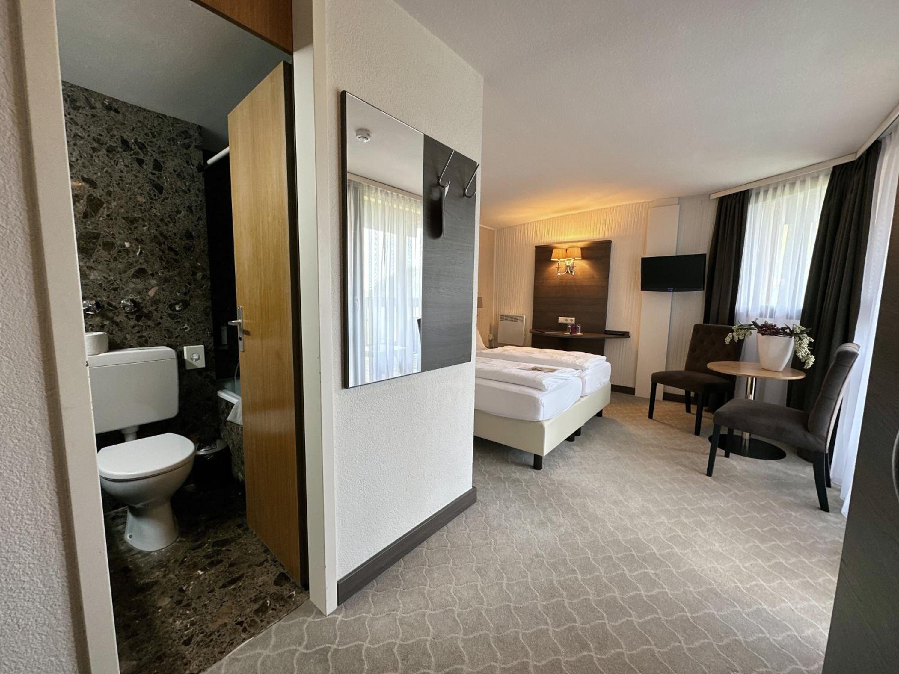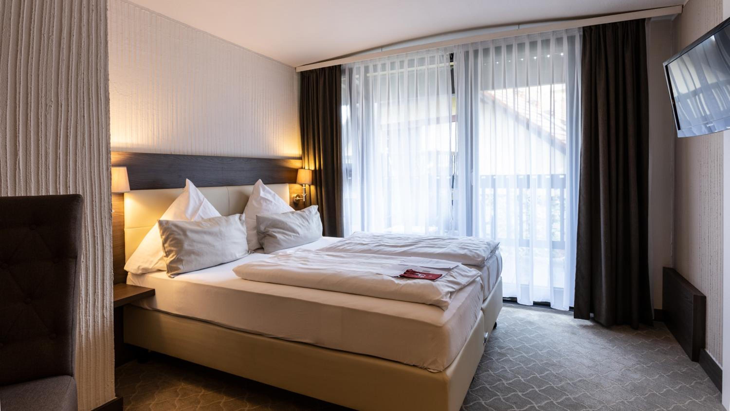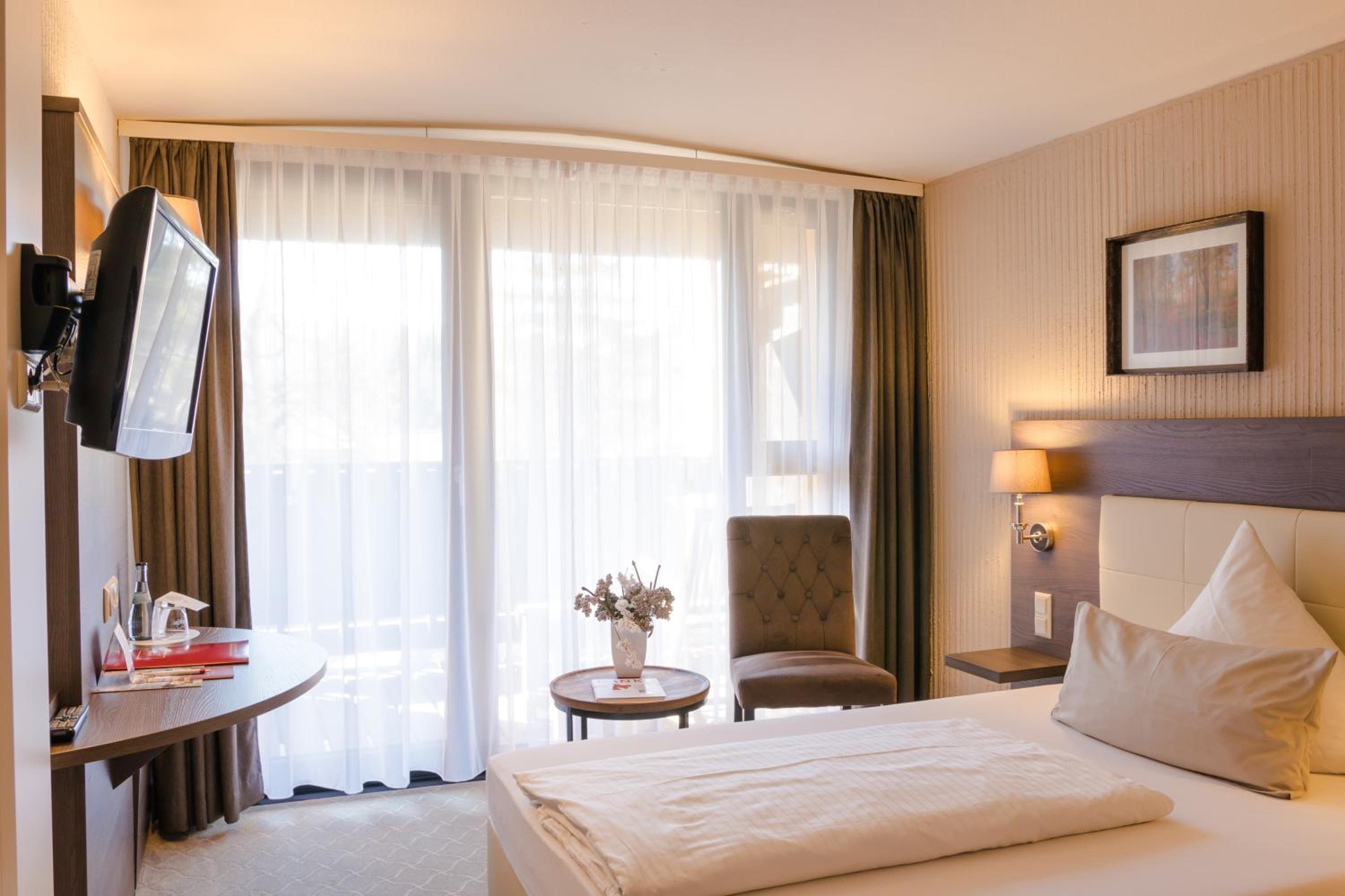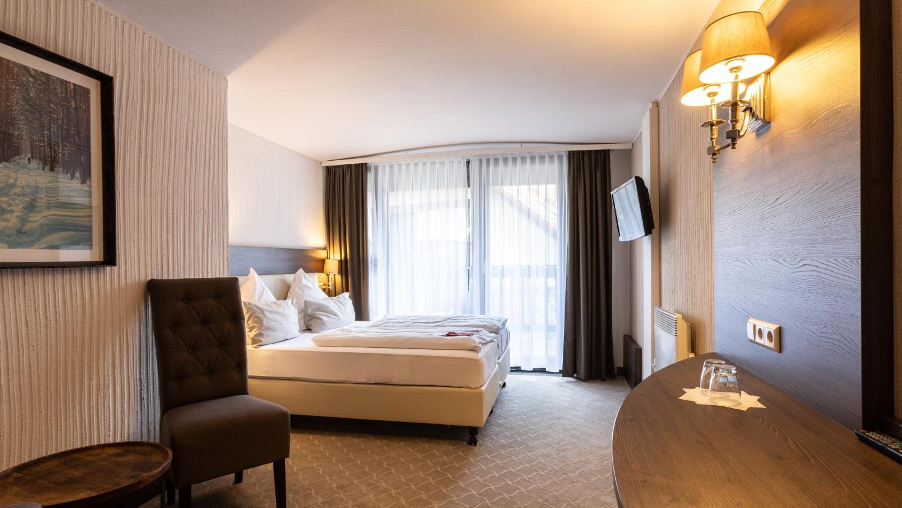 Experience the charm of spacious rooms with private balconies at Parkhotel Luise Bad Herrenalb.