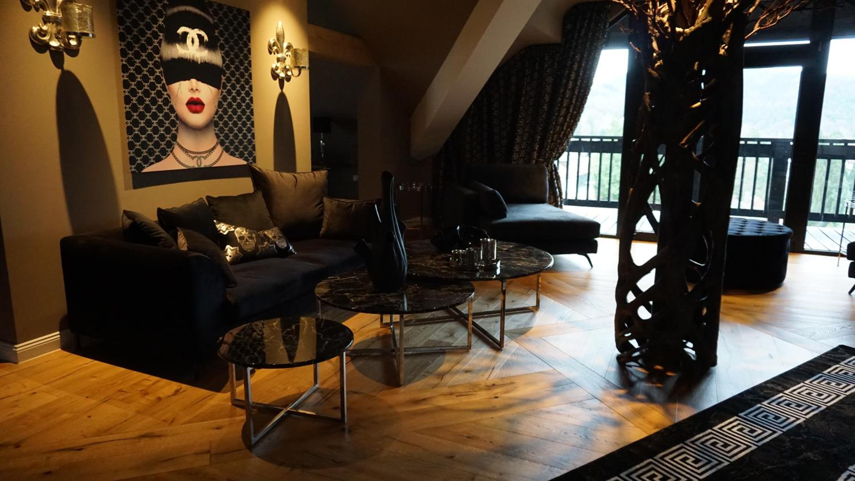 Le cadre et la déco de l'hôtel, notamment le hall