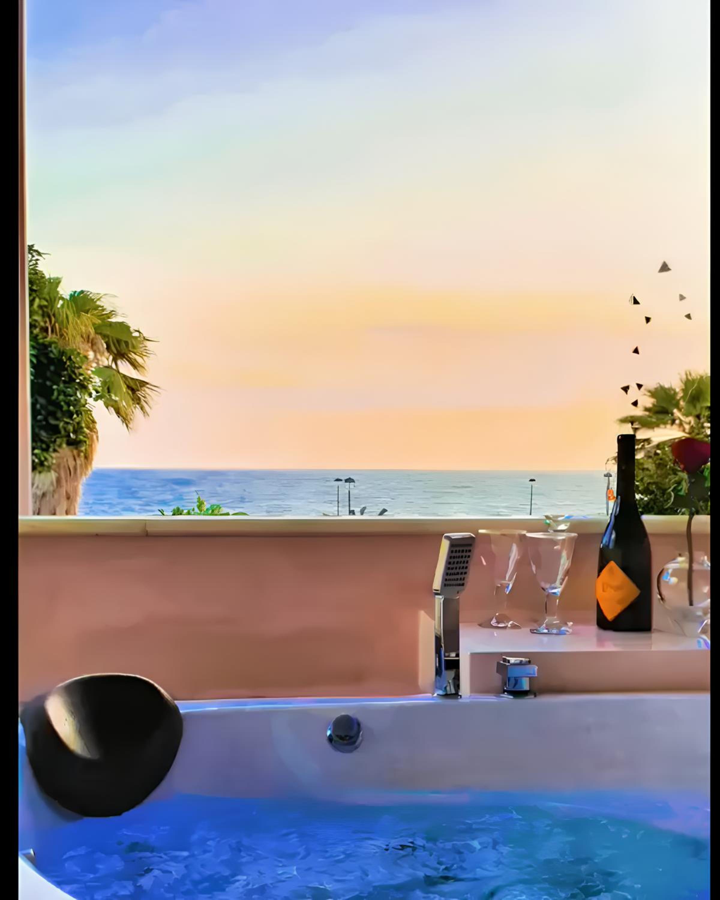 Indulge in relaxation at our recently renovated Queen Boutique Suites, offering an infinity pool and mesmerizing views of Preveza.