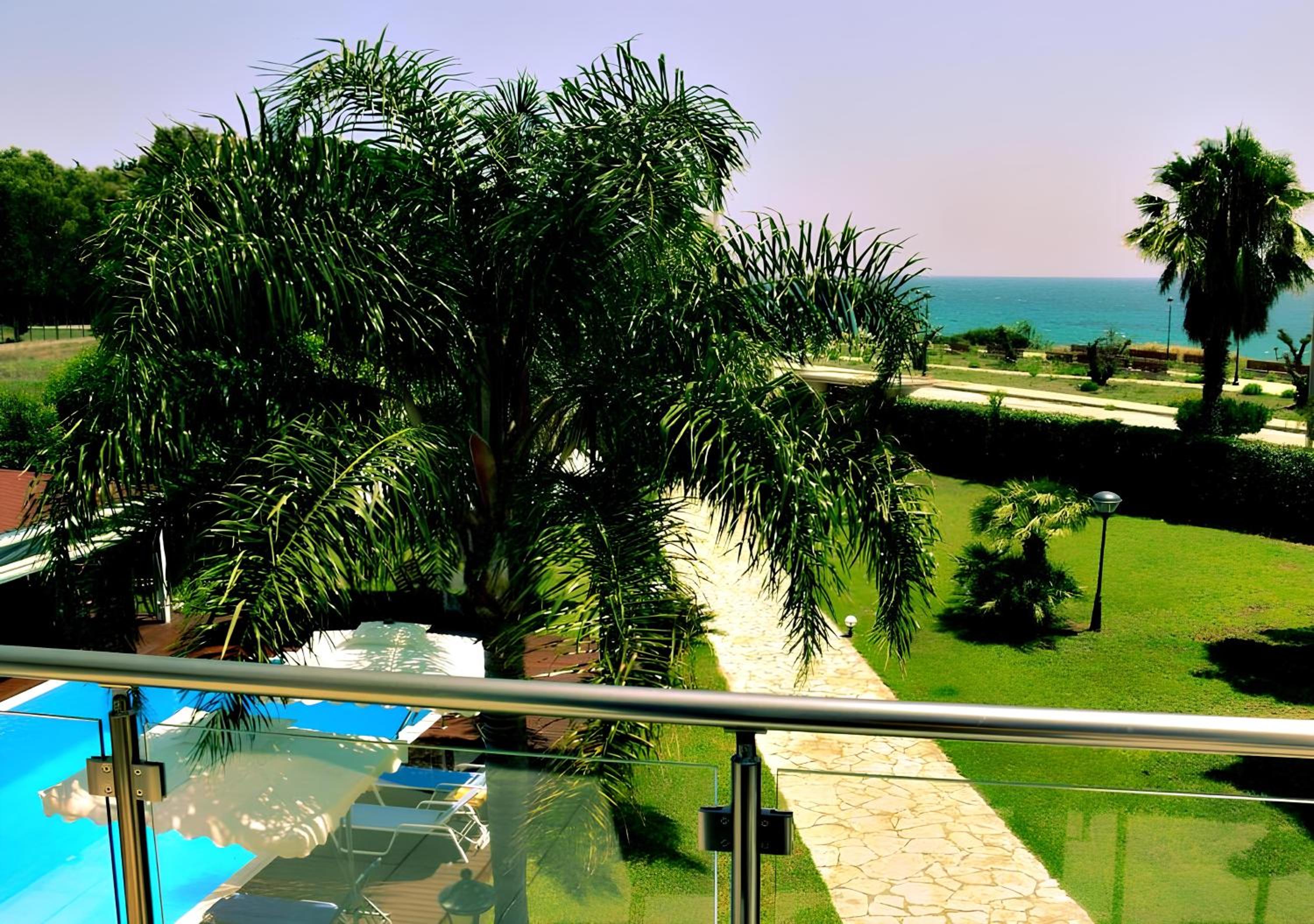 Clean, spacious apartment, excellent air conditioning, spa bath & separate powerful shower, daily maid service, lovely balcony with sea views. Beautiful swimming pool & plenty of sunloungers, umbrellas & undercover seating areas in a private garden.