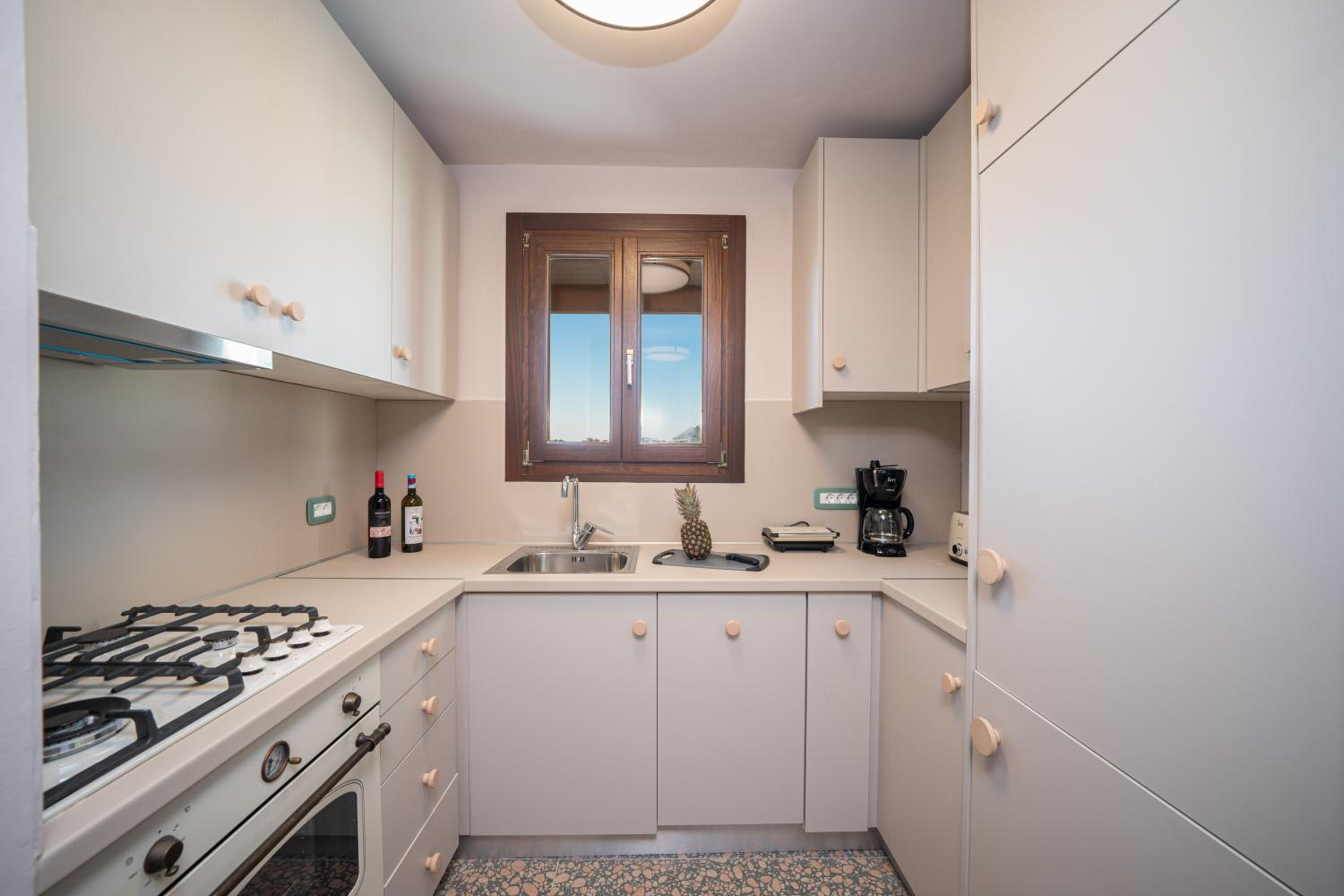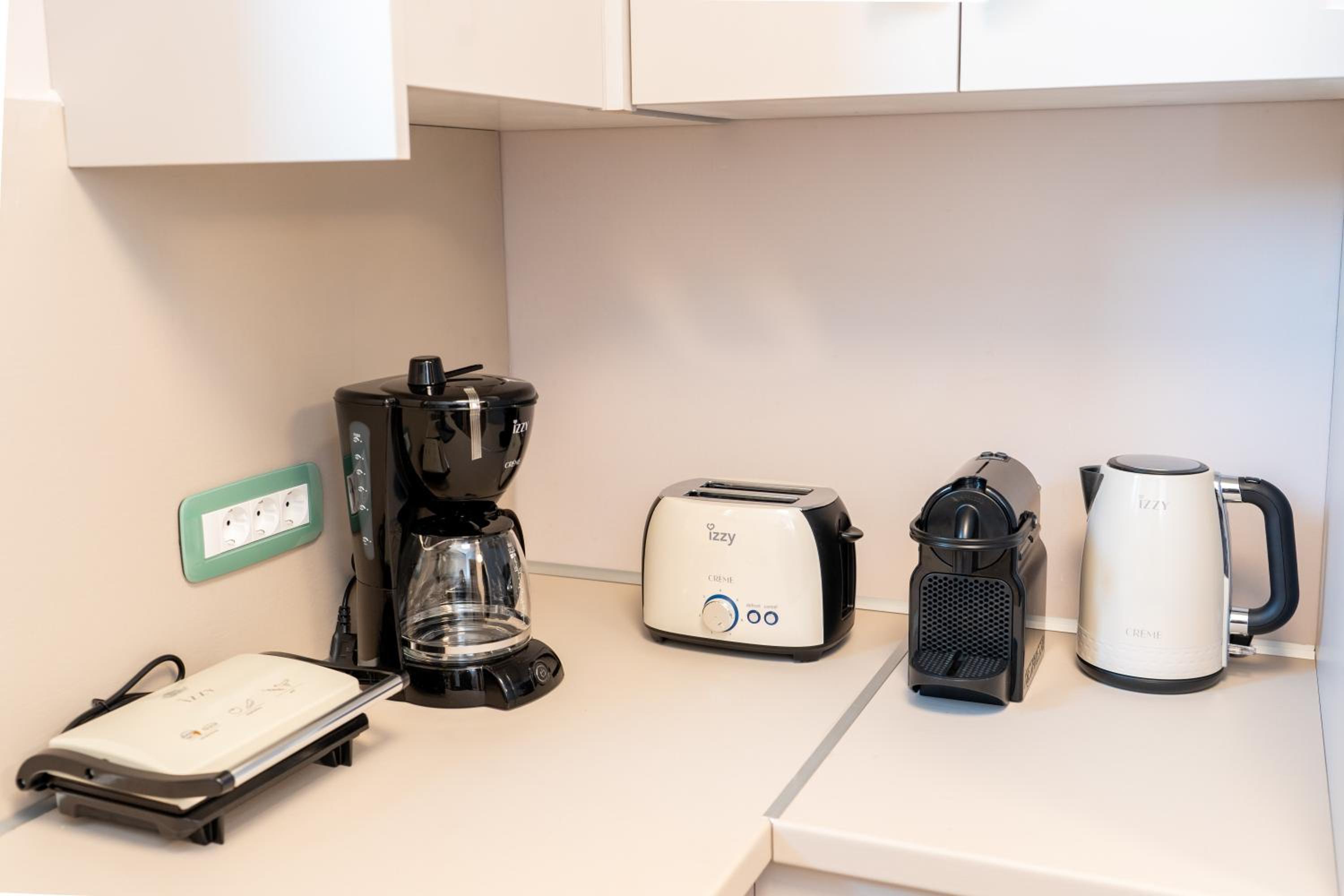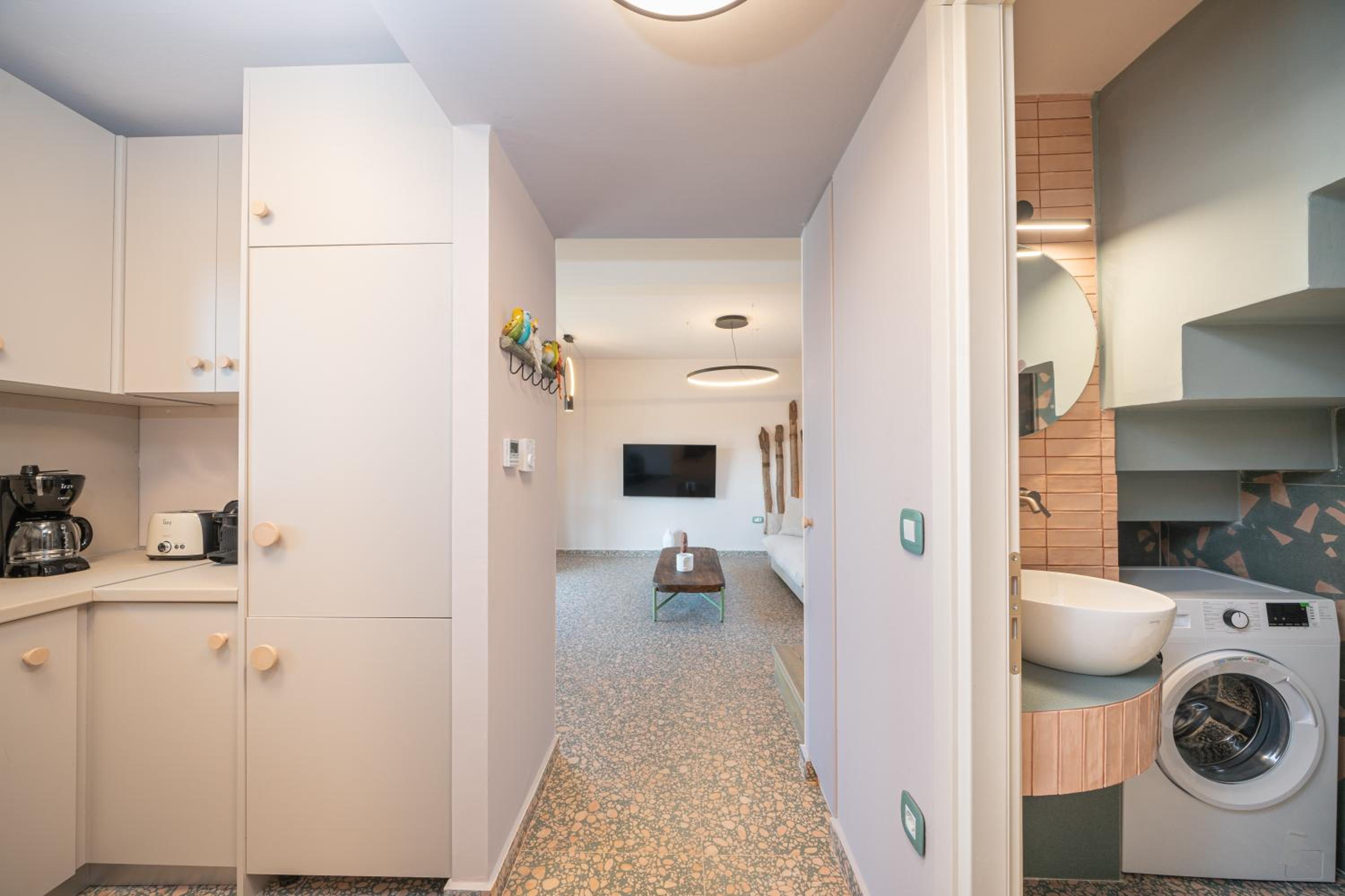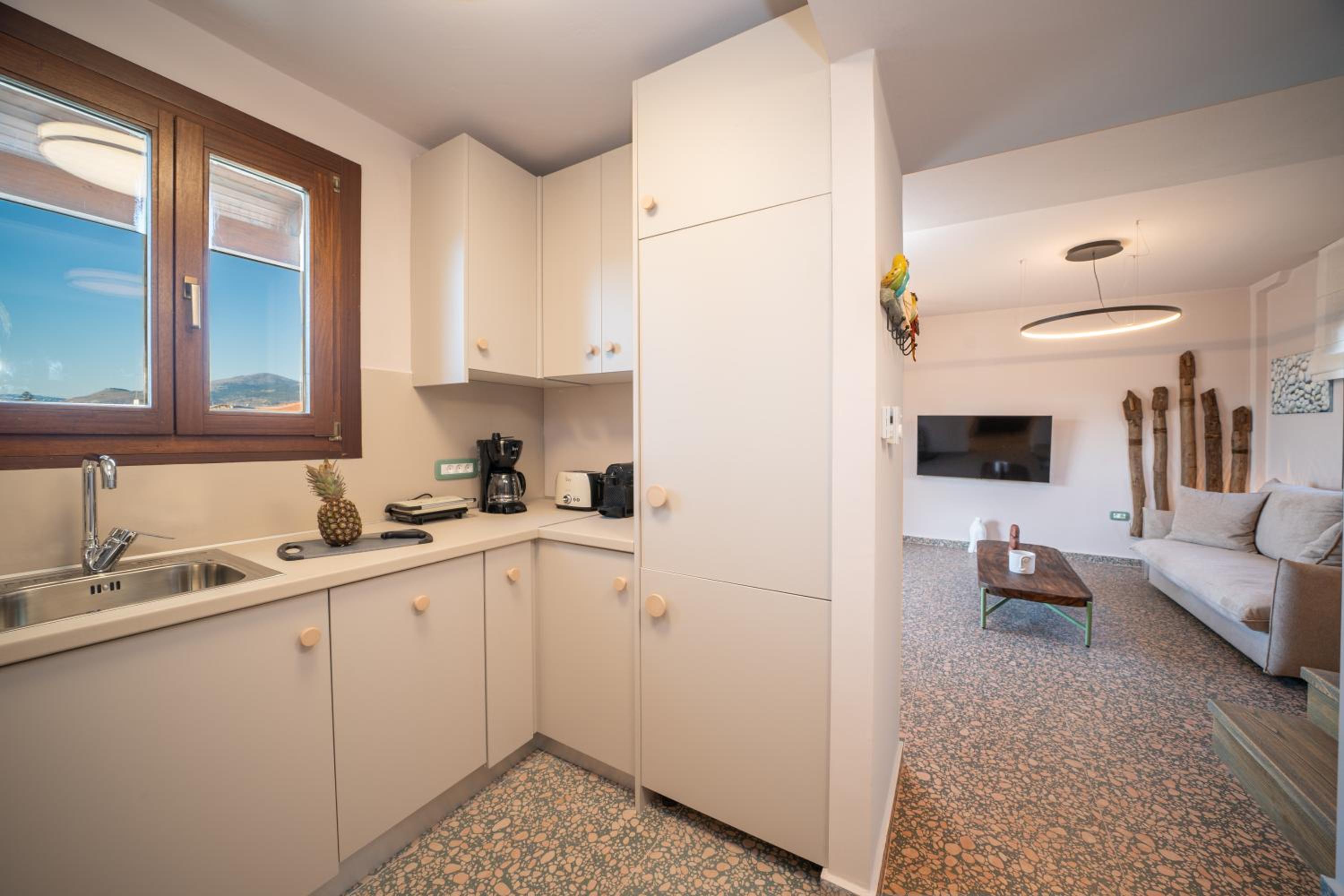 Tilava, huolella suunniteltu kokonaisuus. Keittiö on hyvin varusteltu. Huoneistossa oli mm. pesukone, pesuaineet, rannalle päivävarjo, perinteinen kahvinkeitin ja kapselikeitin, voileipägrilli ja leivänpaahdin, tiskikone ym. Kaksi suihkua ja vessaa. Poreamme oli puhdas ja toimiva. Kaksi parveketta tuli tarpeeseen kun lokakuussa oli myös sateita, jolloin pystyimme viettämään aikaa katetulla alaparvekkeella. Huoneisto tuoksui puhtaalta ja rakennus oli siisti. Alakerrassa hyvä pizzeria. Emme tavanneet henkilökuntaa, mutta saimme tarvittavan infon whatsappilla. Lokakuussa pysäköintikin oli helppoa.