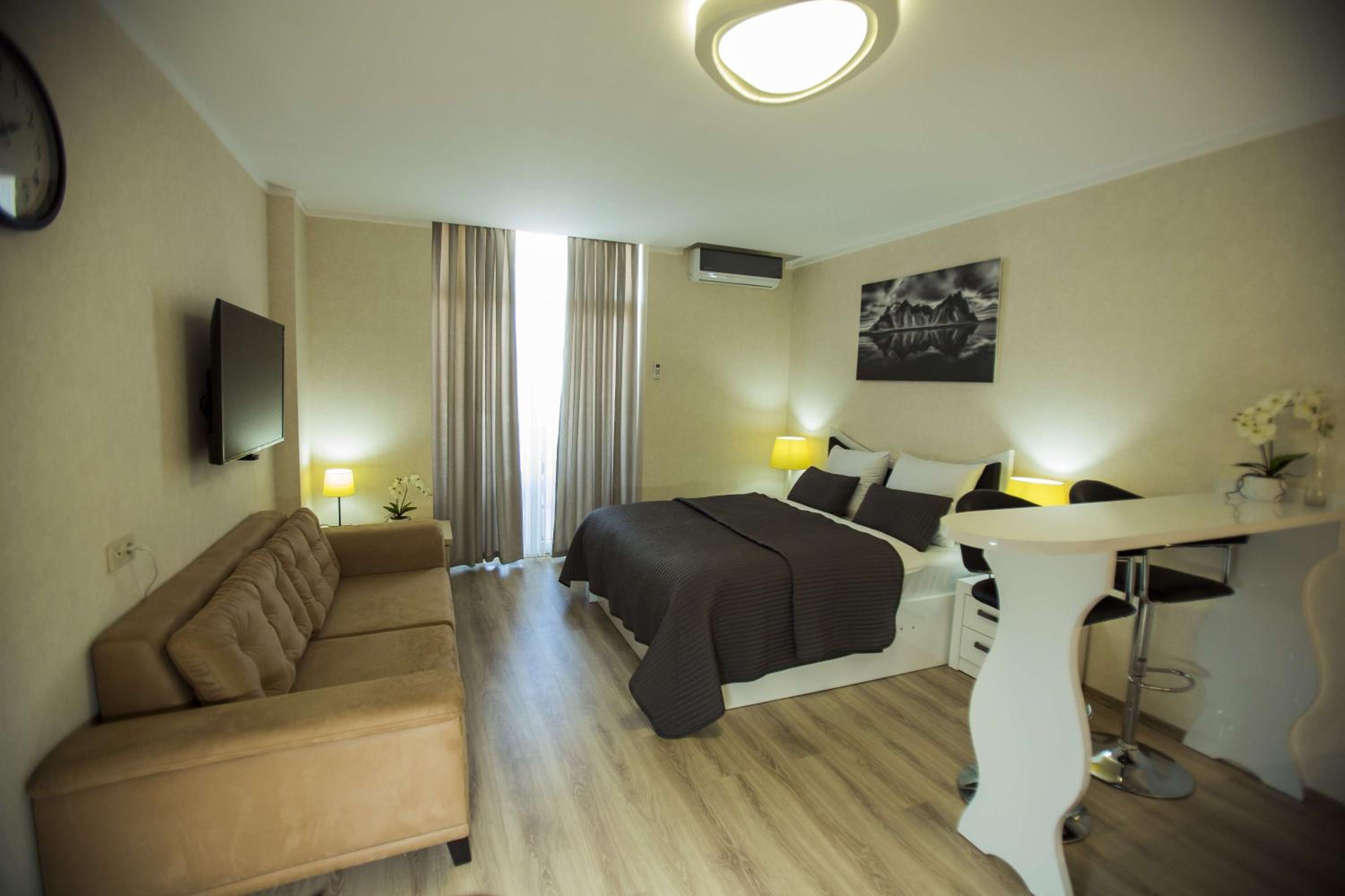 Experience a luxurious stay at Aparthotel Holiday Lux Batumi, where comfort meets elegance. Each unit is equipped with modern amenities such as air conditioning, flat-screen TV, and free WiFi. Some rooms even offer stunning mountain views and a private balcony for a truly indulgent experience.