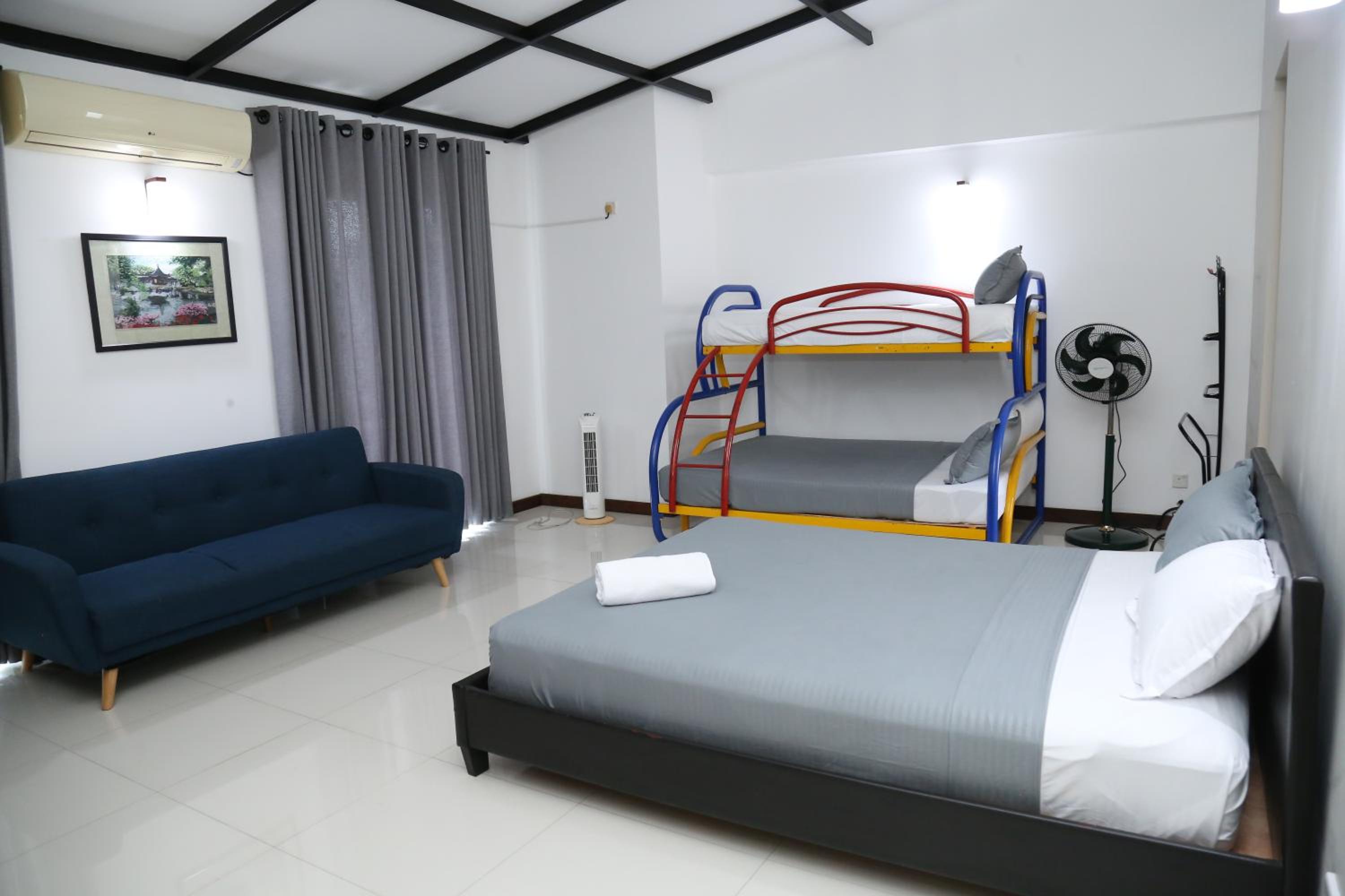 The ceiling fan was not working but there was AC and the host immediately provided us with another fan. We thought the kitchen was fully available to us but it is not exactly like that, although we were allowed to use the gas. The room was located on the ground floor, thus was very humid.