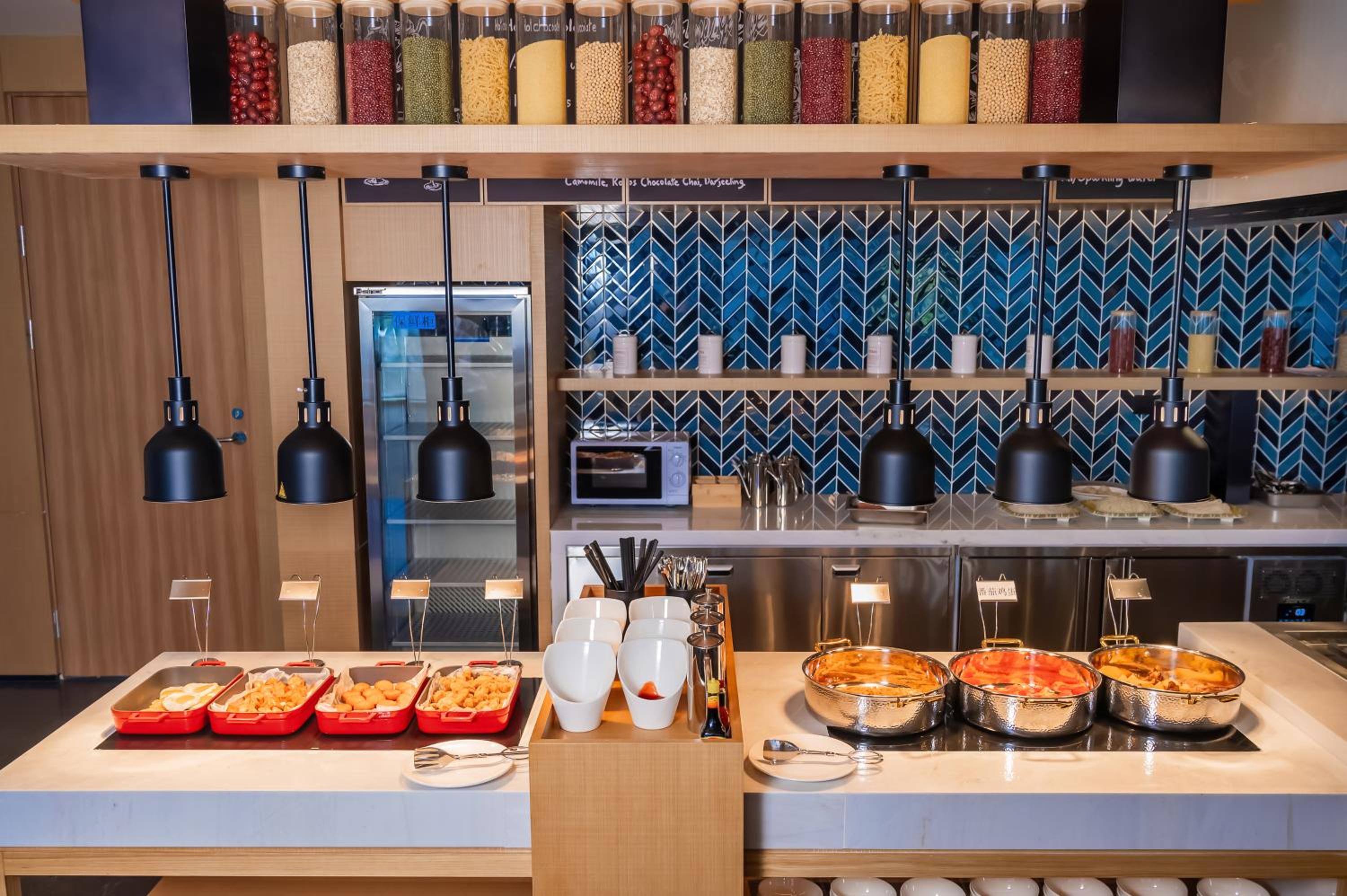 Завтрак в отеле выше всяких похвал. Есть европейская еда (яйца, наггетсы, фри, свежие овощи, йогурты, выпечка). И очень много местных блюд, за три дня были небольшие изменения в меню. Очень вкусно готовят китайские блюда, и есть возможность перепробовать всё, за что жалко платить в кафешках, так как не знаешь вкусно ли. Каждое утро варят супы с лапшой, пальцем показываешь и готовят. Все всё понимают. Две кофемашины, одна с молоком, другая без.