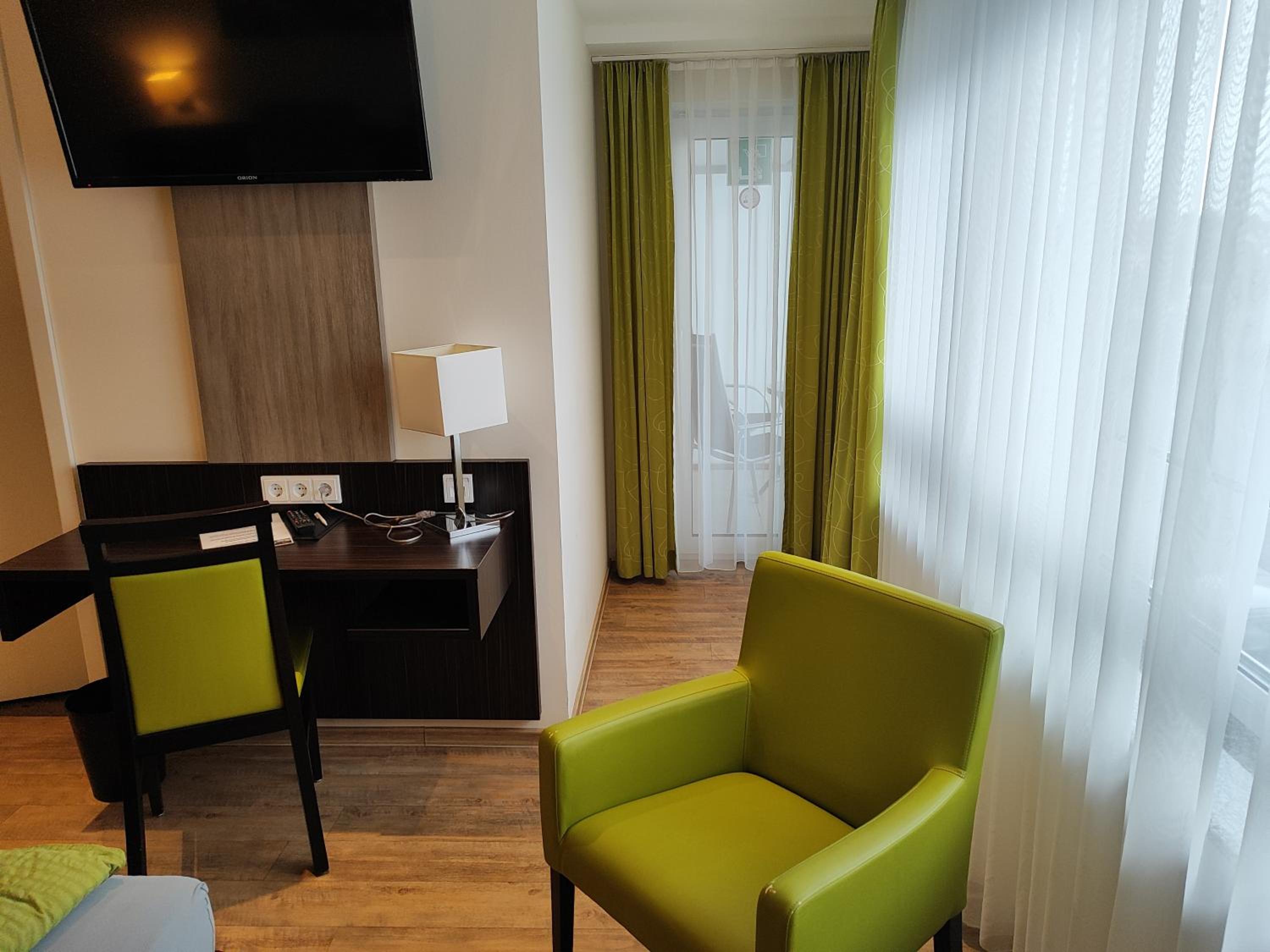 Leider ist das Zimmer ohne Kühlschrank. Dies ist im Sommer wirklich nicht schön. Und wie fast überall fehlen Ablageflächen und Handtuchhaken im Bad. Der kleine Balkon liegt zur Straßenseite mit Verkehrslärm aber wenn man tagsüber unterwegs ist, ist es nicht so schlimm.