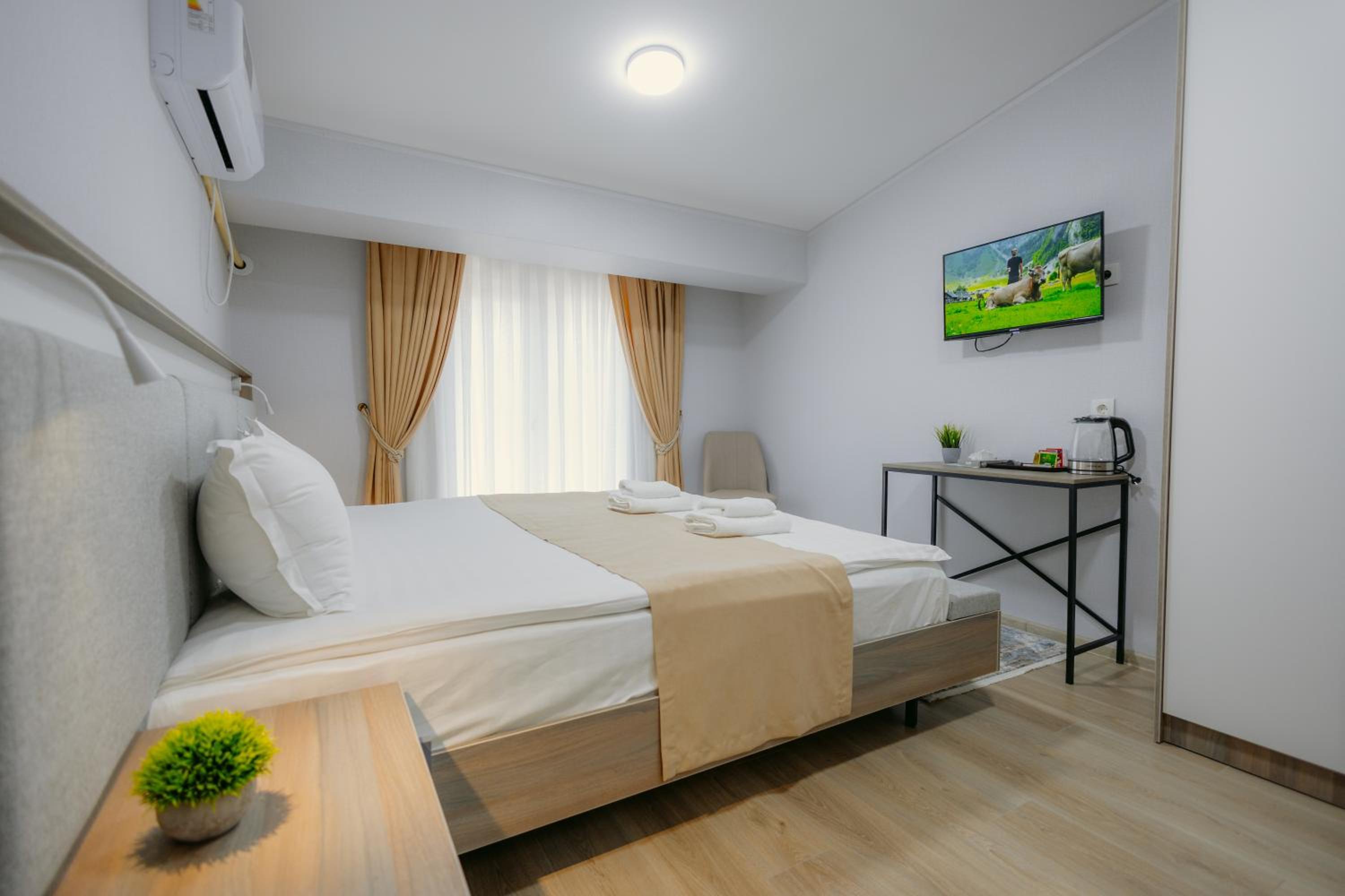 Indulge in comfort with stylish rooms featuring modern amenities like a flat-screen TV and air conditioning.