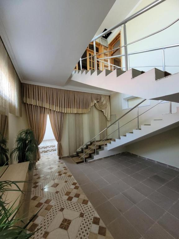 Отель находится на въезде в город, в тихом спокойном месте. Менеджер был всегда на связи, подсказал где можно вечером попробовать местную Шекинскую халву. Хозяин ателье утром сам отвёз на вокзал, хорошо говорит по русски. Спасибо за гостеприимный приём.