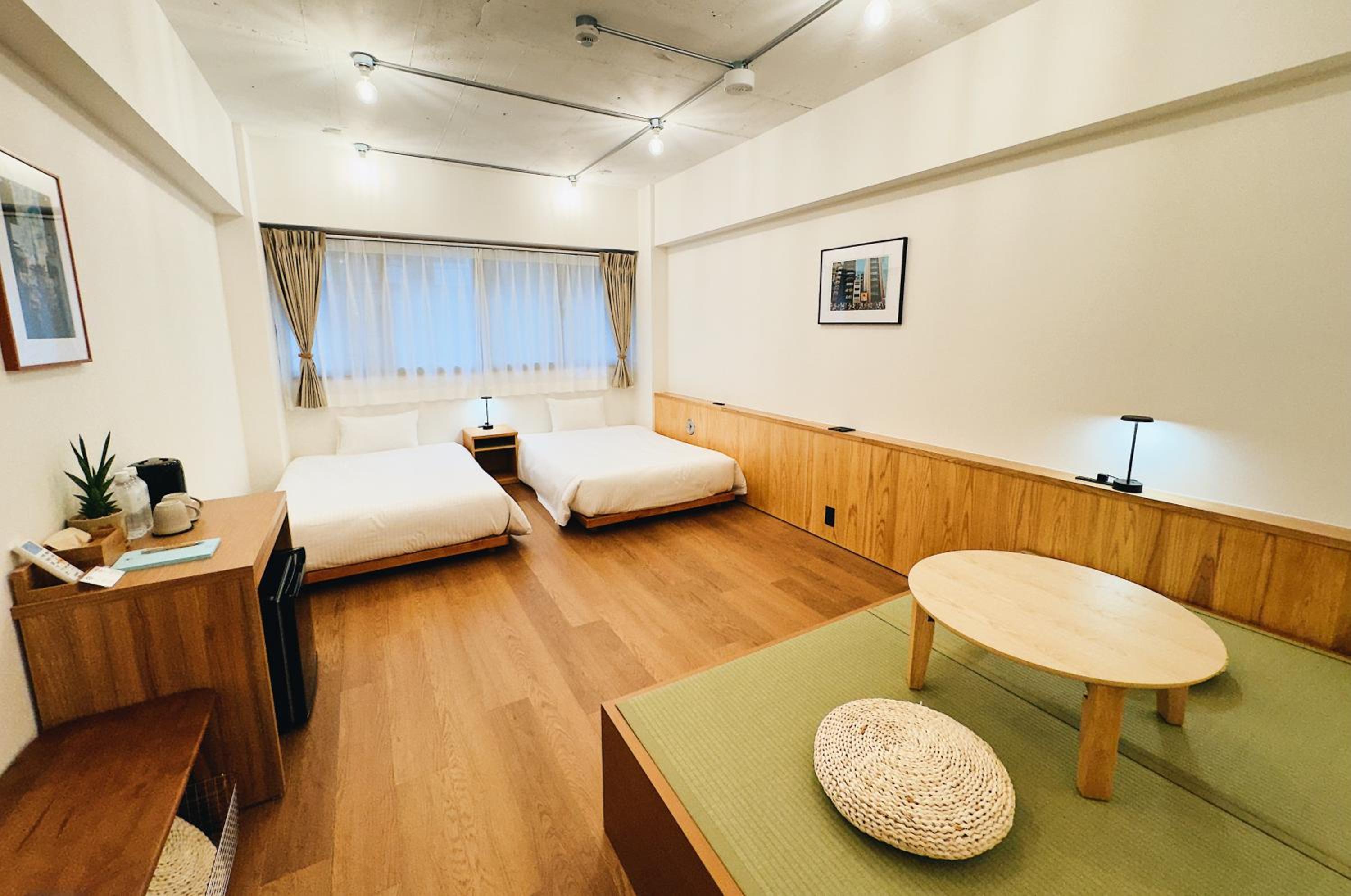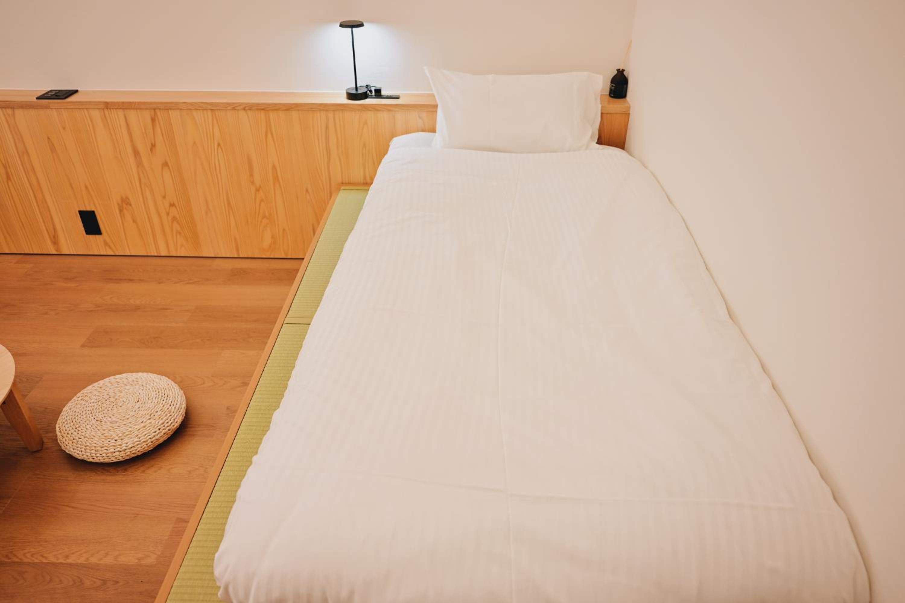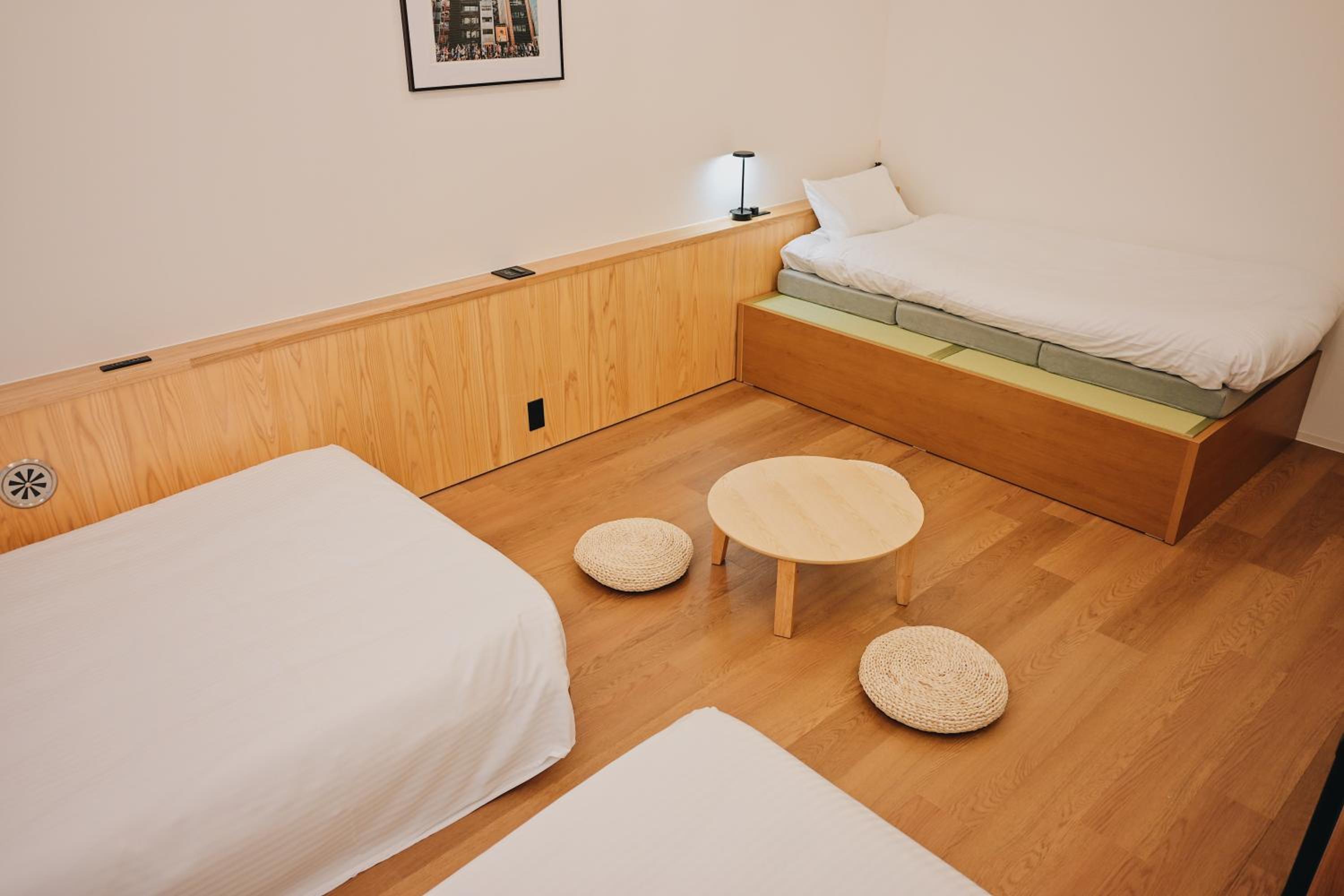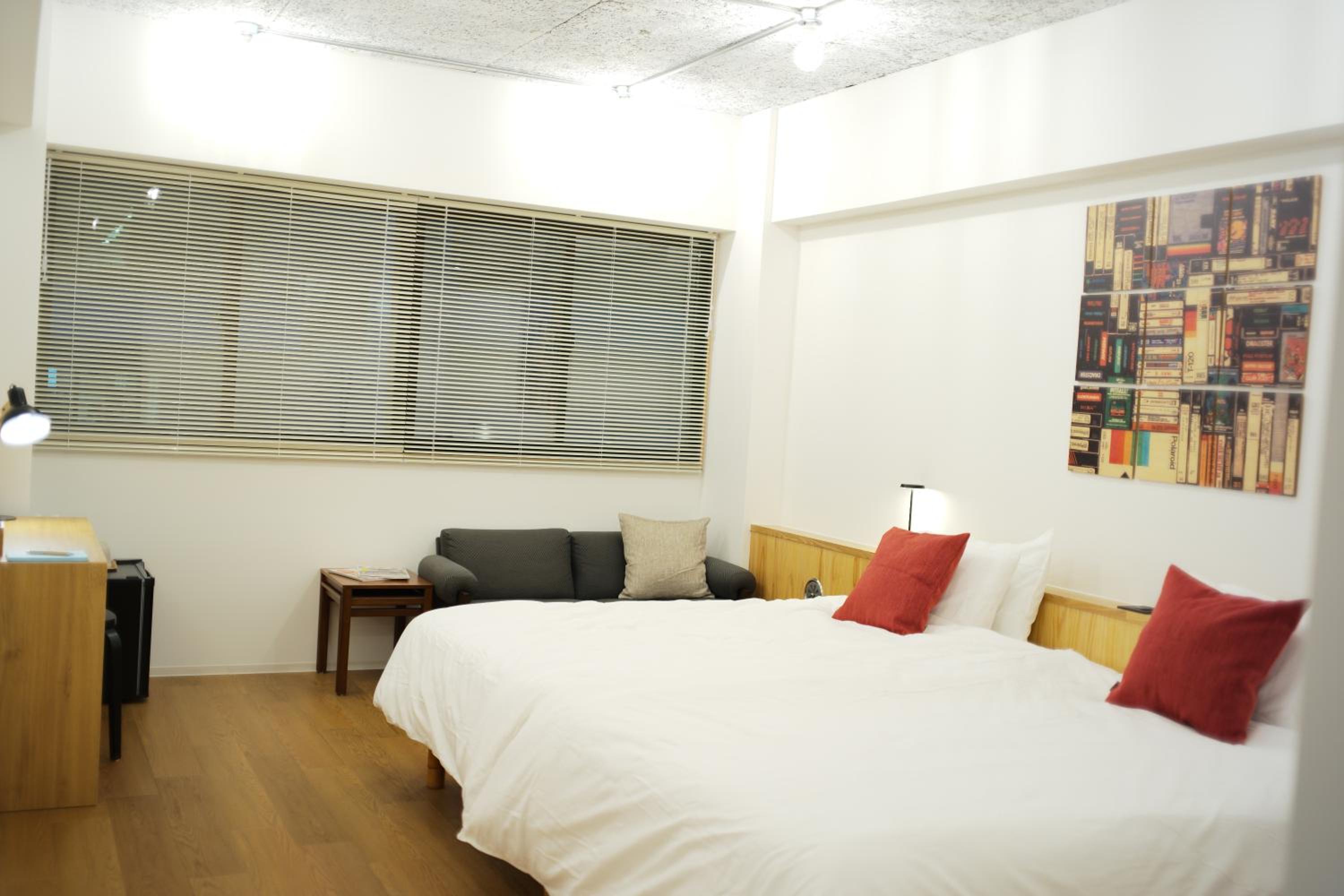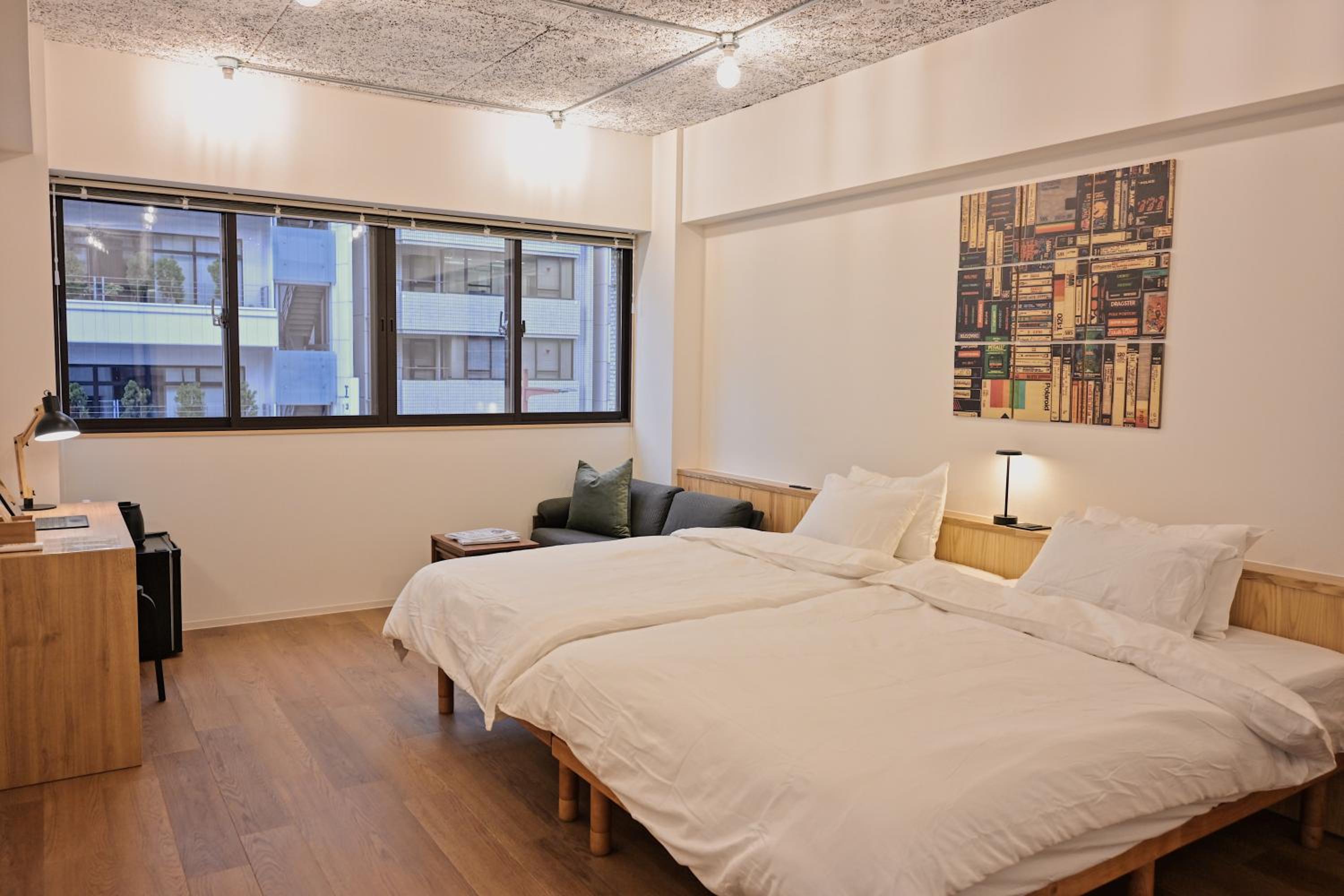Les lits simples sont énormes. La chambre est tres grande. La vue est sympa. L emplacement est super. Il y a des snacks, des boissons chaudes et froides et des soupe miso en libre service.