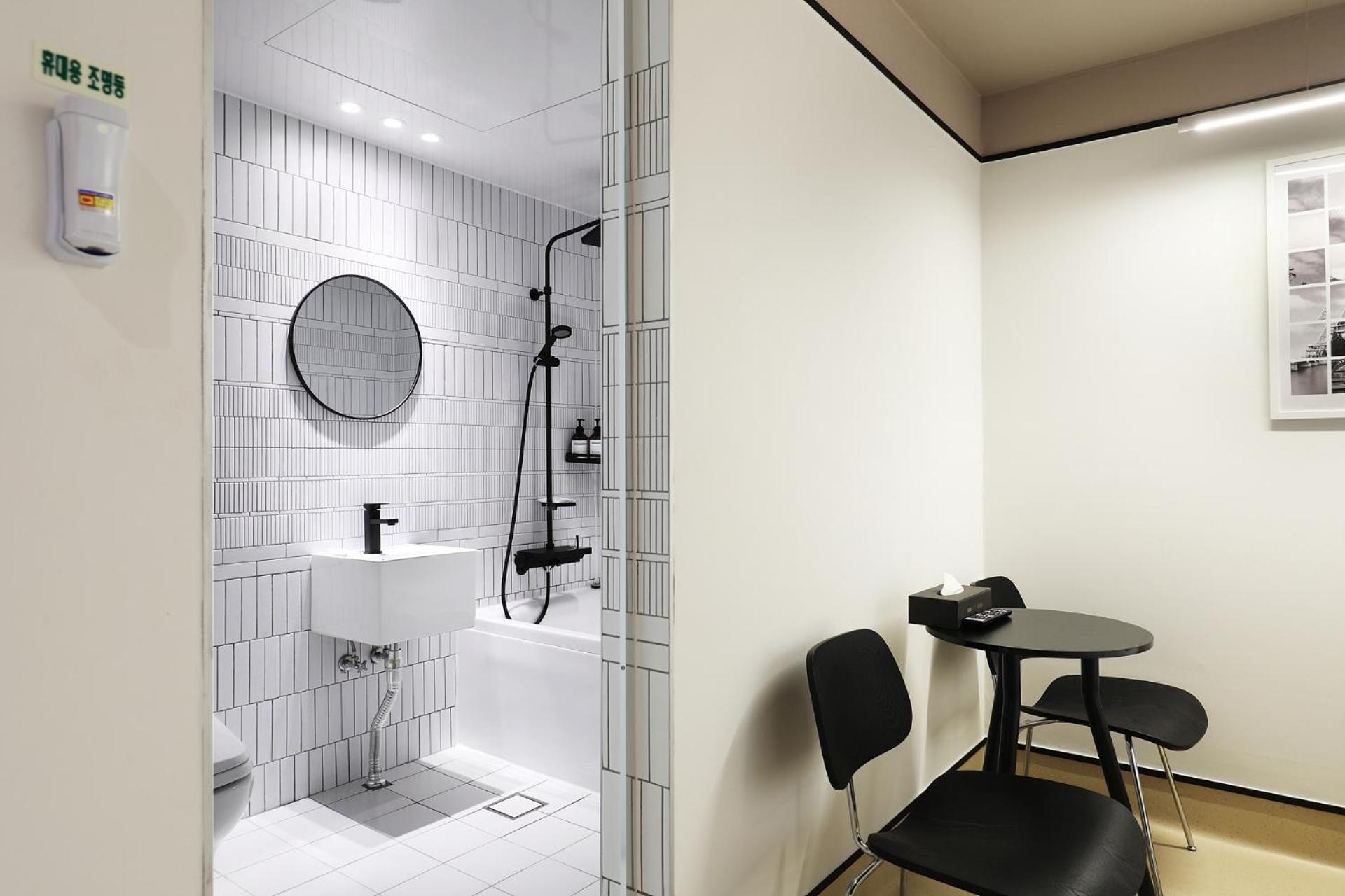 실내가 전체적으로 깔끔하고 분위기가 좋았습니다. 또한 커피, 추가적인 물 등이 제공되어서 참 좋았습니다. 바로 옆에 편의점도 있고요. 아쉬운 점은 화장실 불을키면 환풍기가 작동하면서 담배냄새가 들어오는 것 같아 아쉬웠습니다! 하지만 전반적으로 너무 만족스러웠습니다.