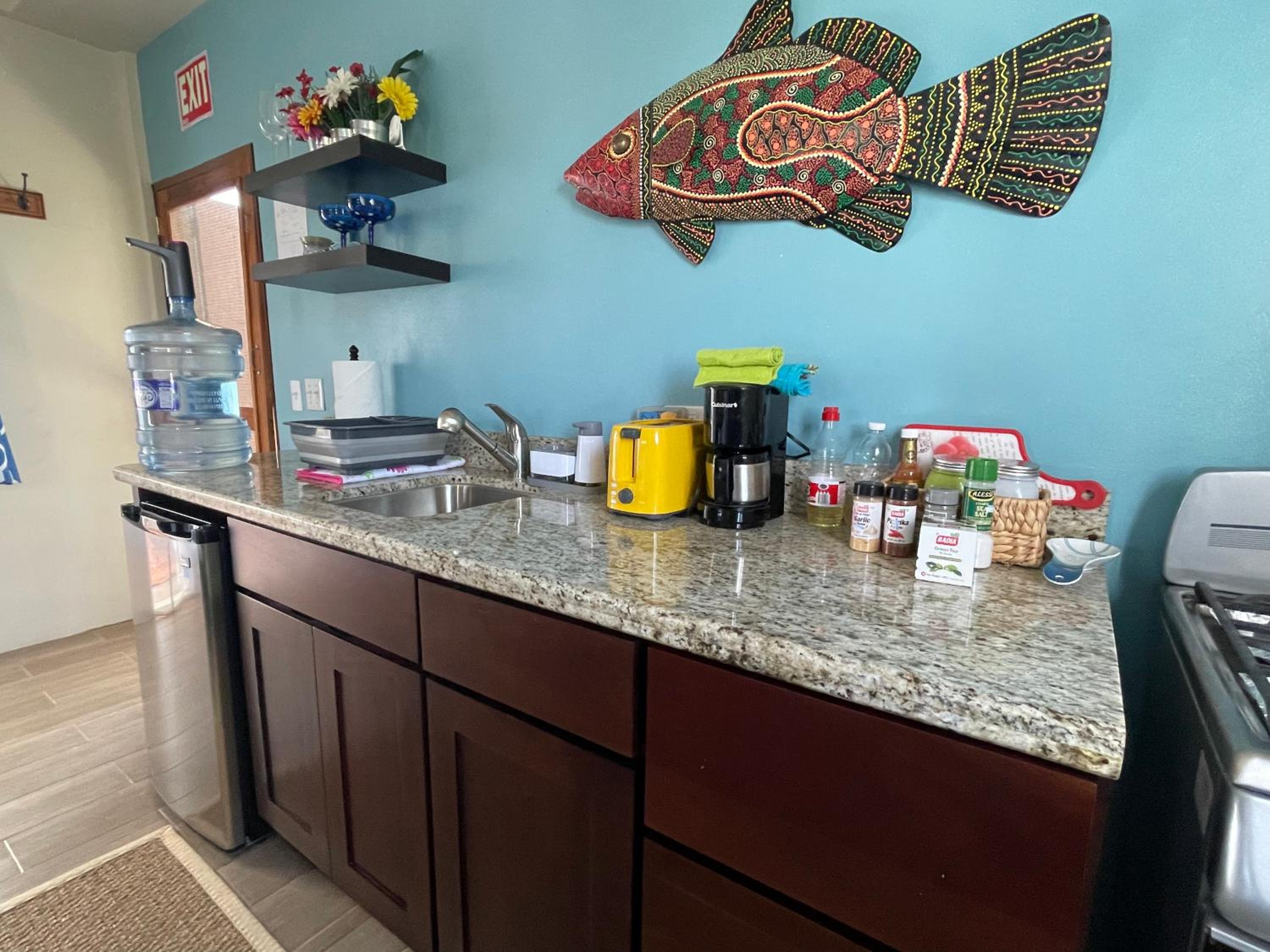 Koleen (host) was amazing! So kind and helpful, definitely gave us lots of help figuring out replacement dives after a cancellation and fun stuff along with food recommendations! Koleen was super responsive to any small hiccups or requests, and provided a fully stocked kitchen for us to cook as much as we wanted. The AC and fans cooled the room quickly after arrival so easy to turn off while away! Shower was large and water temp was great ◡̈