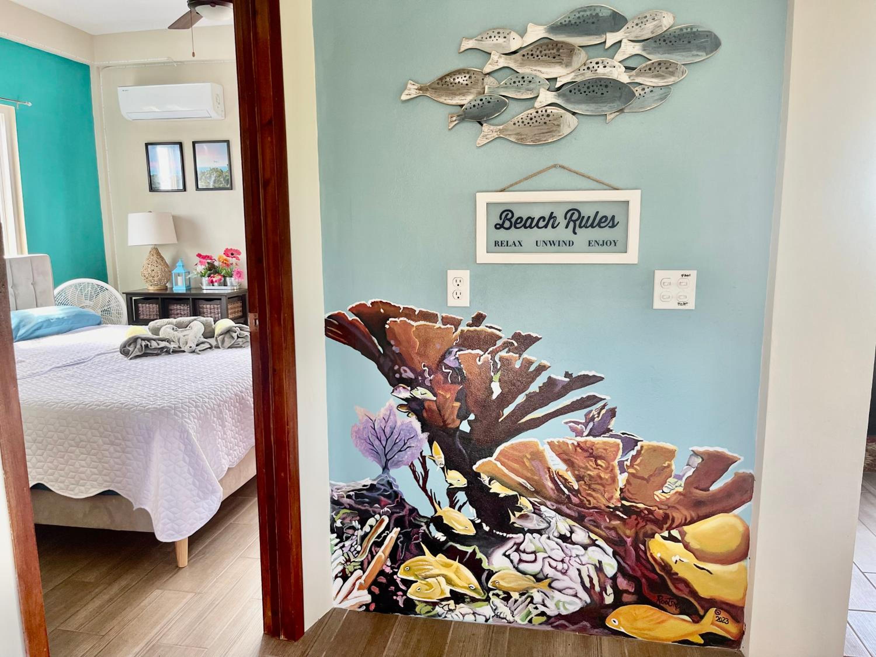 Bikes were easy to use and reliable which make getting around easy ◡̈ If it wasn’t for the sargassum this time of year we would have used the lovely and plentiful common spaces more often! Bed was comfortable and loved the digital codes instead of physical keys.