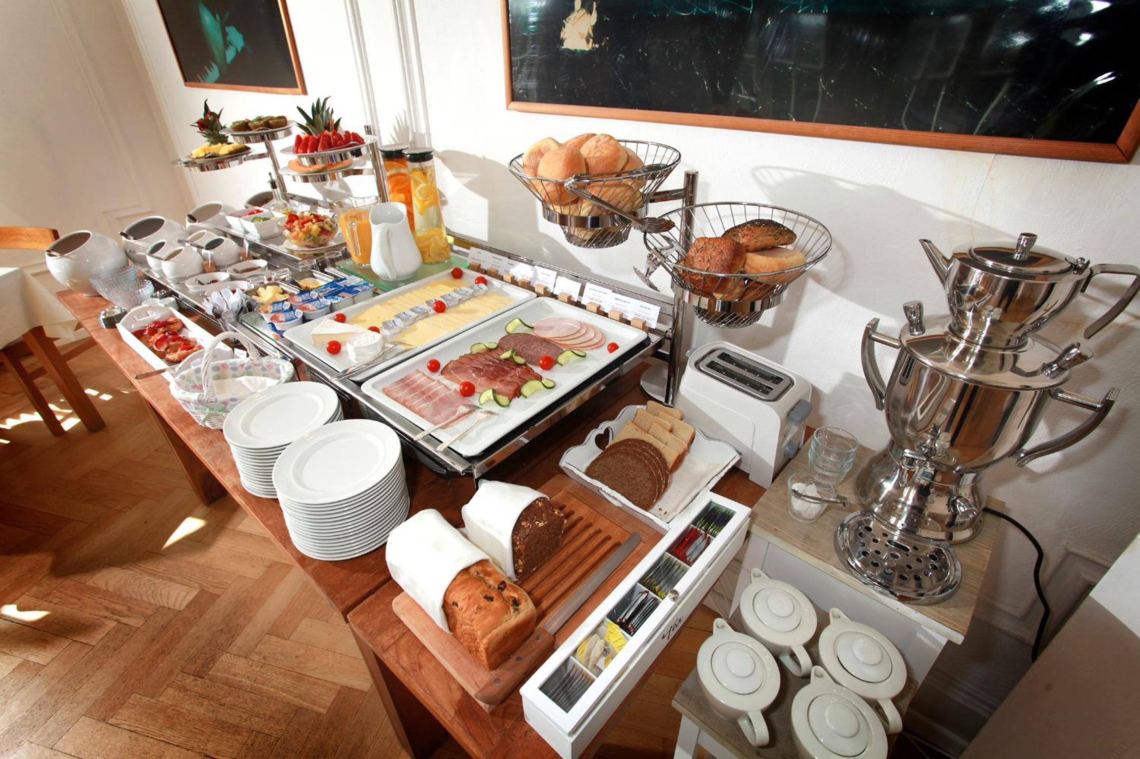 Sehr gemütlicher Frühstücksraum mit liebevoll angerichteten Essen.
