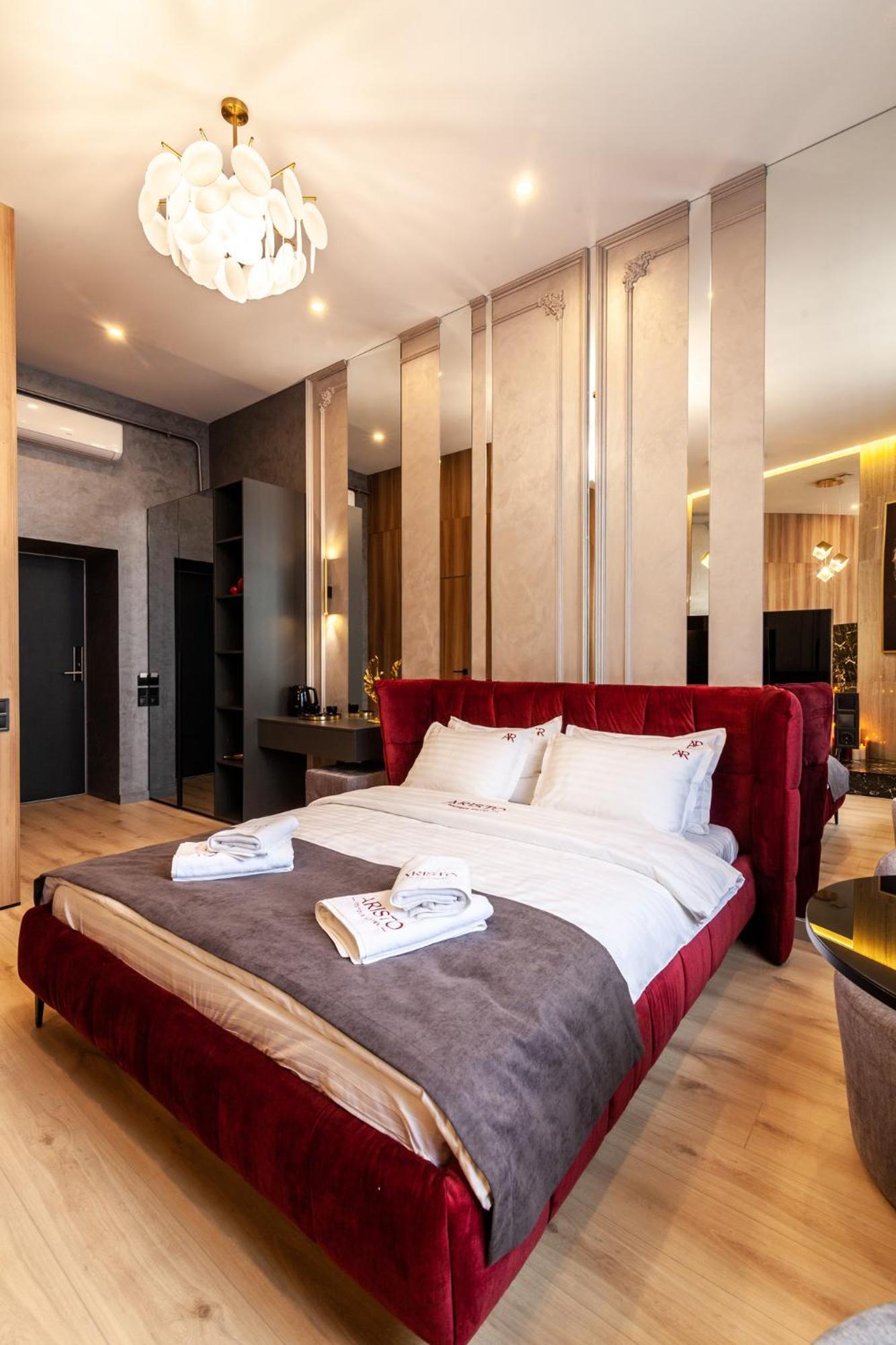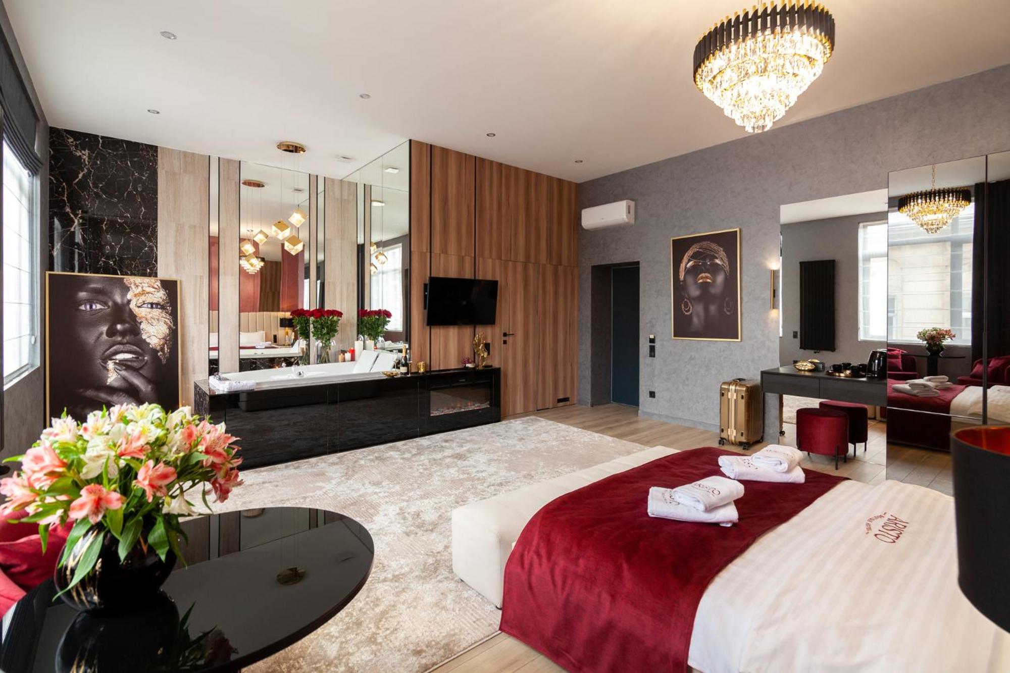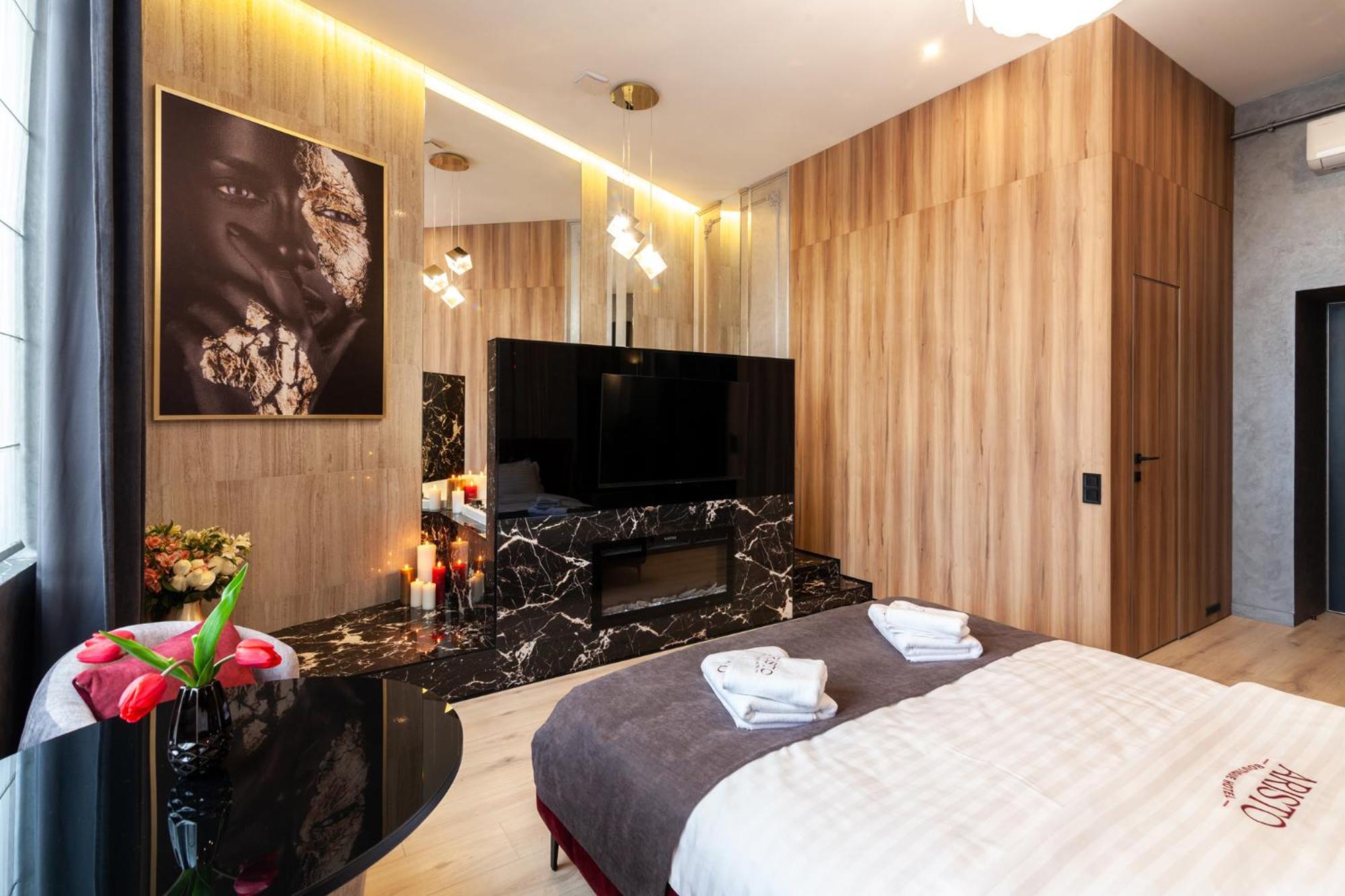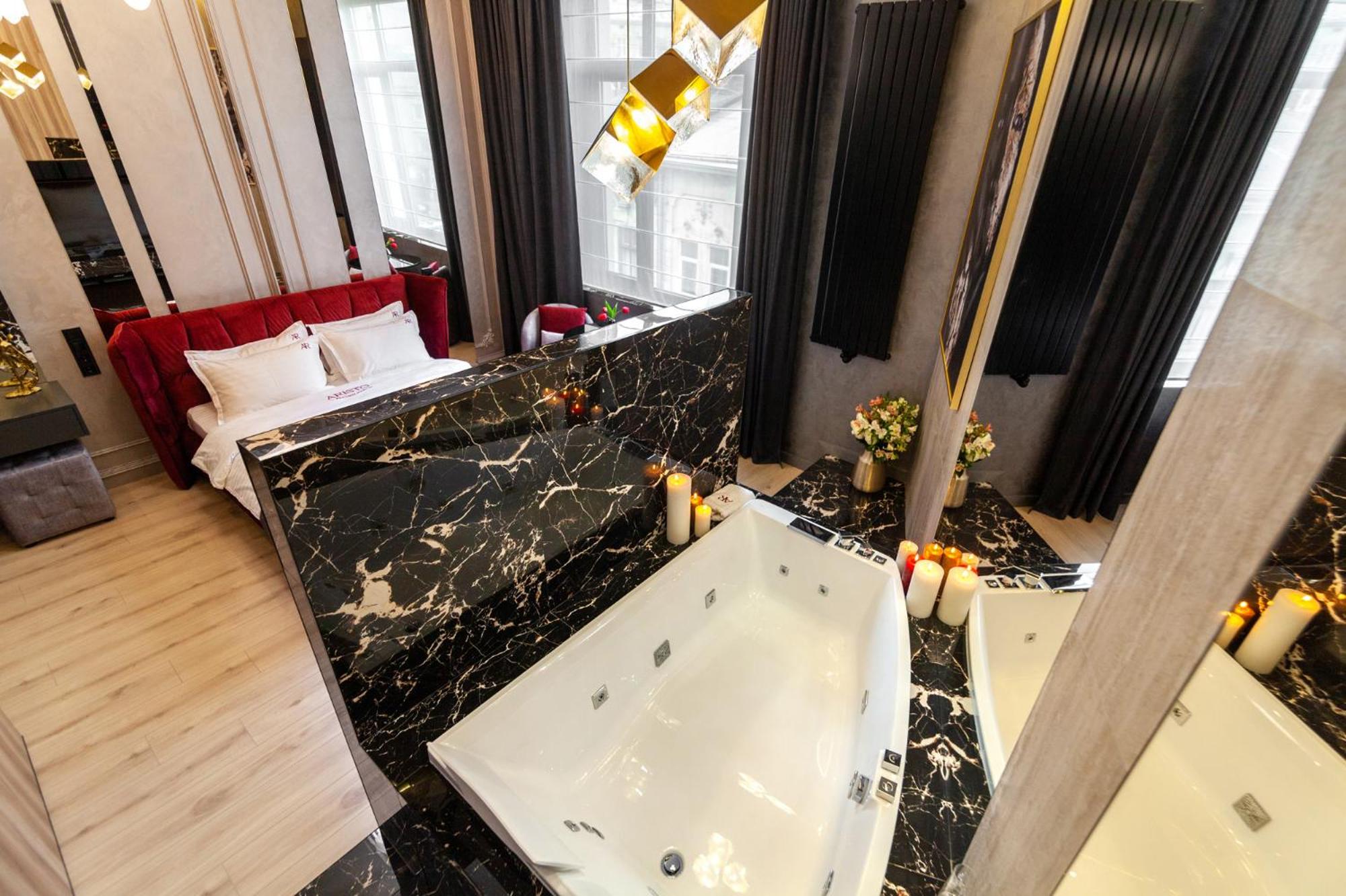 ARISTO Jacuzzi Hotel in Lviv offers air-conditioned rooms with modern amenities like flat-screen TVs and safety deposit boxes. Some rooms even feature kitchenettes for added convenience.