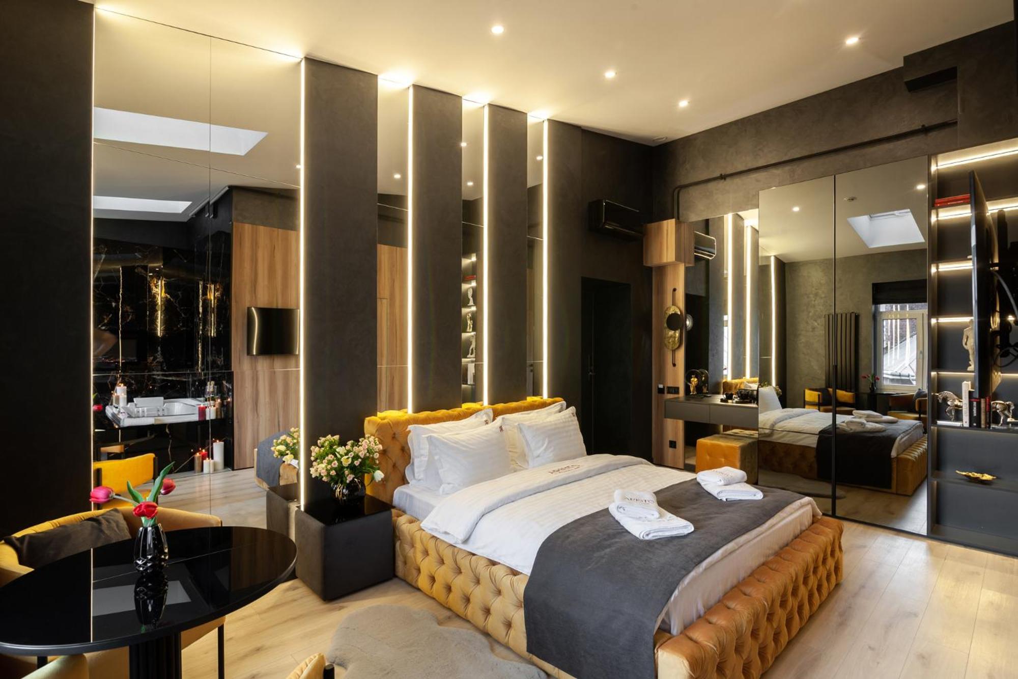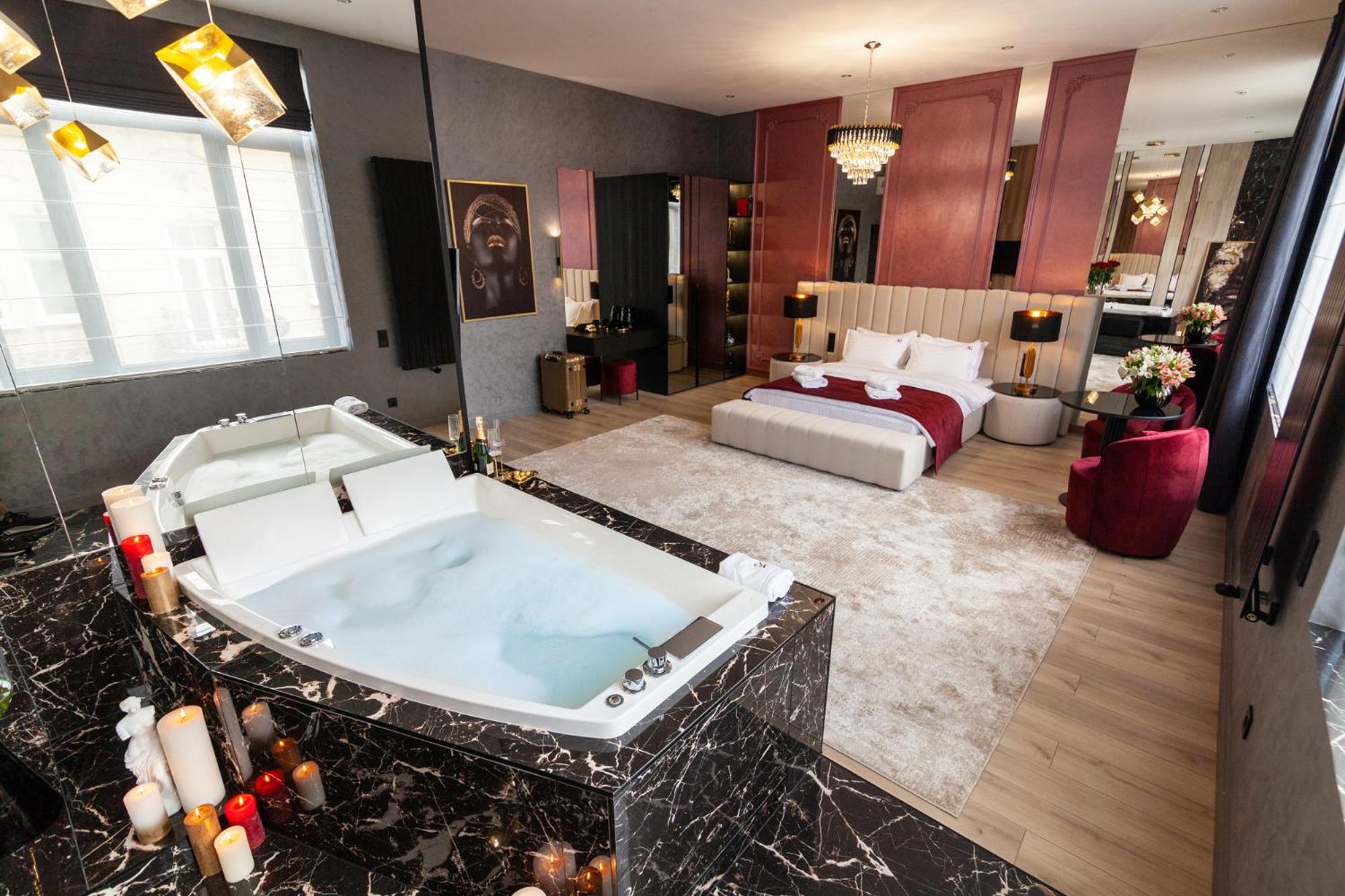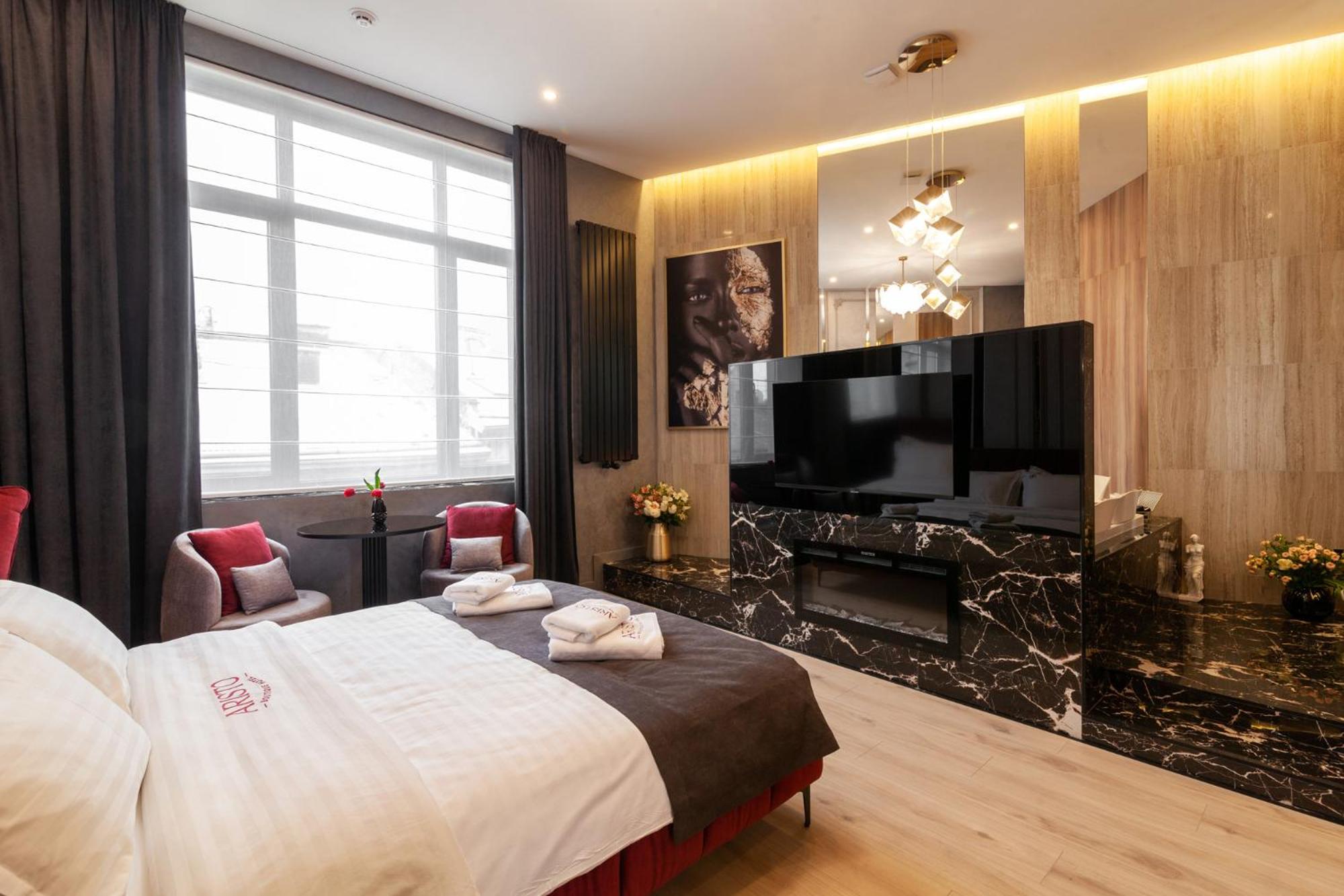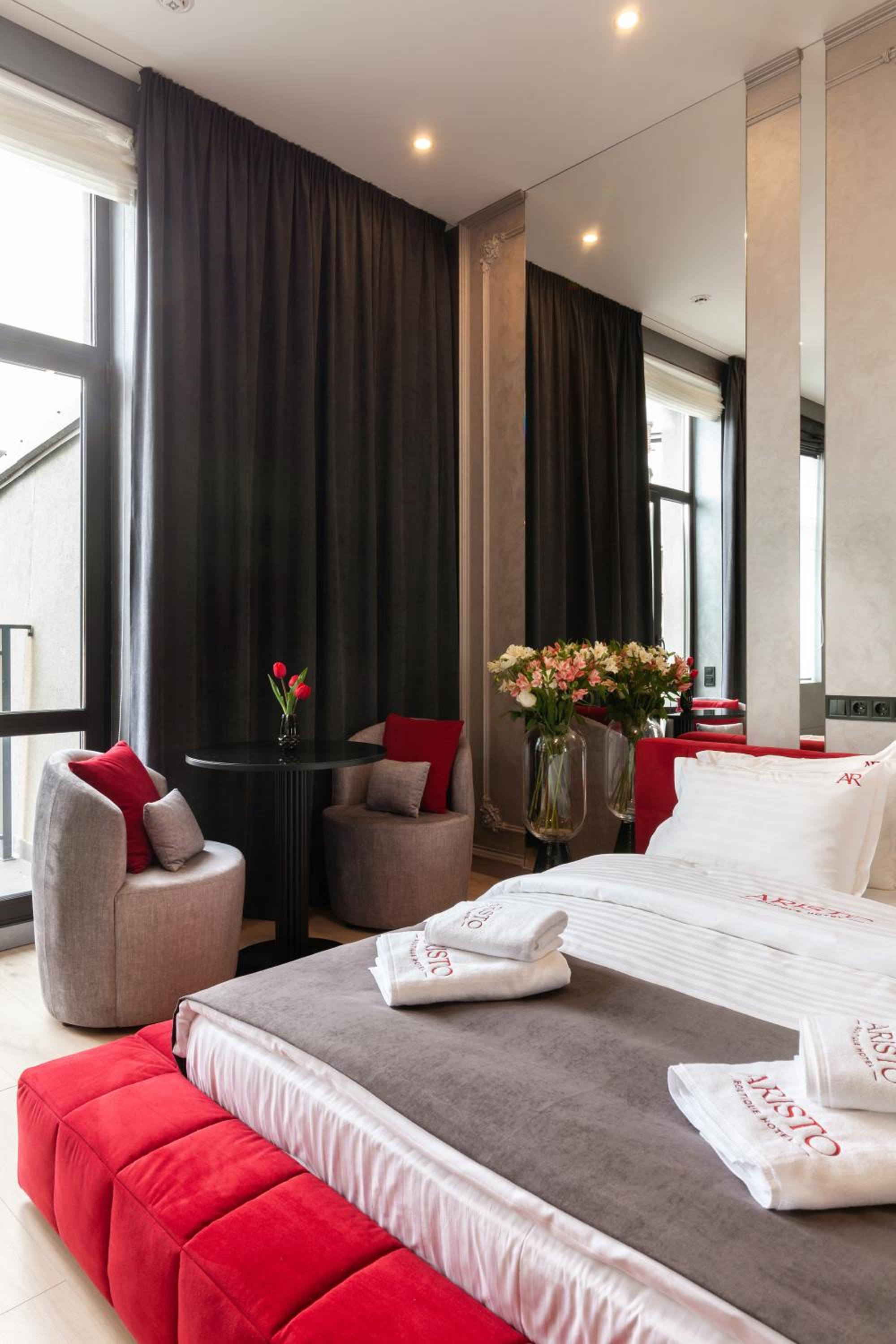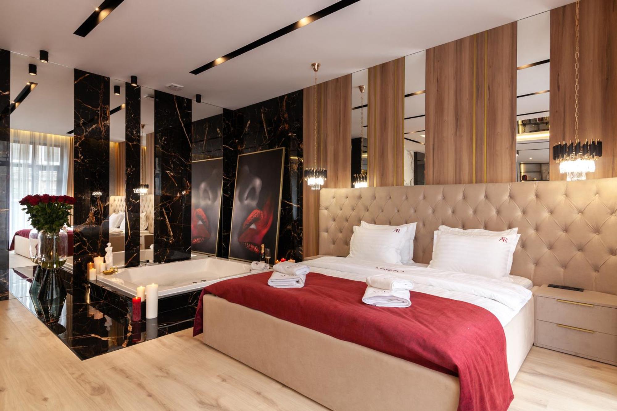 ARISTO Jacuzzi Hotel in Lviv offers air-conditioned rooms with modern amenities like flat-screen TVs and safety deposit boxes. Some rooms even feature kitchenettes for added convenience.