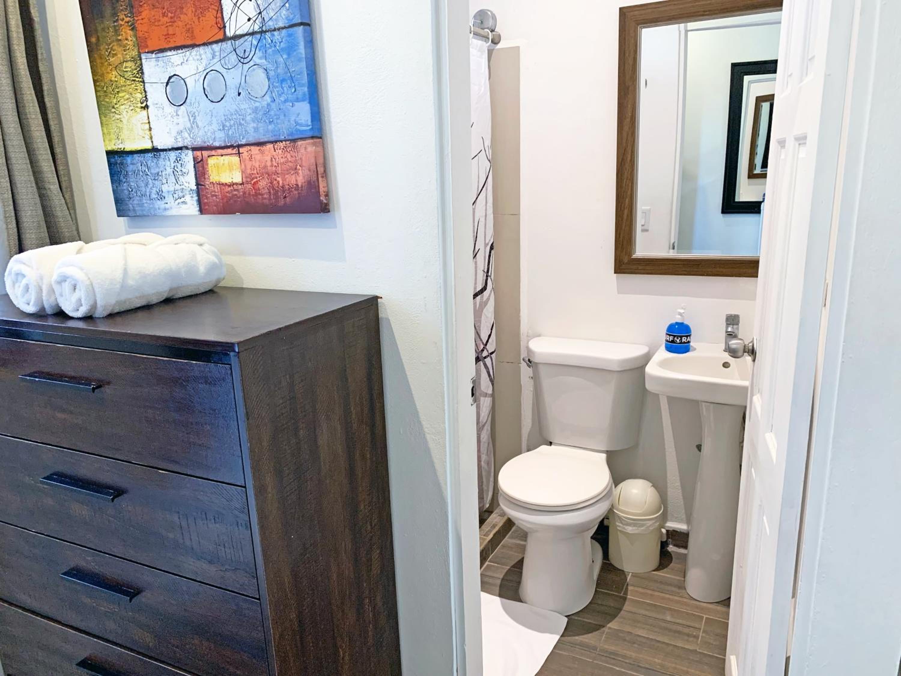There were no towels to dry your hands, the bathroom mat didn’t absorb any water, and it was very easy for water to spill out of the shower. There’s only one trash can in the bathroom , there should be one under the desk as well. The hairdryer didn’t work either.