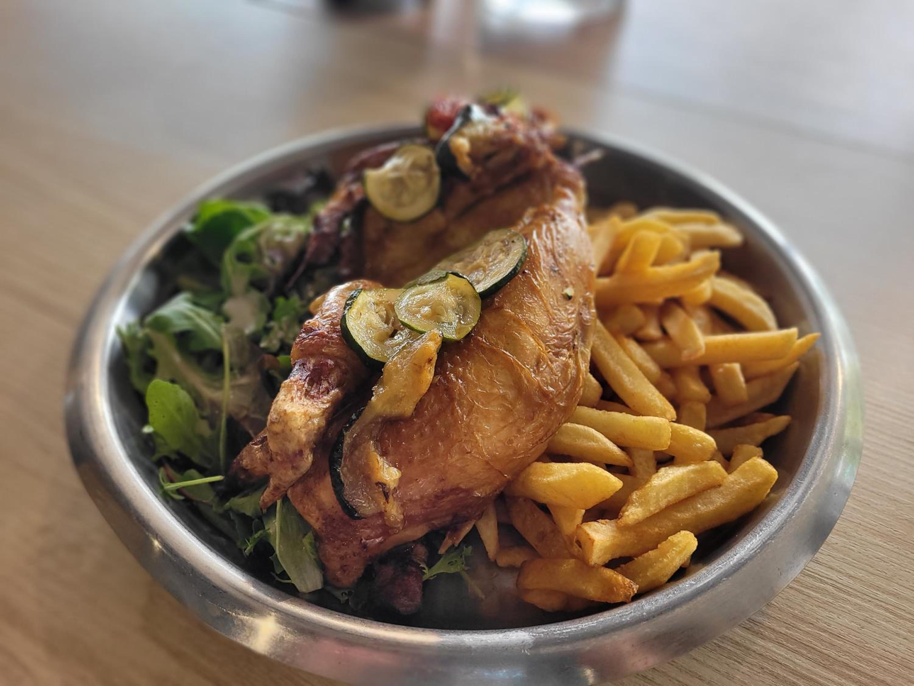 Geweldig en geduldig personeel. De wens om de zalm wat verder doorgebakken te hebben werd direct opgelost. Lekker gegeten ,geborreld en geslapen. Een aanrader met het hondje voor een tussenstop.