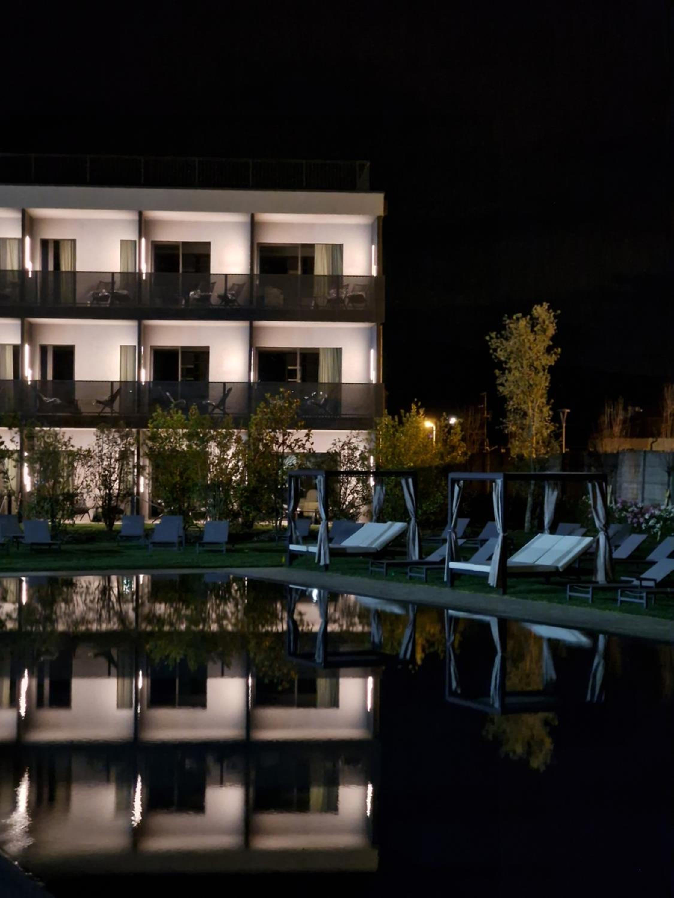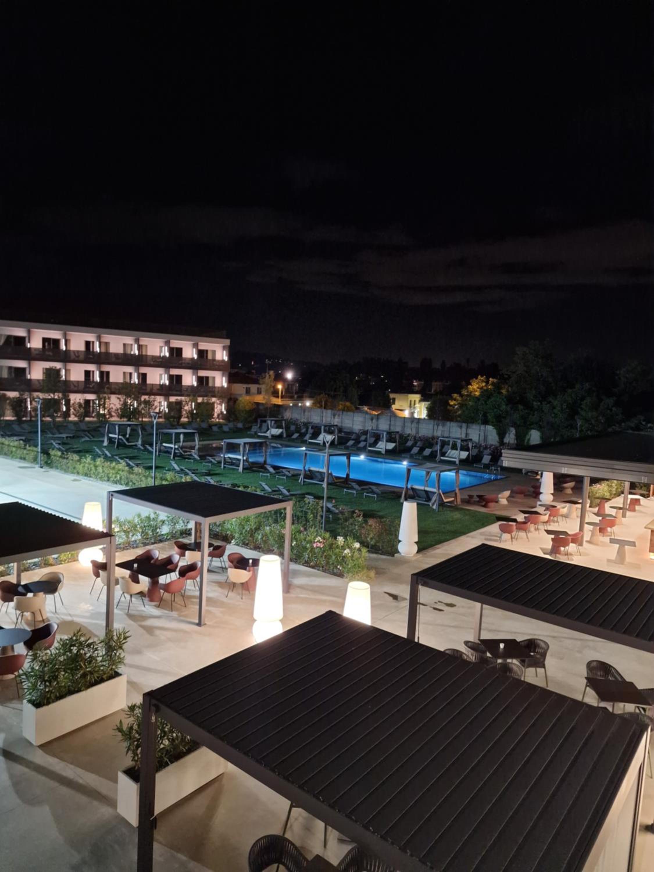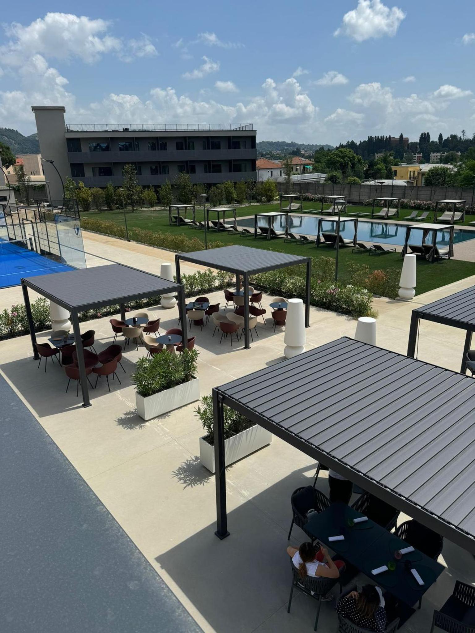 מלון חדש נקי מרווח עם שטחי ישיבה בחוץ בריכה שהייתה סגורה באוקטובר מגרשי פאדל ארוחת בוקר בהגשה מתפריט עם מלצר