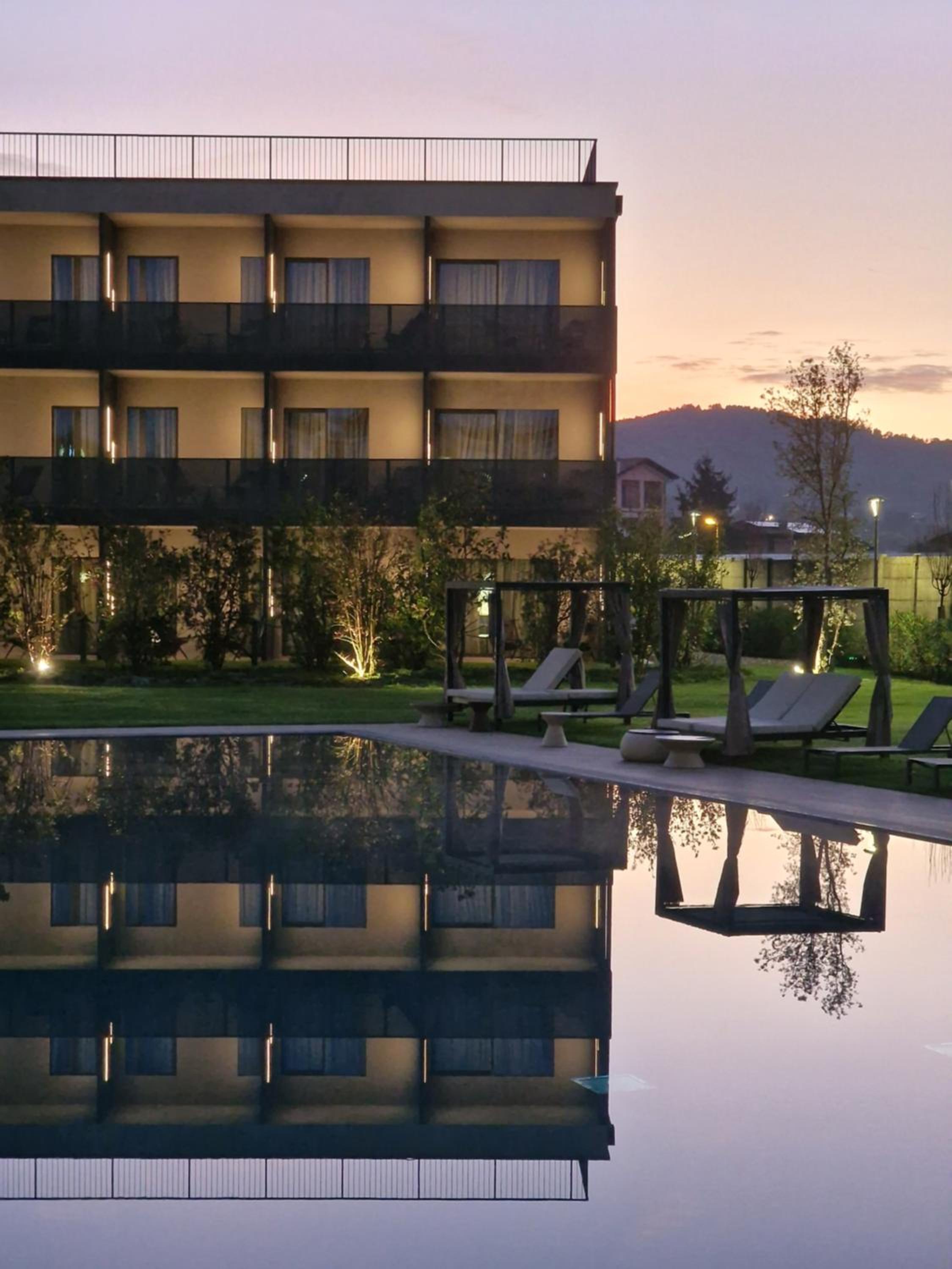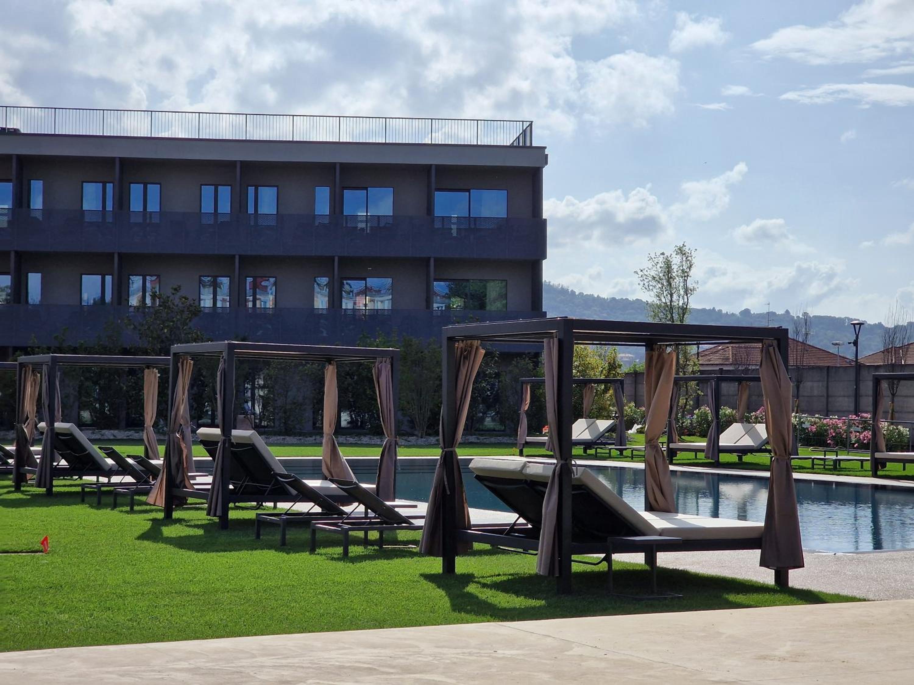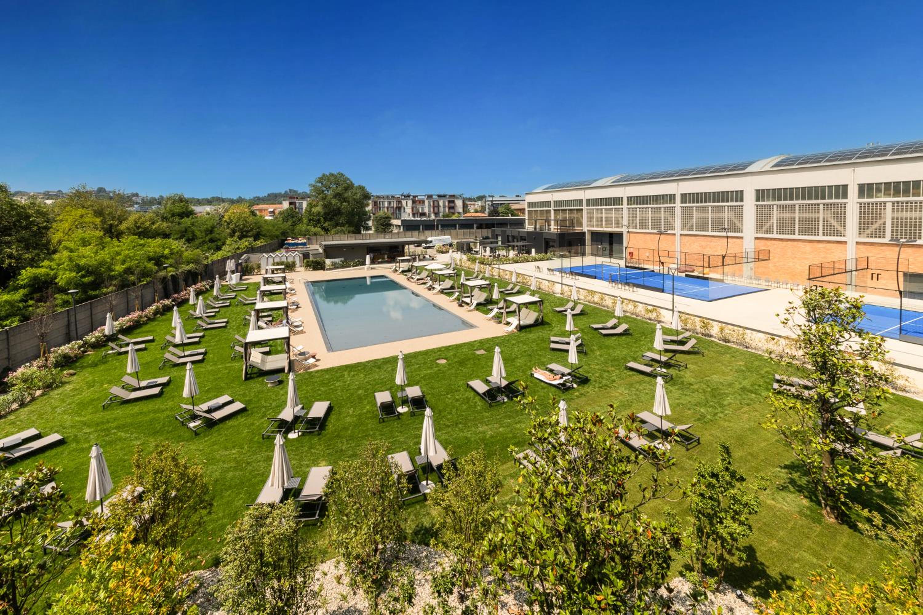 מלון חדש נקי מרווח עם שטחי ישיבה בחוץ בריכה שהייתה סגורה באוקטובר מגרשי פאדל ארוחת בוקר בהגשה מתפריט עם מלצר