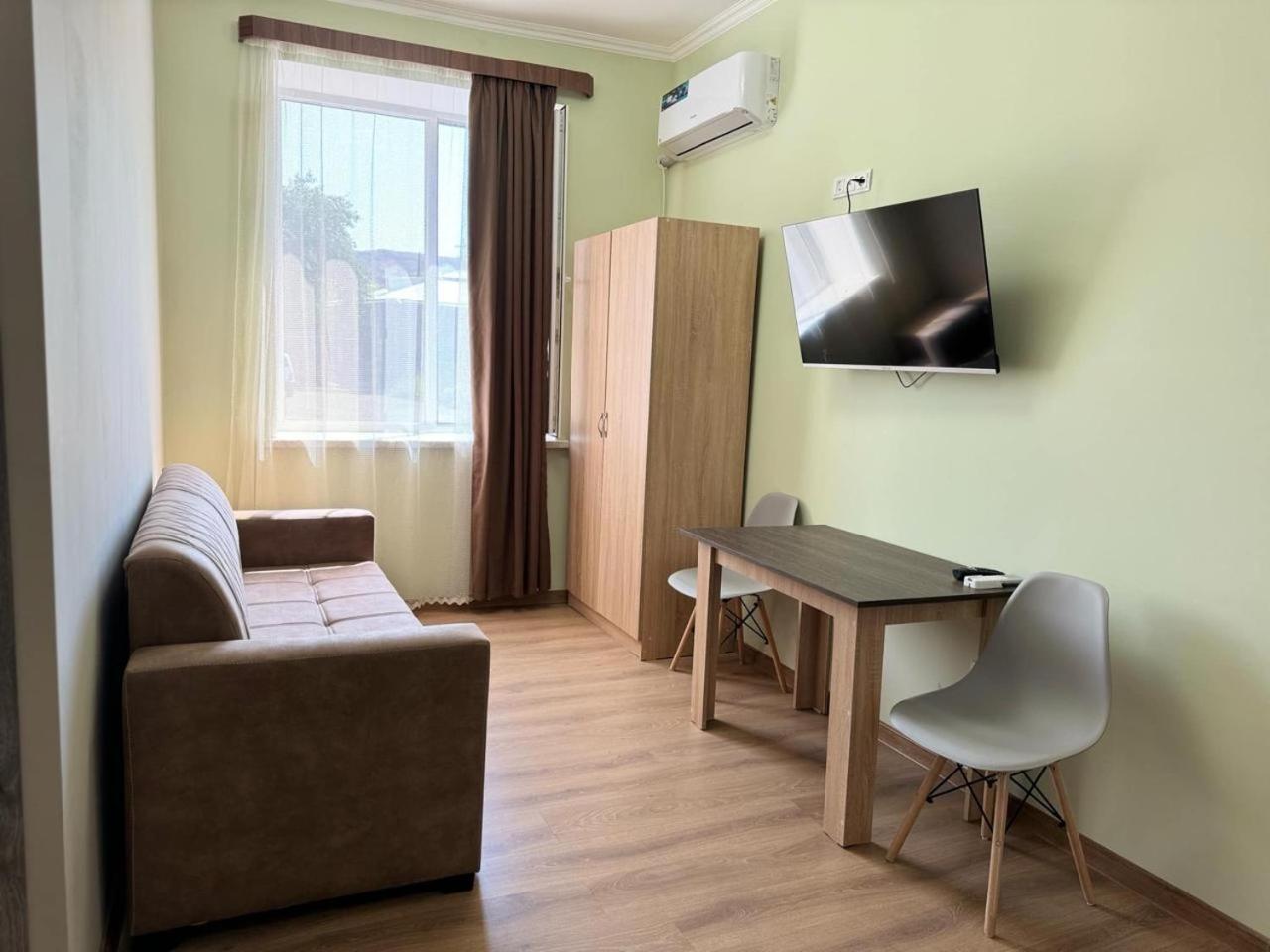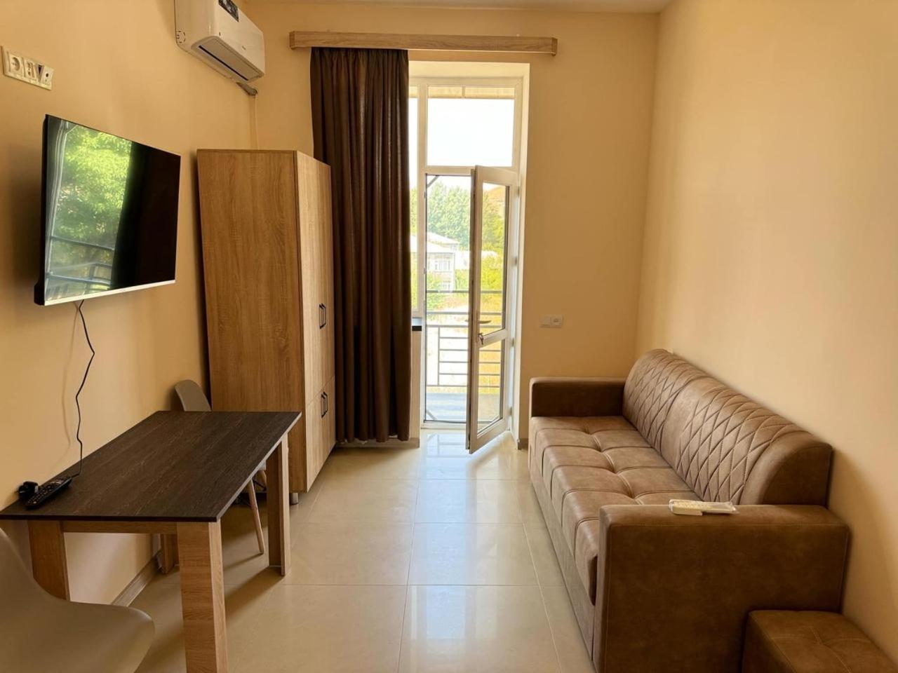 В номере очень комфортно, спальня отделена от комнаты дверью, мы ночевали с ребенком, это позволило не будить его поздно ночью или рано утром, когда мы бодрствовали. В ванной комнате душевая отделена от остального пола бортиком, поэтому вода не пробивается, что очень удобно и редкость в Армении. В номере есть удобный шкаф, комод, тумбочка, крючки для одежды, холодильник, всё продумано до мелочей, нам очень понравилось и было комфортно! Для семей с детьми очень рекомендую это место.
