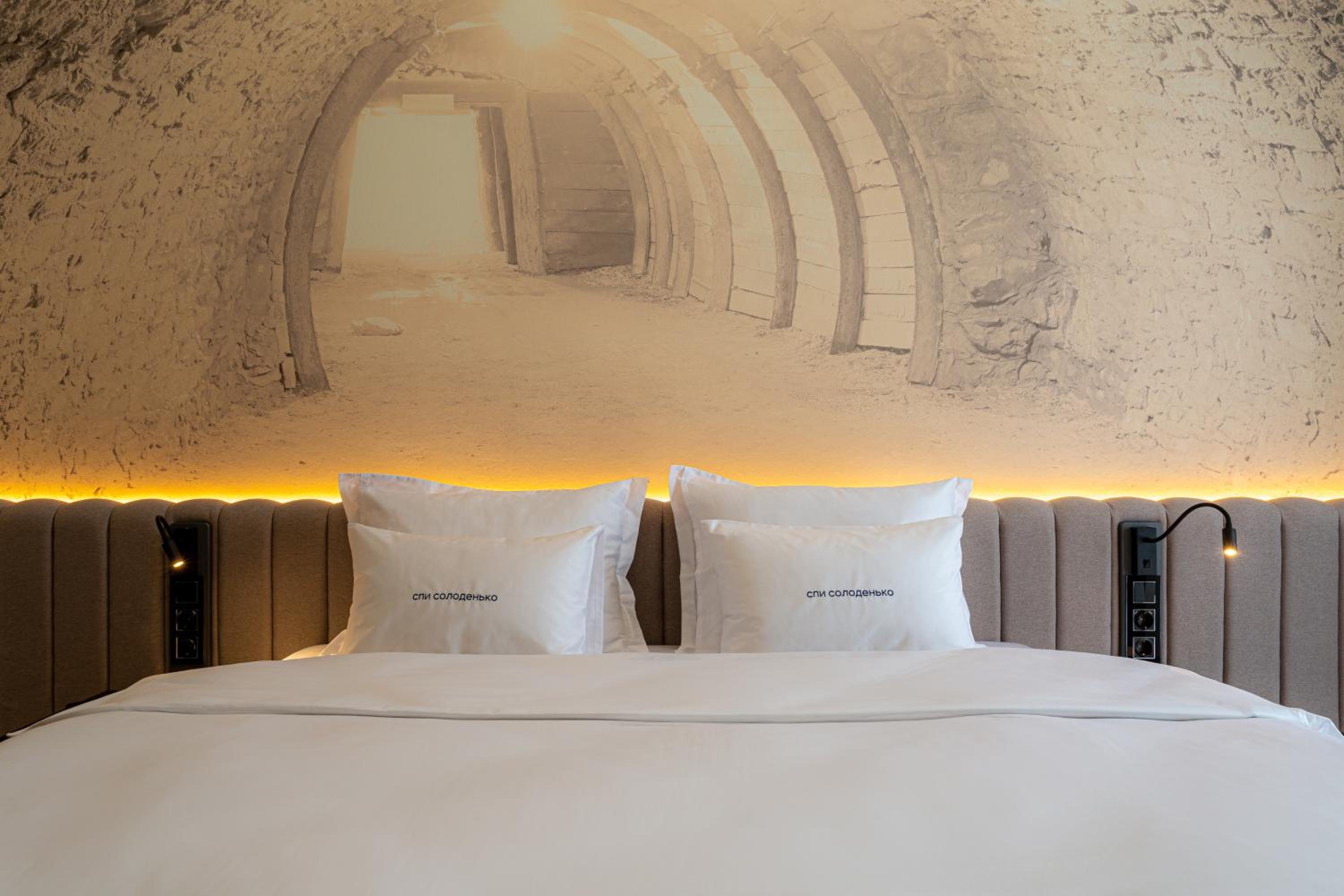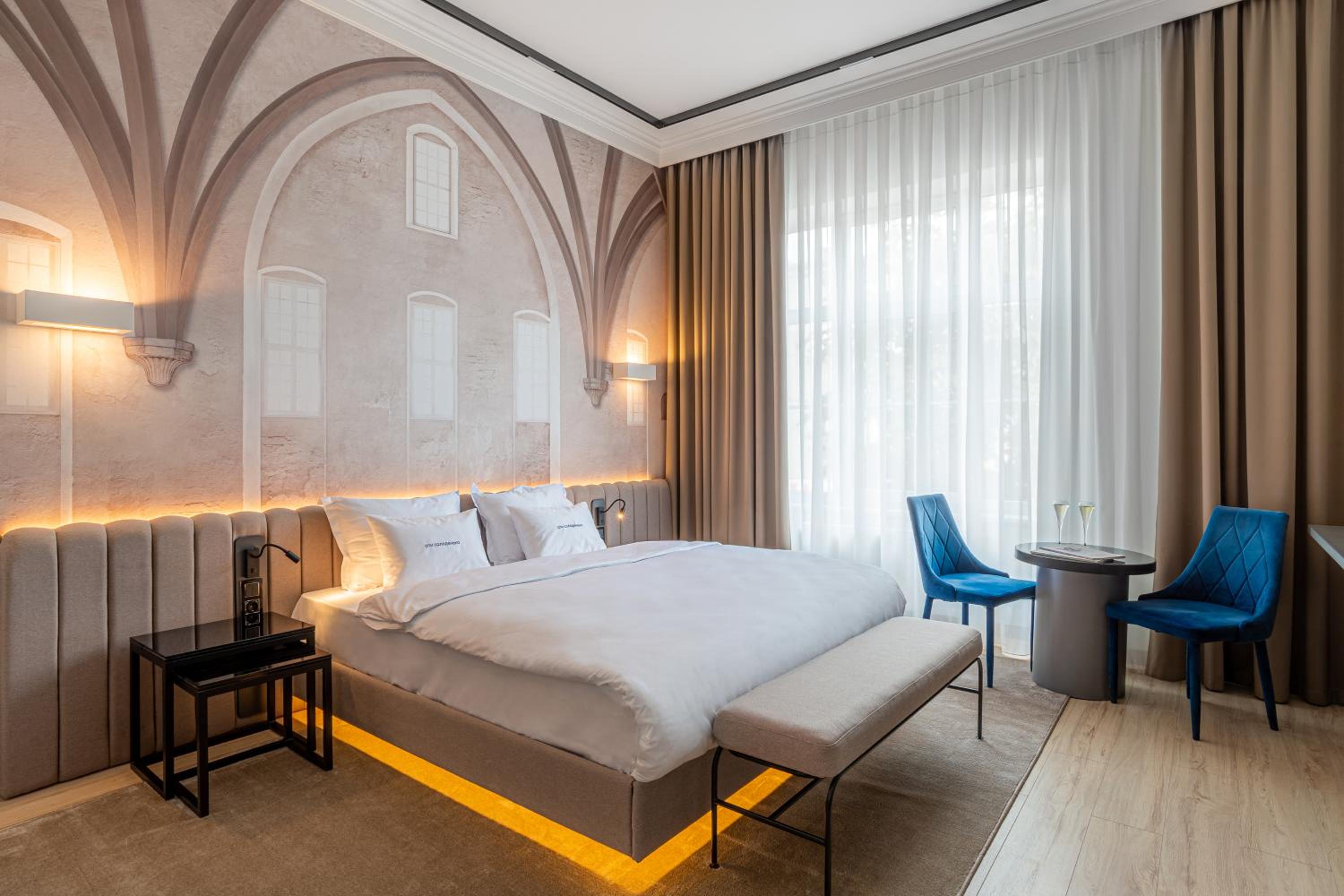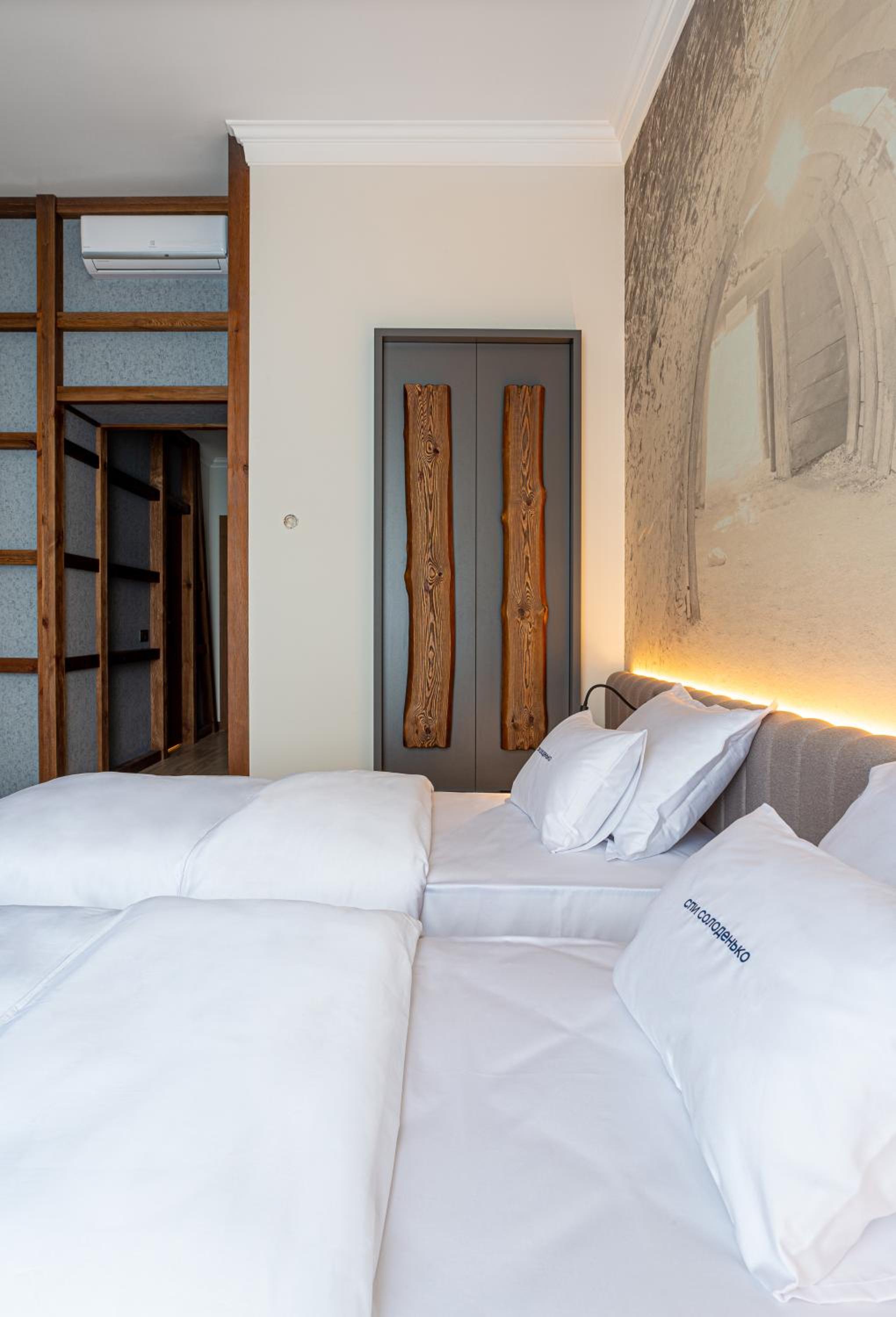 Великий номер та ванна кімната, було дуже тихо, дуже зручні ліжка та хороші подушки, красивий інтерʼєр. Окремо класно, що у готелі високі стелі! Було тепло, охайно, просторо та чисто!