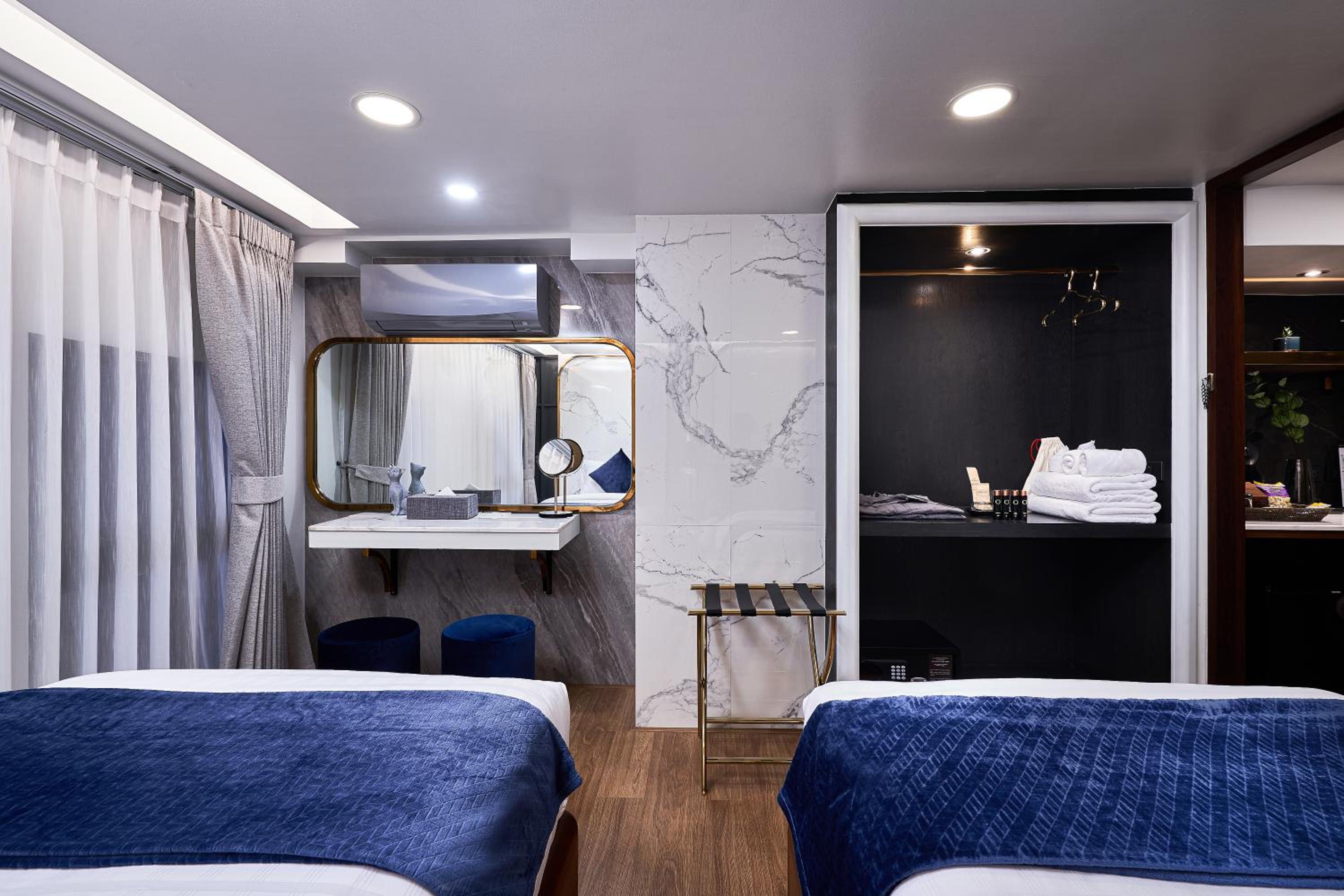 Each room had its own theme, which was listed in the elevator—a really cool and thoughtful touch. We stayed in the Premium Quadruple Room with two bedrooms.