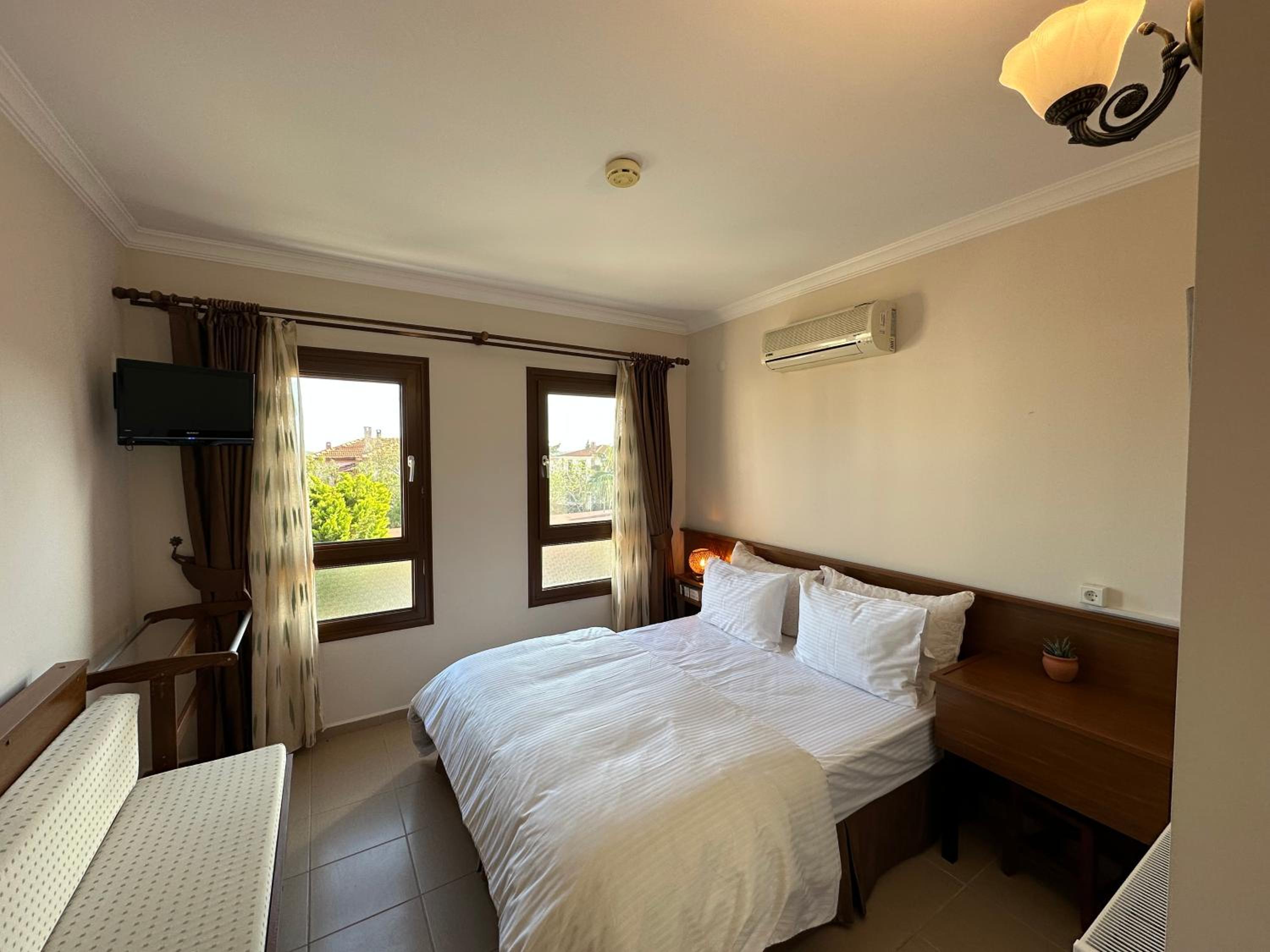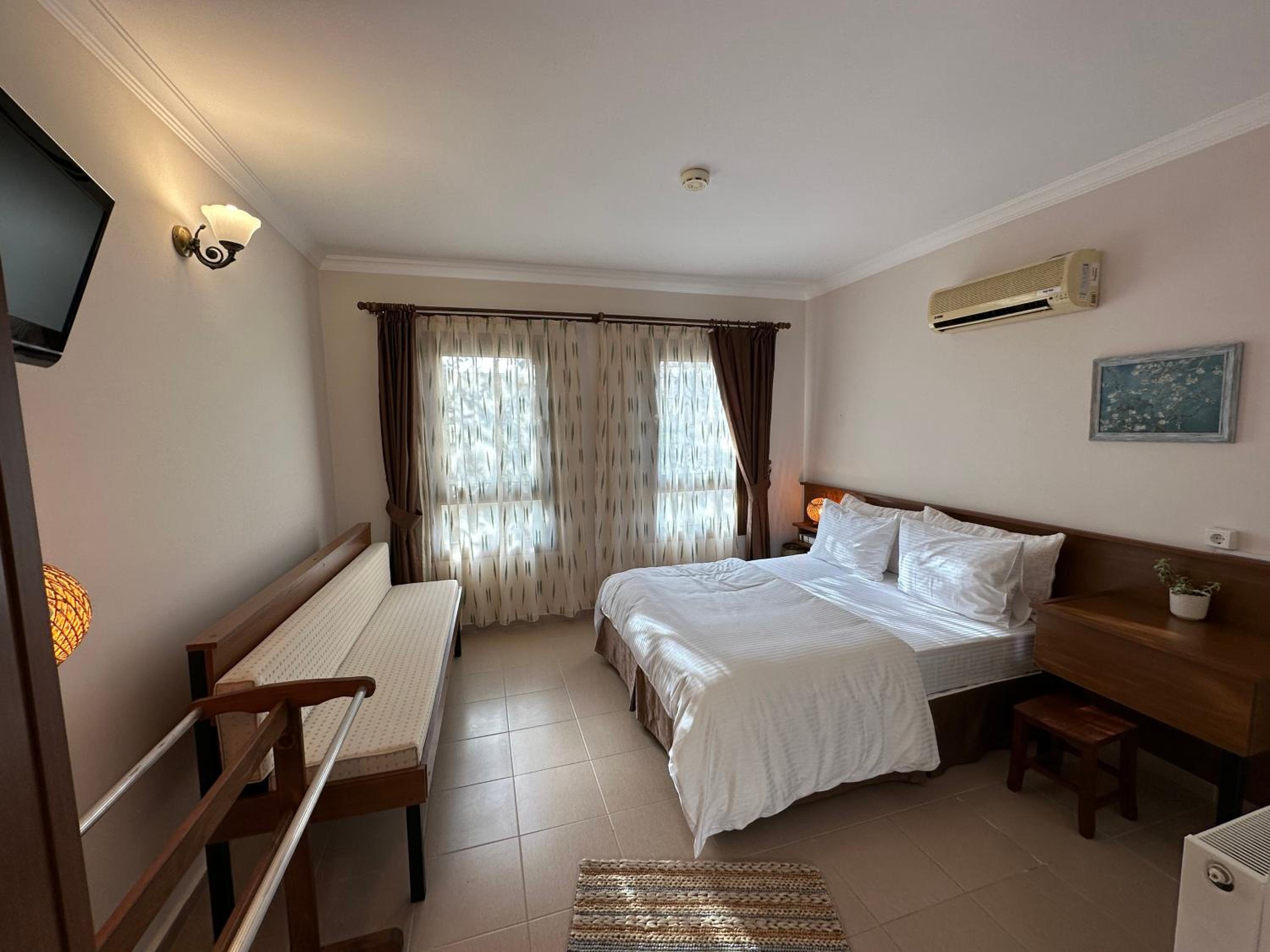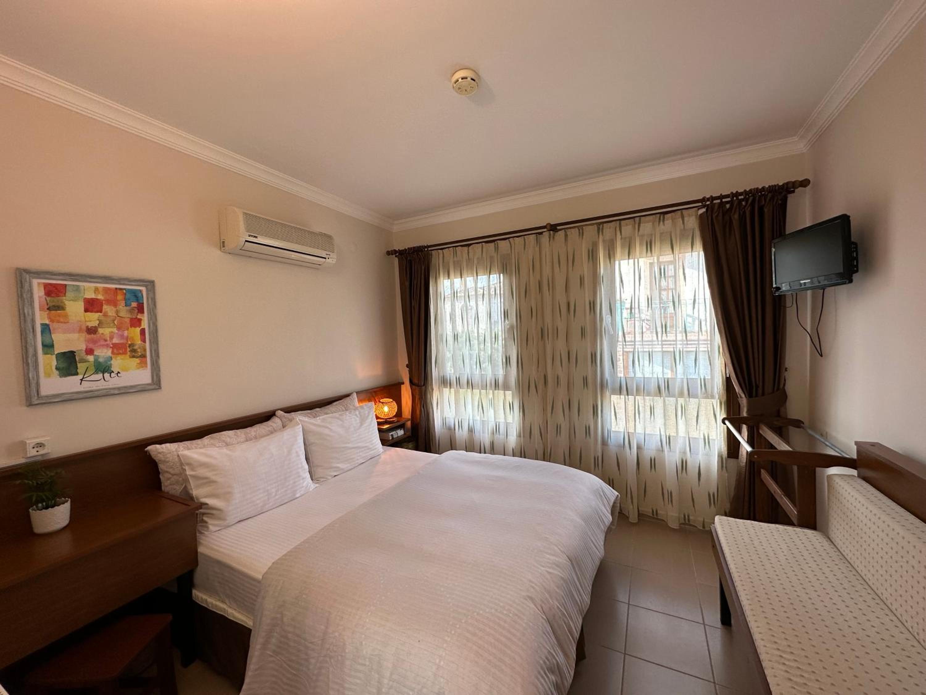 Breakfast was very good (the serving window (9-11) is a bit tight though). The rooms are decent and clean. The location is very convenient, in the middle of Cunda, close to bars, restaurants and markets, but still not noisy. The hotel has a nice garden.