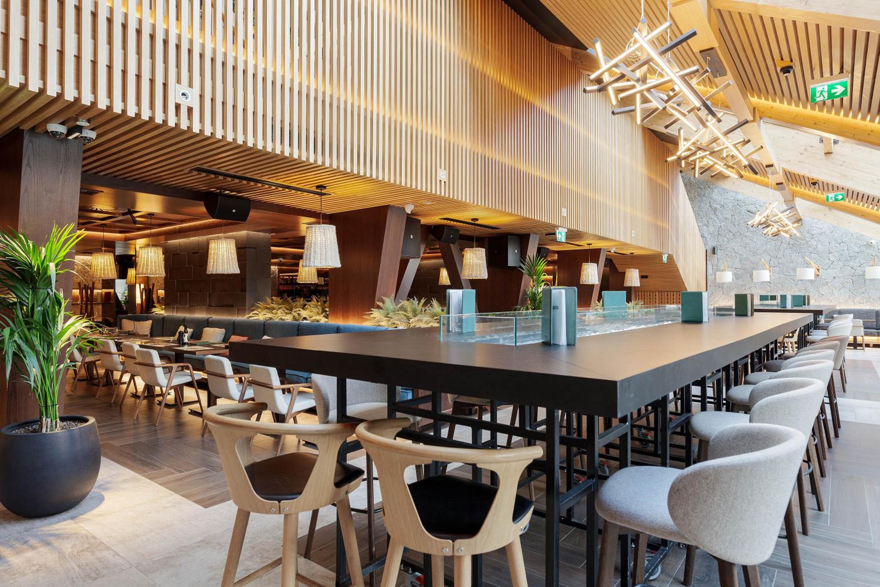 The ski rental inside the hotel doesn't provide snowboarding gear but there is one rental just across the road so it's no a big deal. Waiting time at restaurants and bars could be improved.