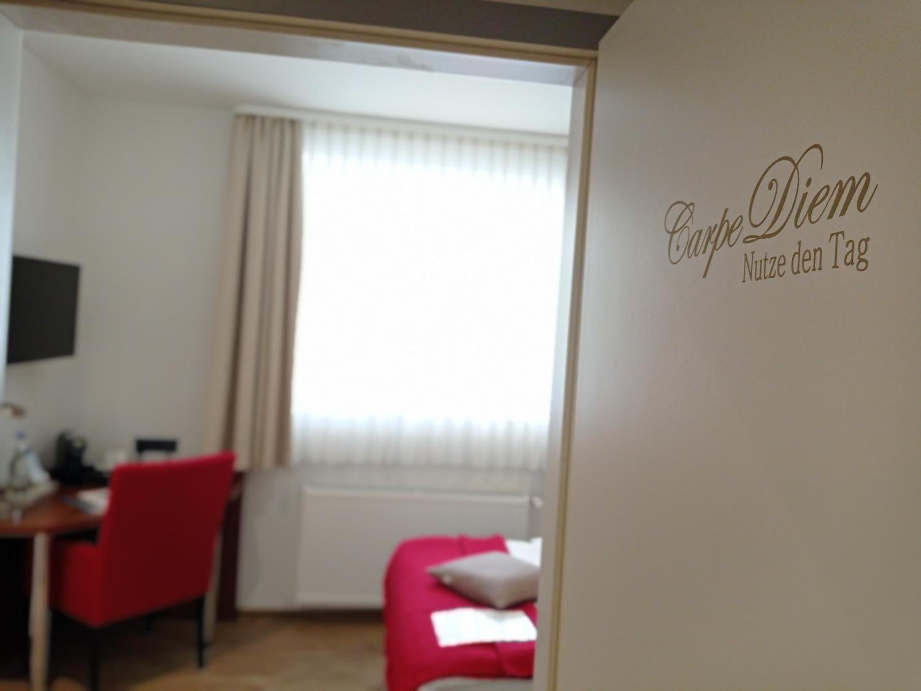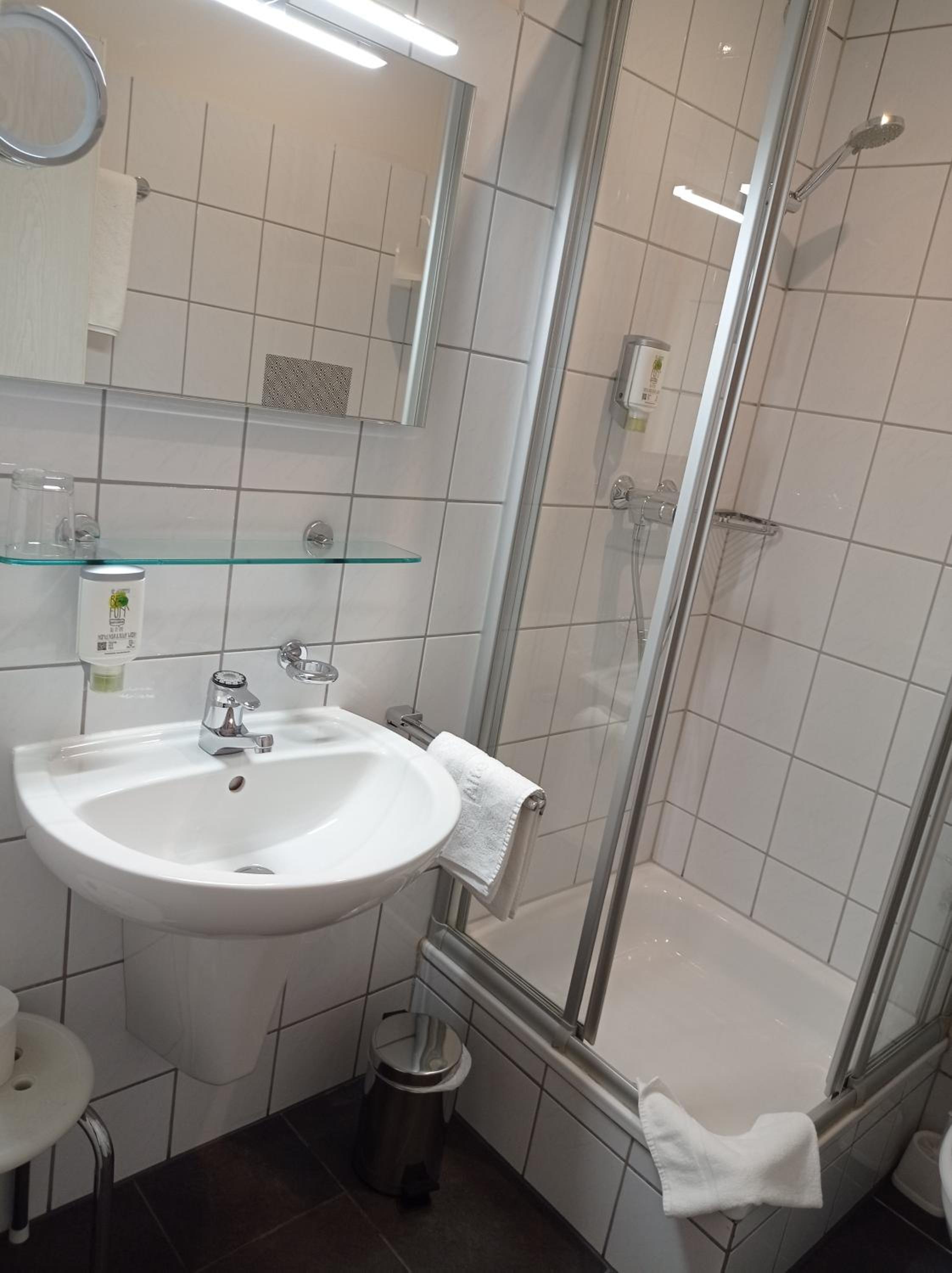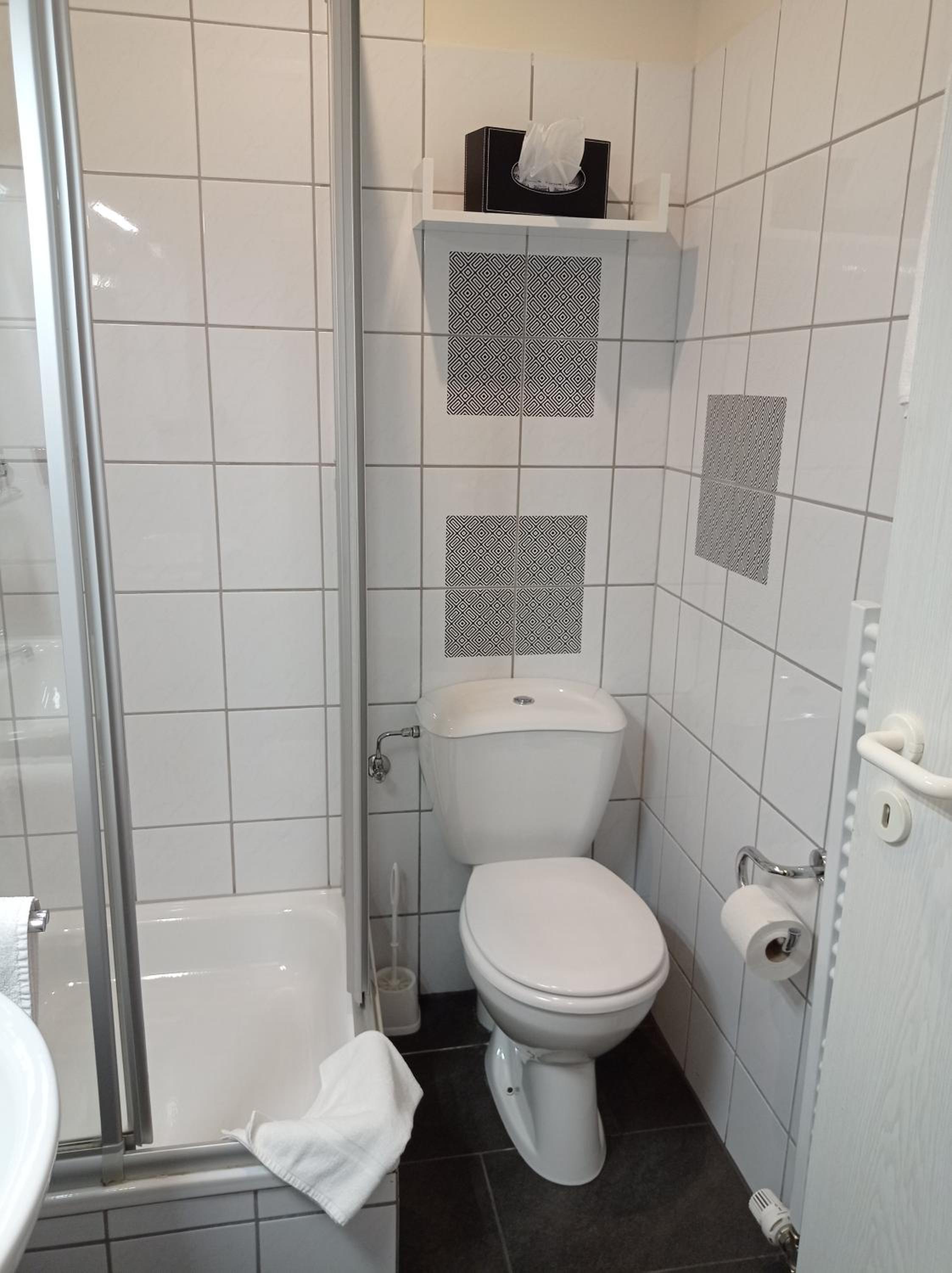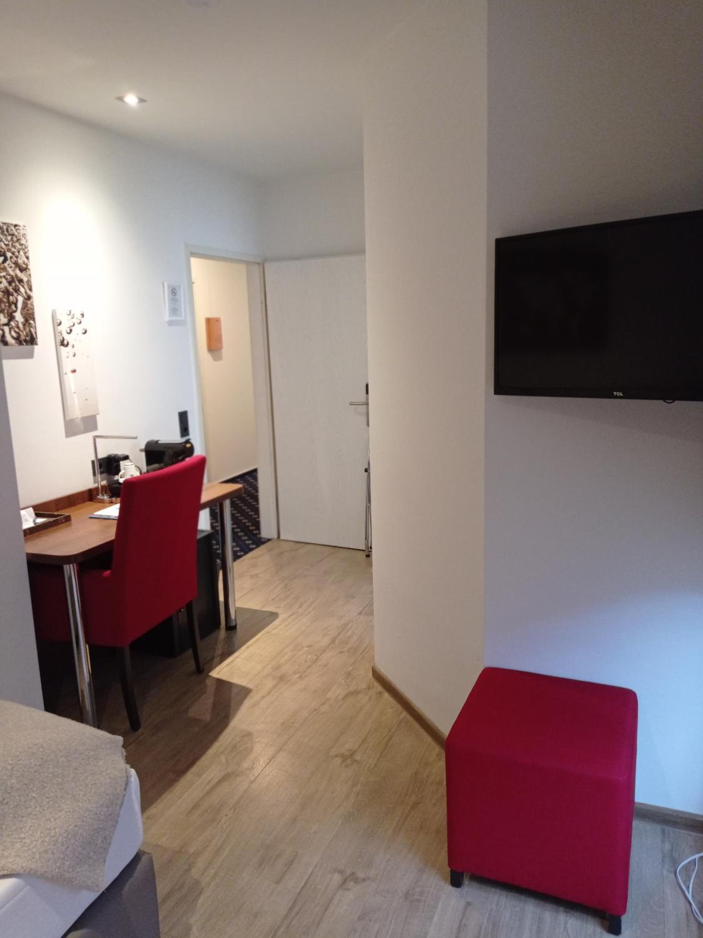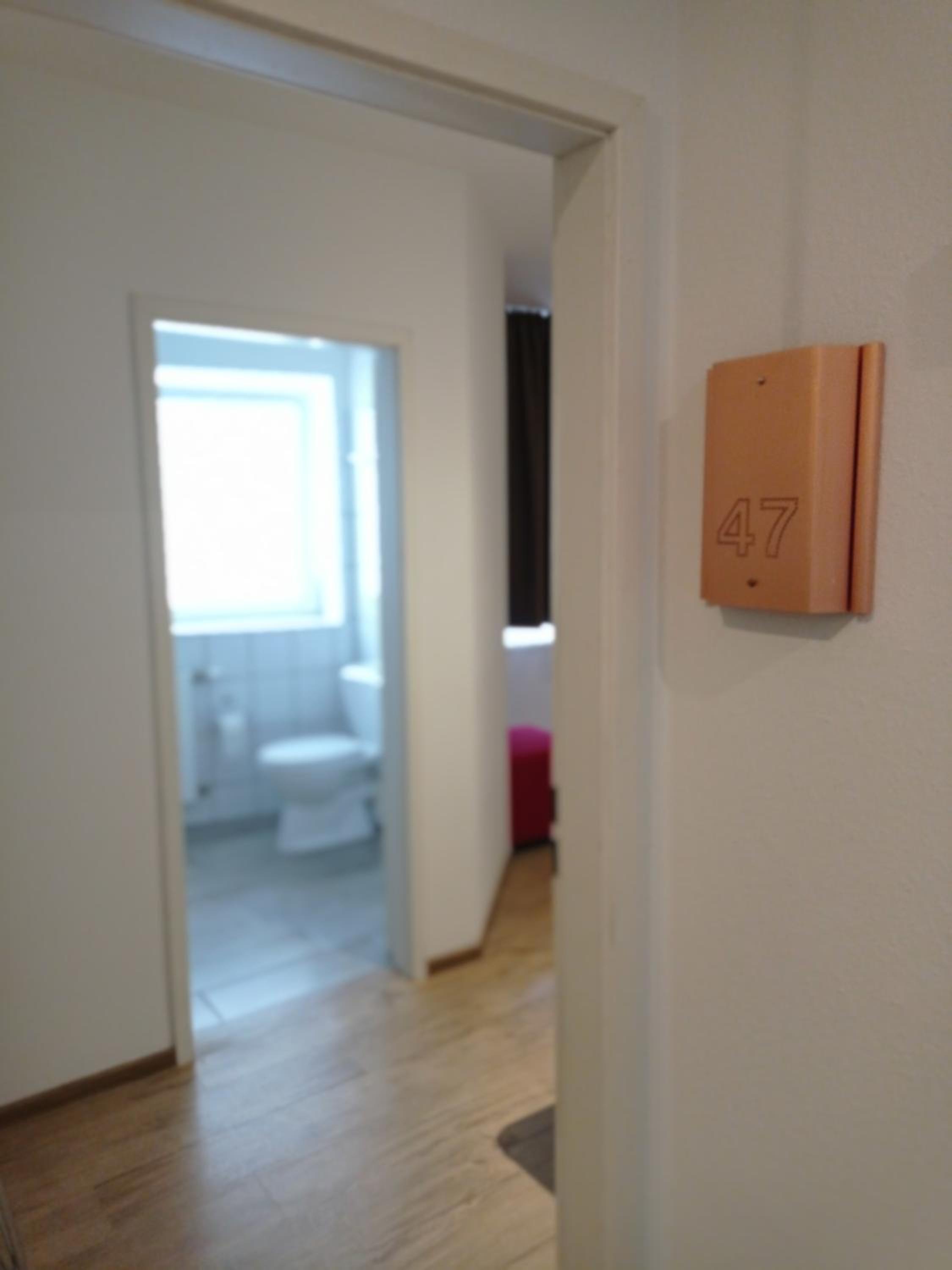 Freundliche Begrüßung, schönes und ruhiges Zimmer mit Tageslichtbad. Im Zimmer besteht die Möglichkeit, Kaffee oder Tee zuzubereiten