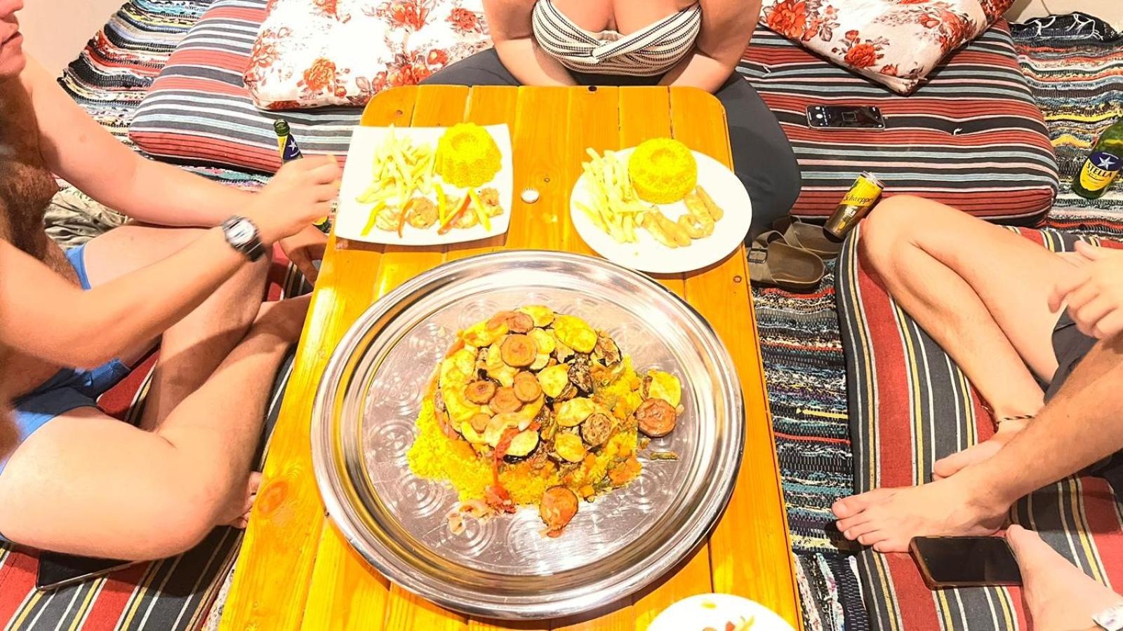 We arrived late at night. All the rooms in the camp were empty. There was only one other guest besides us, and they gave us the room next to the other travelers. They talked all night in loud Arabic, and we couldn't sleep.