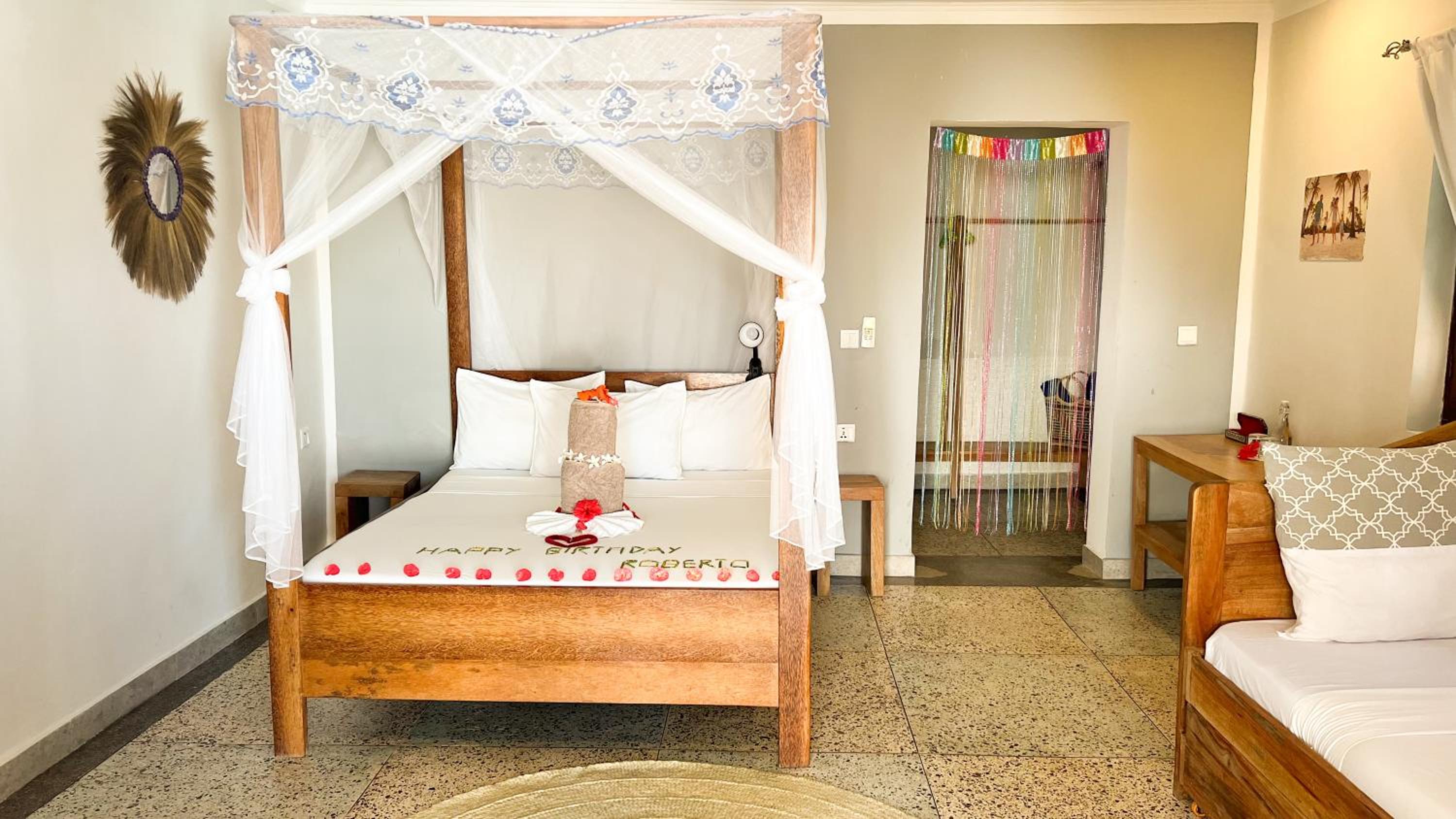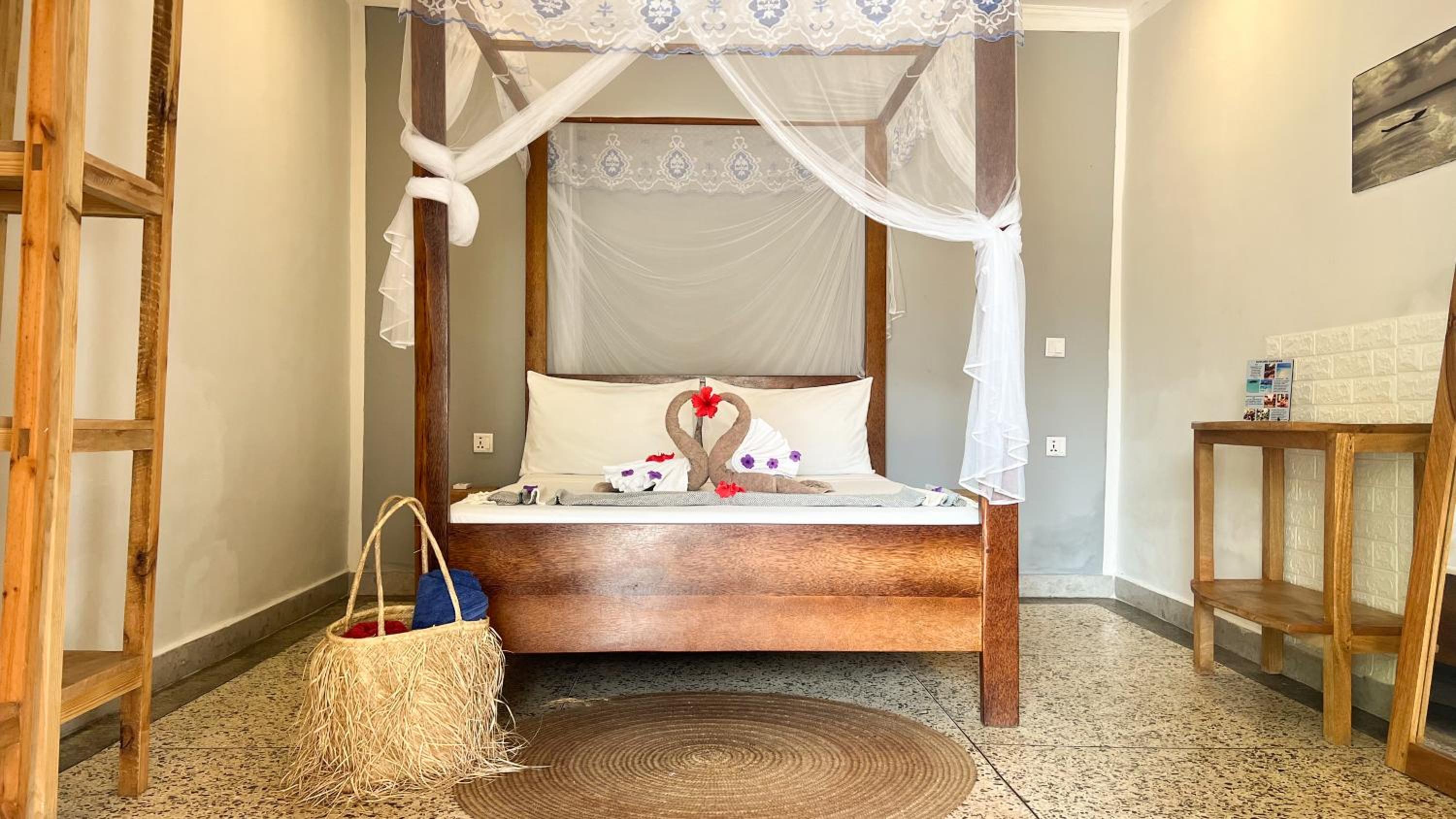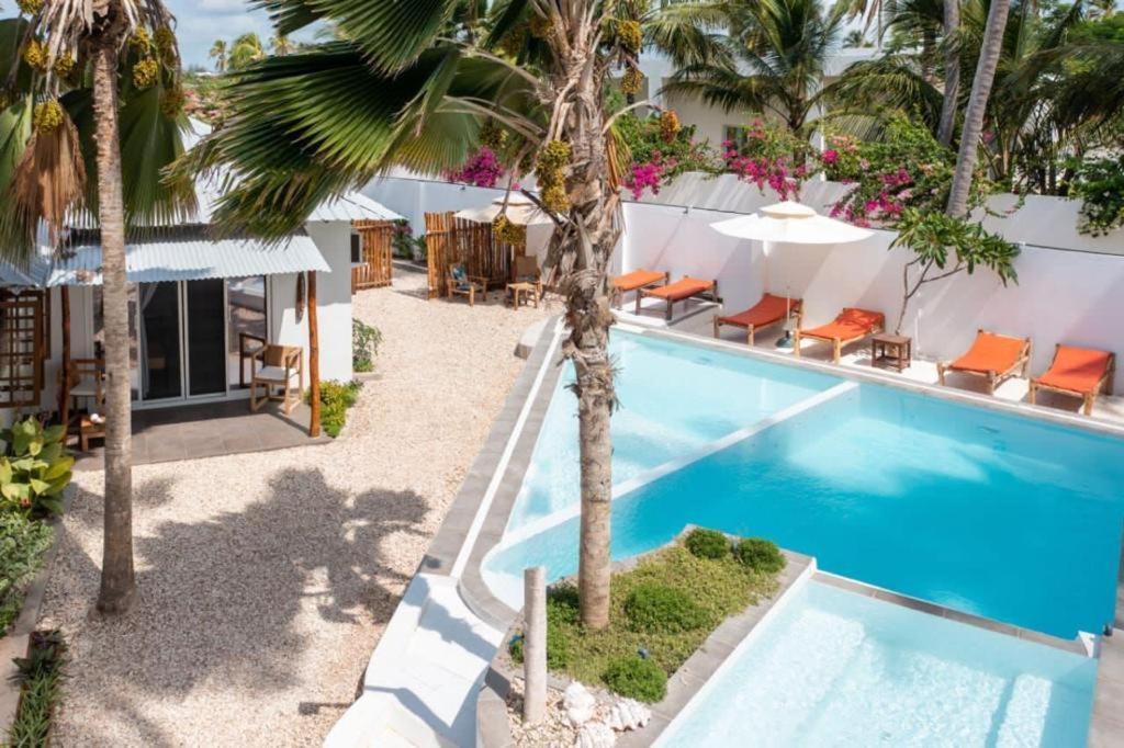 La struttura si trova in una zona tranquilla della spiaggia di Kiwenga,(5 min a piedi dai resort più grandi )questo ti permette di godere in tranquillità la spiaggia lontano dalla confusione turistica e dai Masai(che sono veramente simpatici ma veramente troppi).La spiaggia privata del resort è una vera bomboniera ,un'oasi di pace e relax.